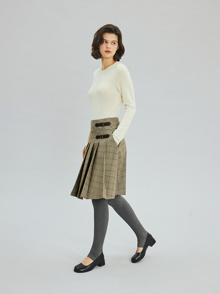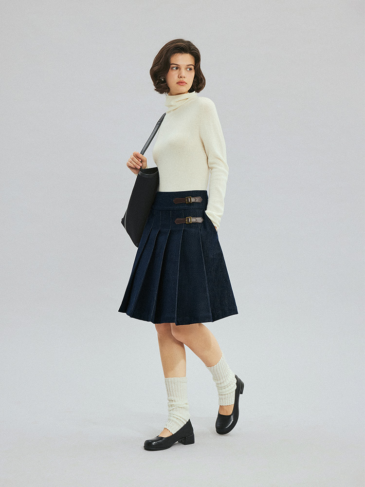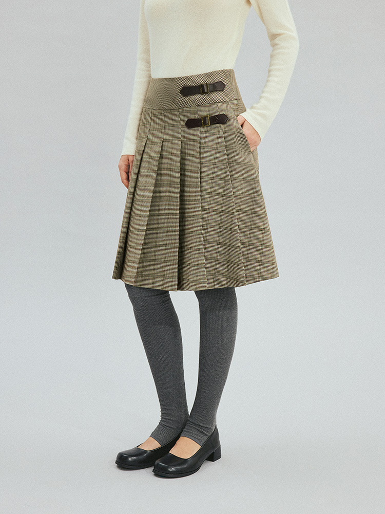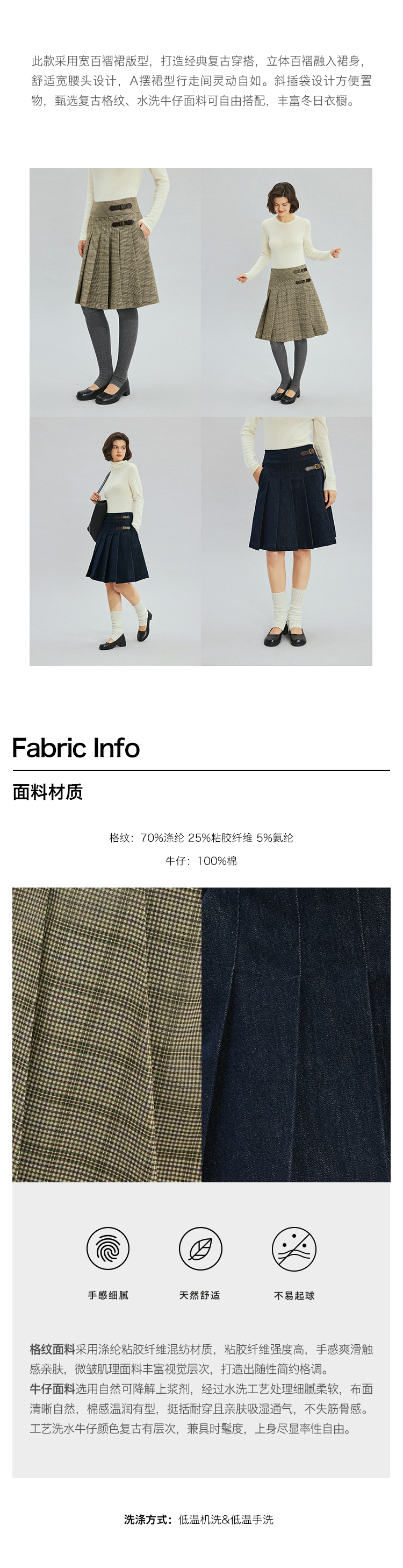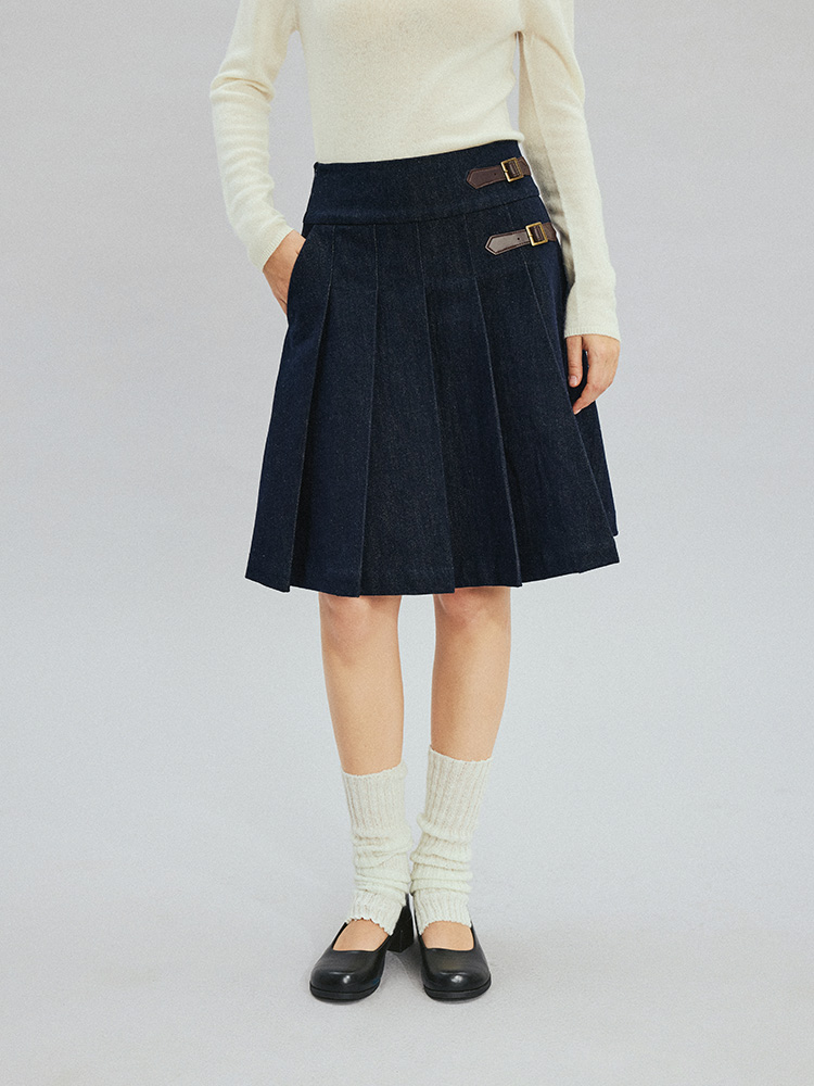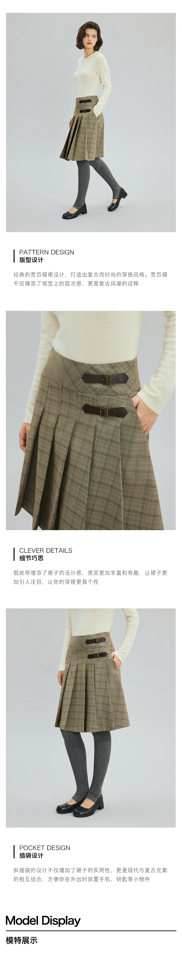 ForPoem 现货 24/FW原创设计复古皮扣袢百褶半身裙
