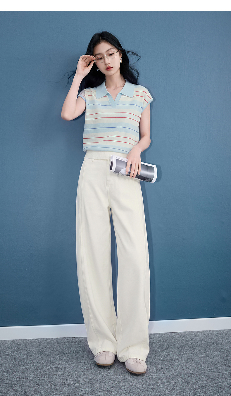 【100棉】三彩2026夏季新款气球裤休闲裤牛仔裤高腰宽松长裤S