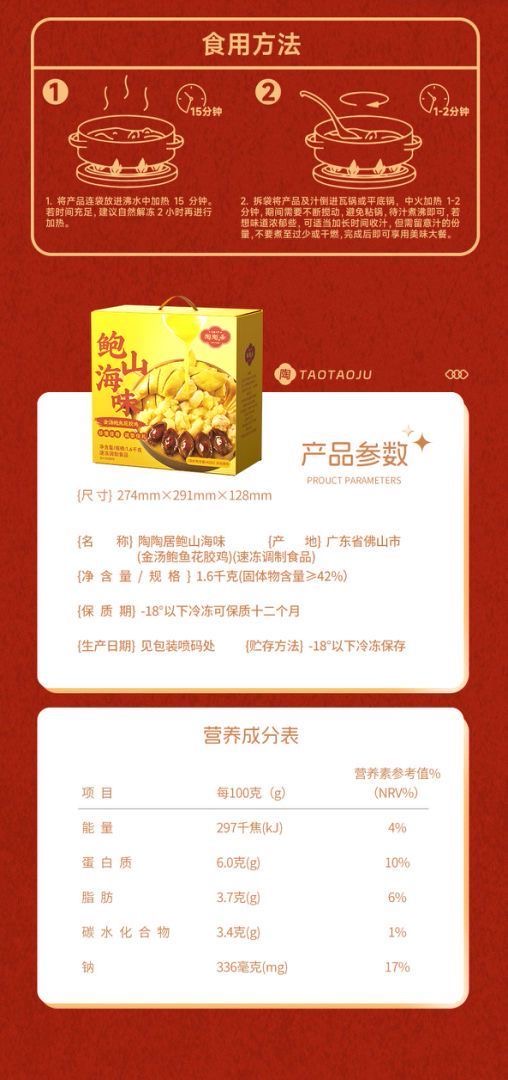 陶陶居 鲍山海味金汤鲍鱼花胶鸡1.6kg (3-4人份)