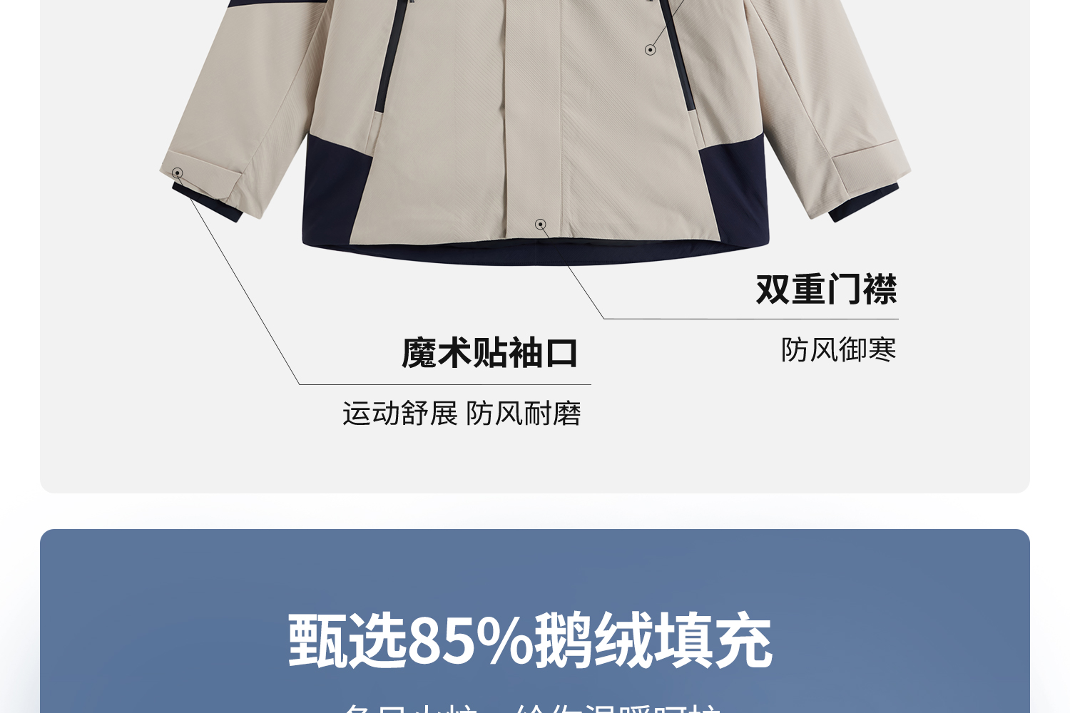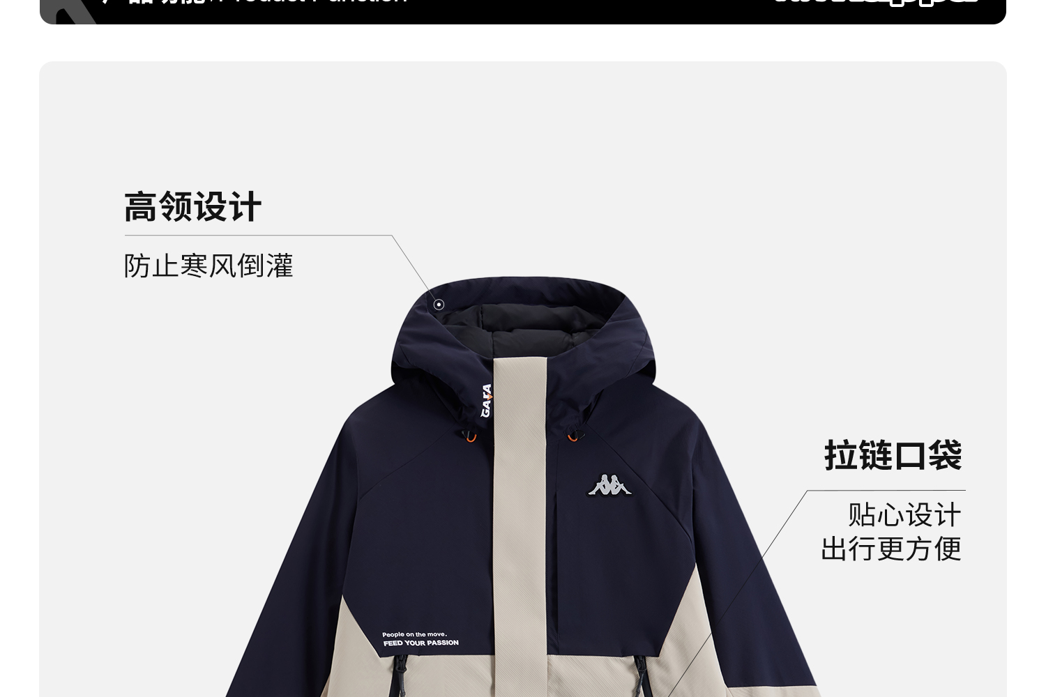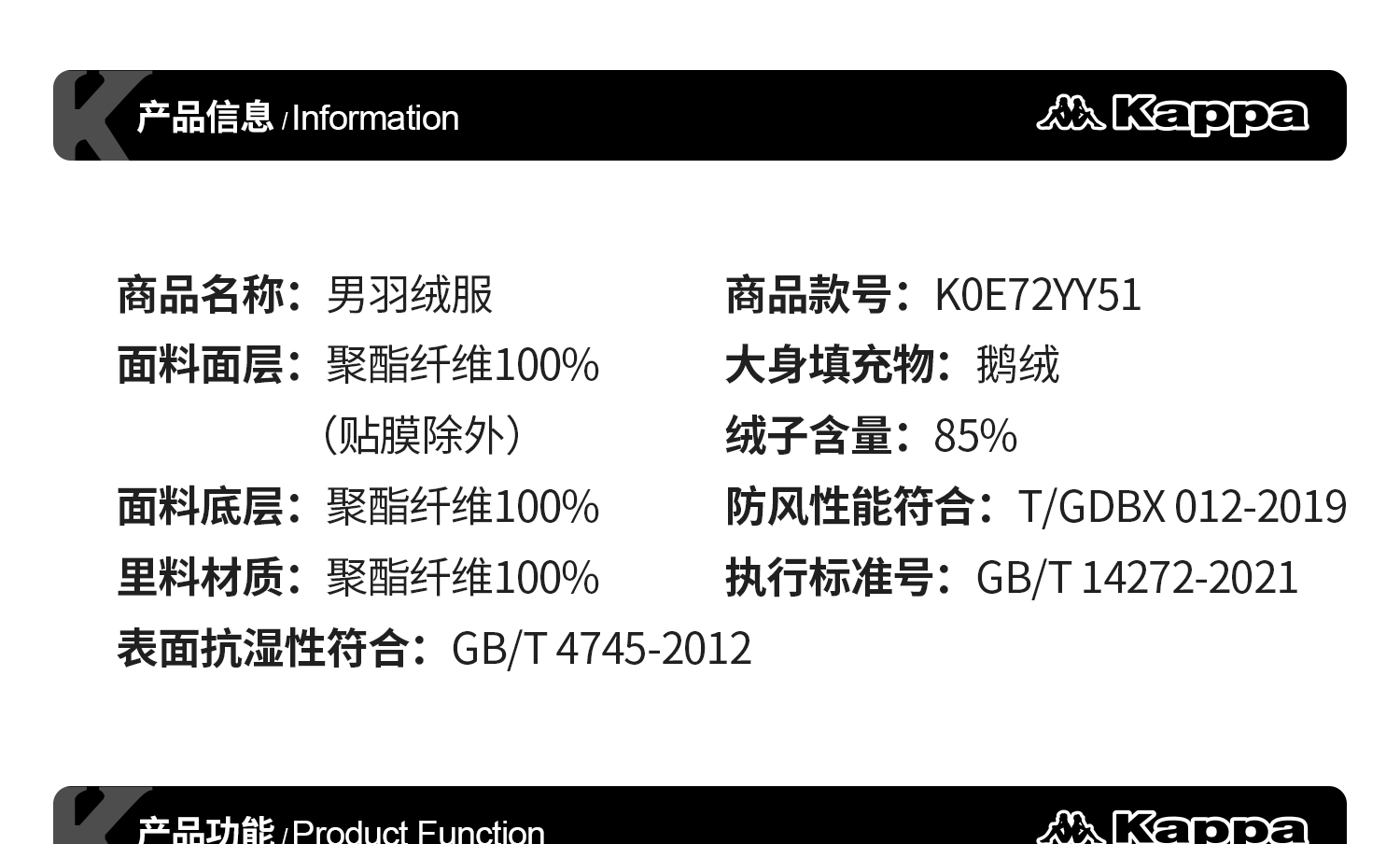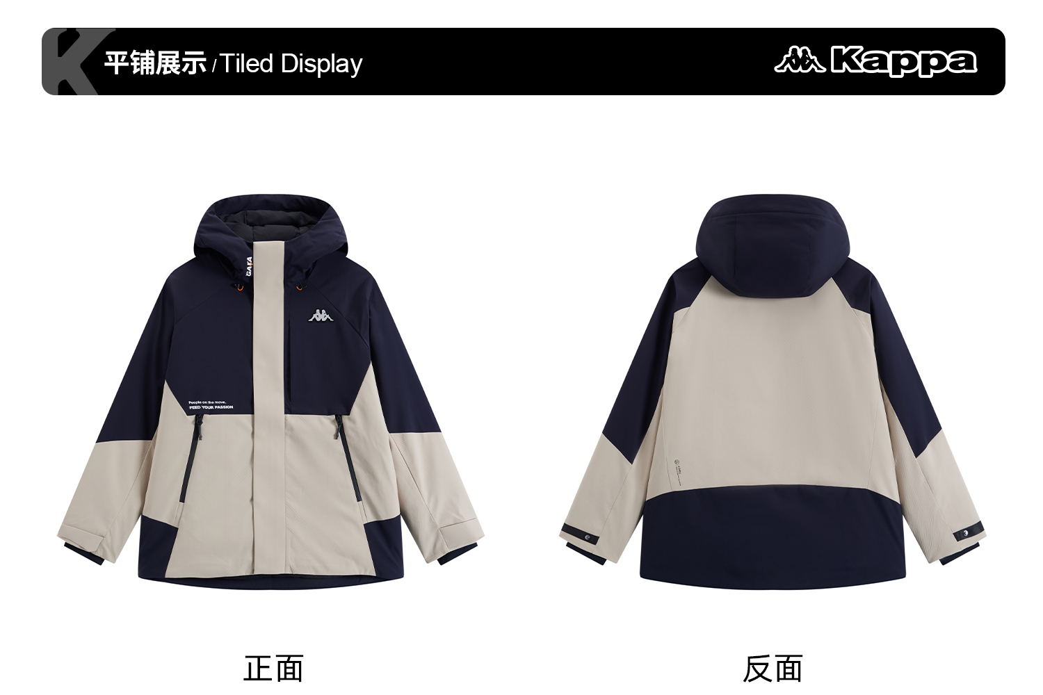 Kappa卡帕背靠背防泼水防风运动羽绒服鹅绒工装外套保暖防寒服男K0E72YY51