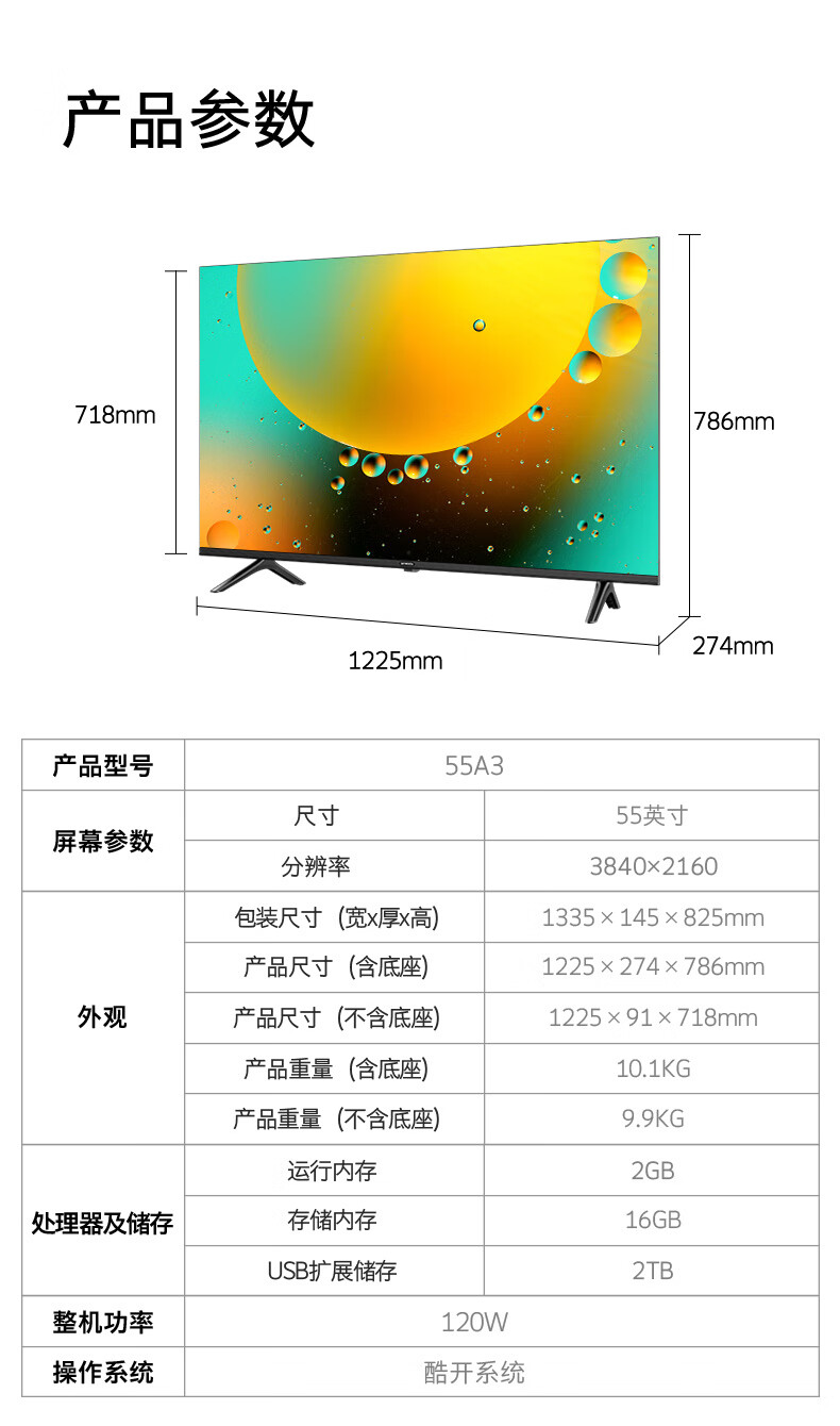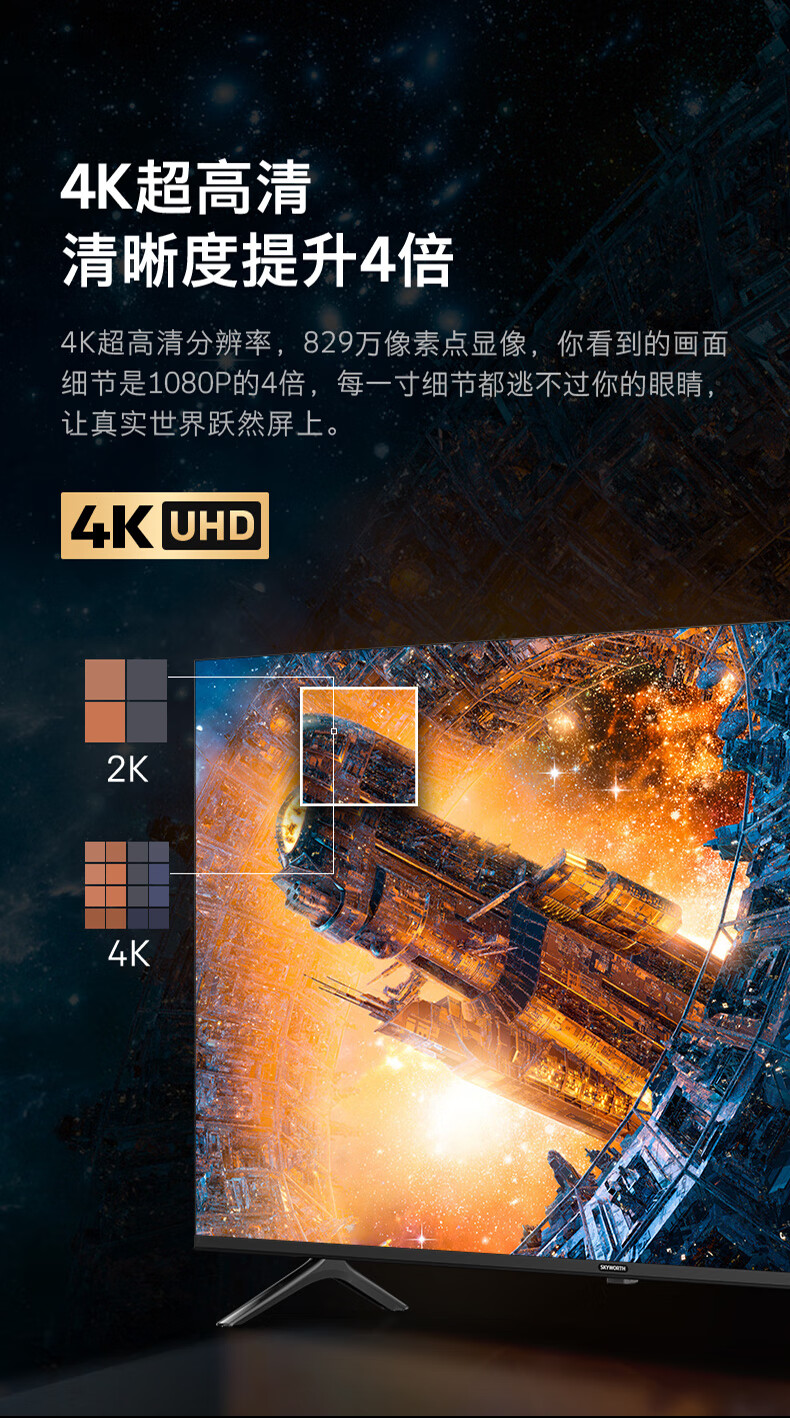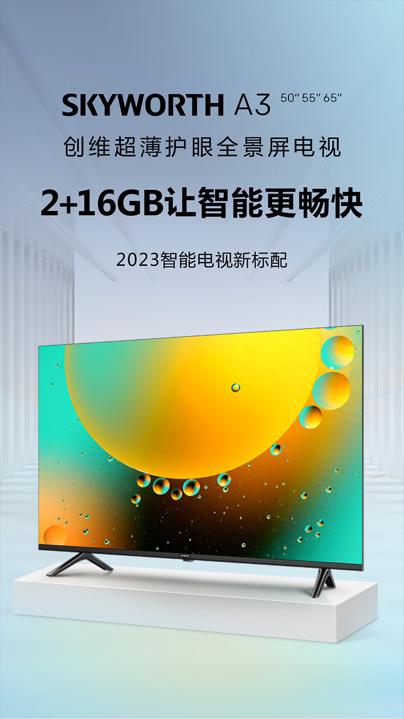 创维电视55A3 55英寸 4K超高清护眼防蓝光语音游戏电视机 2+16G教育超薄全面屏 一键投屏 以旧换新