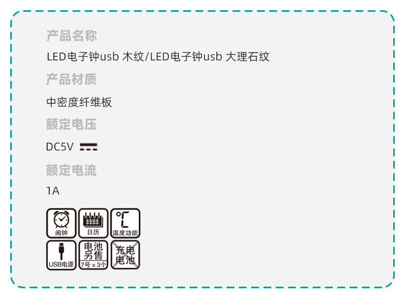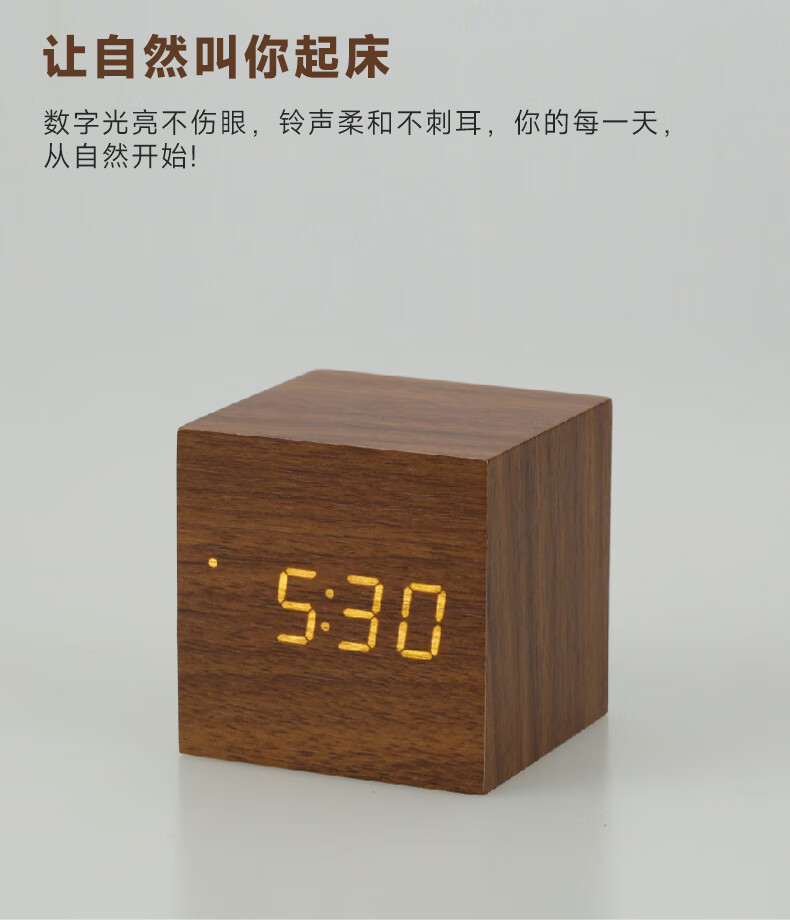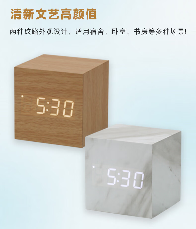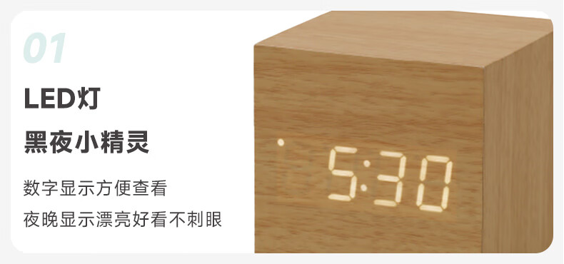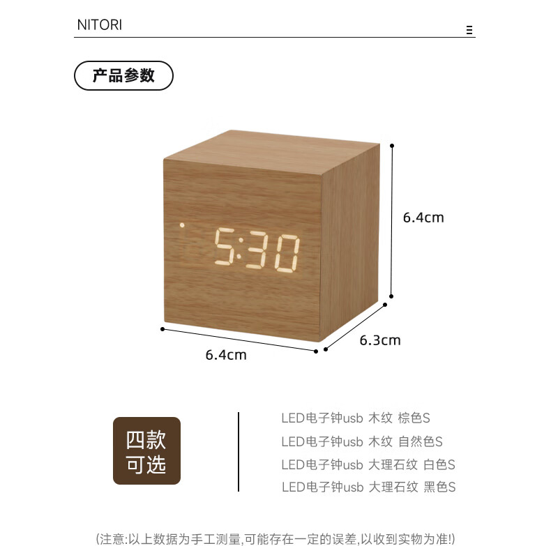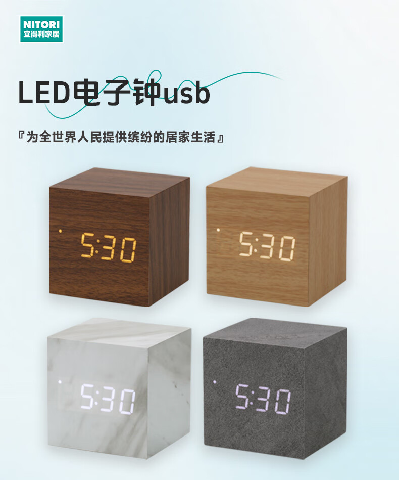 NITORI宜得利家居 简约家用数字时钟卧室床头柜闹钟 LED电子钟usb