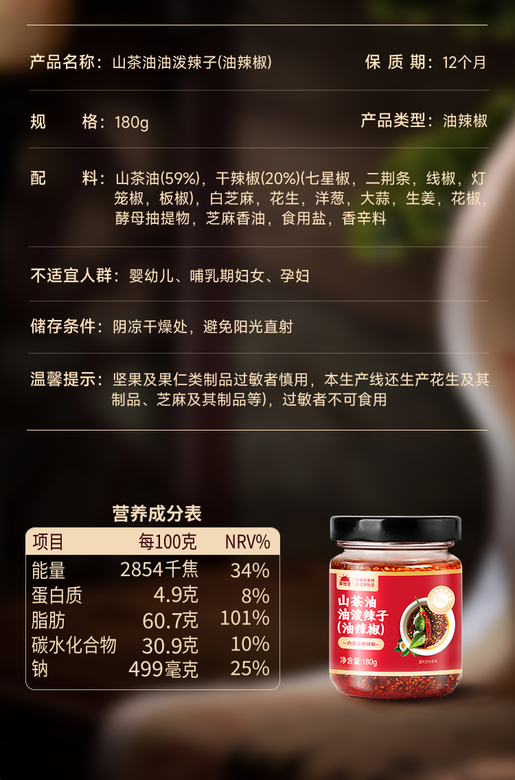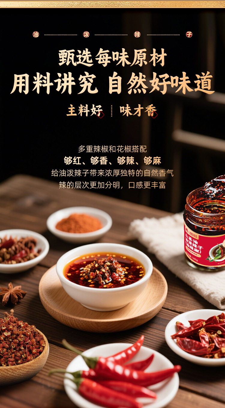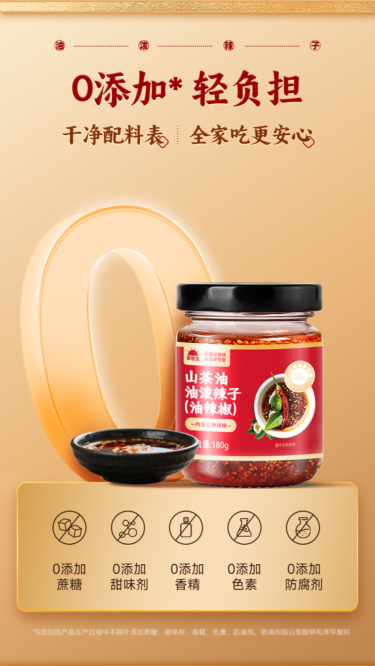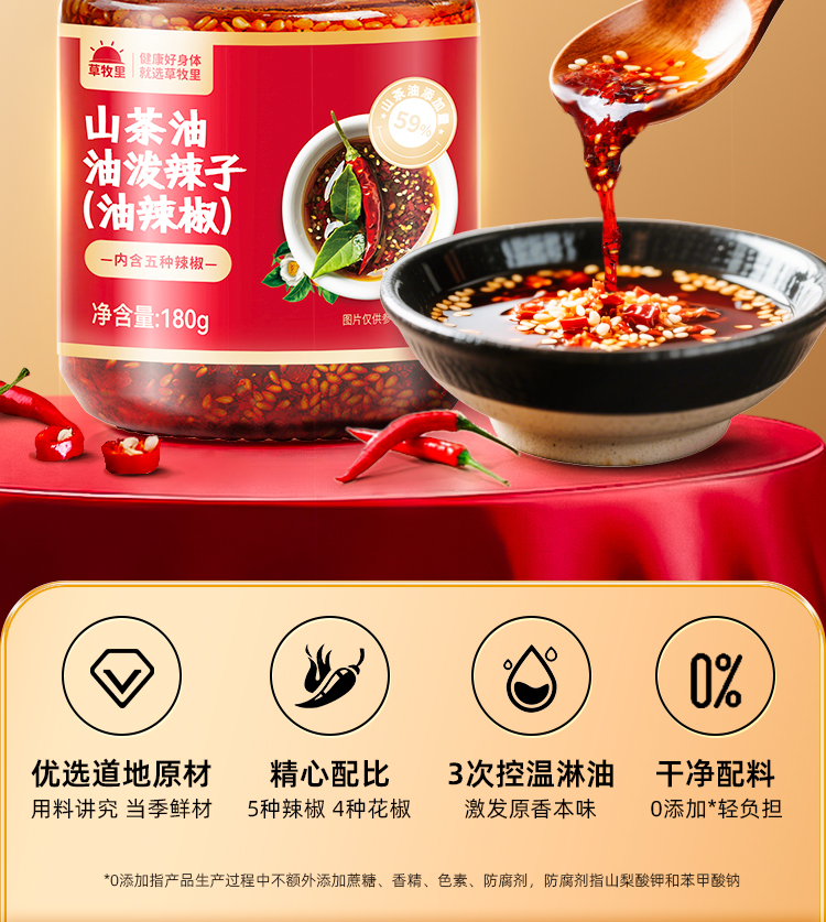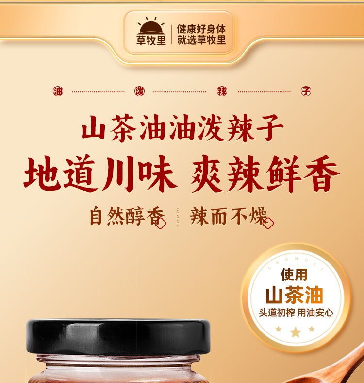 【50积分+27.9】草牧里 山茶油油泼辣子(油辣椒) 180克/瓶 爽辣鲜香
