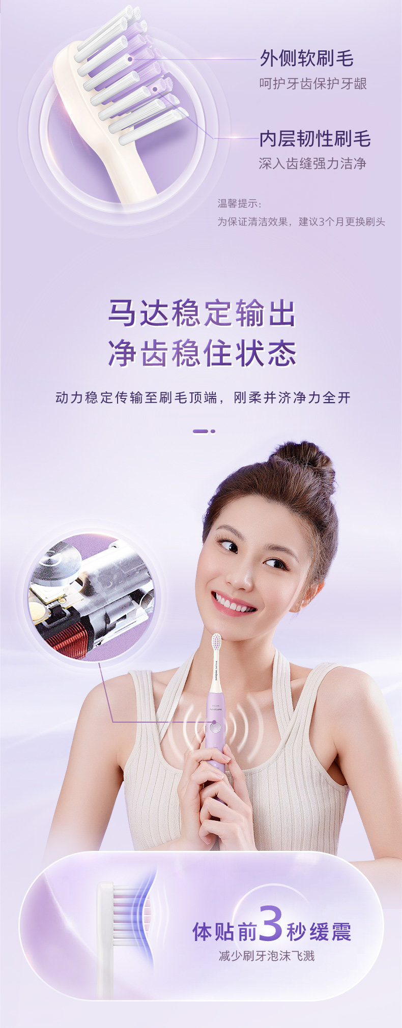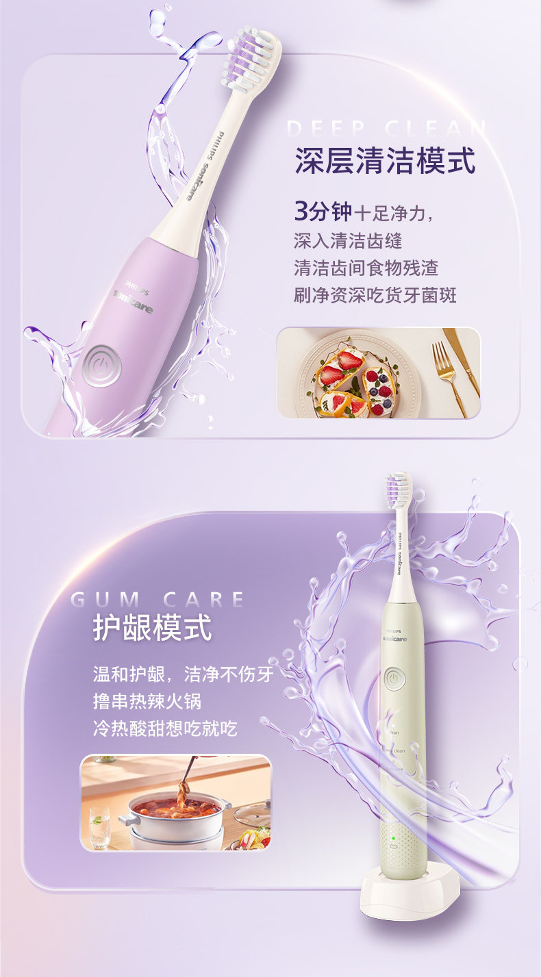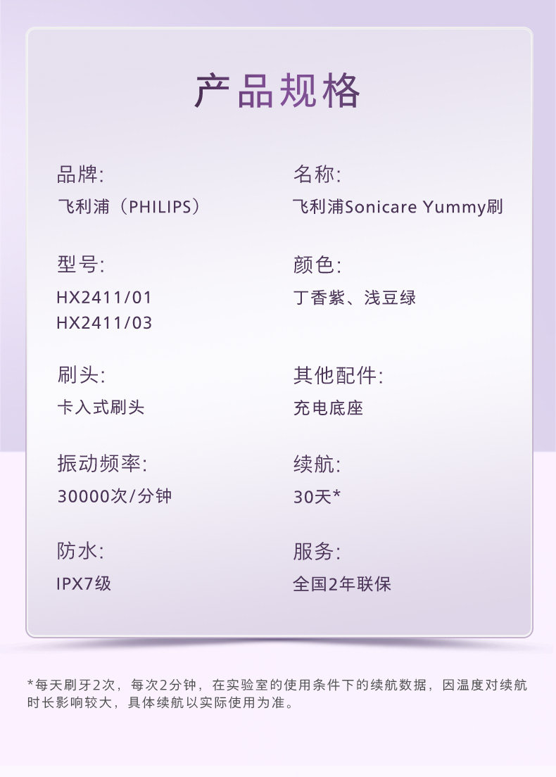 飞利浦(PHILIPS)电动牙刷 紫色HX2411/01
