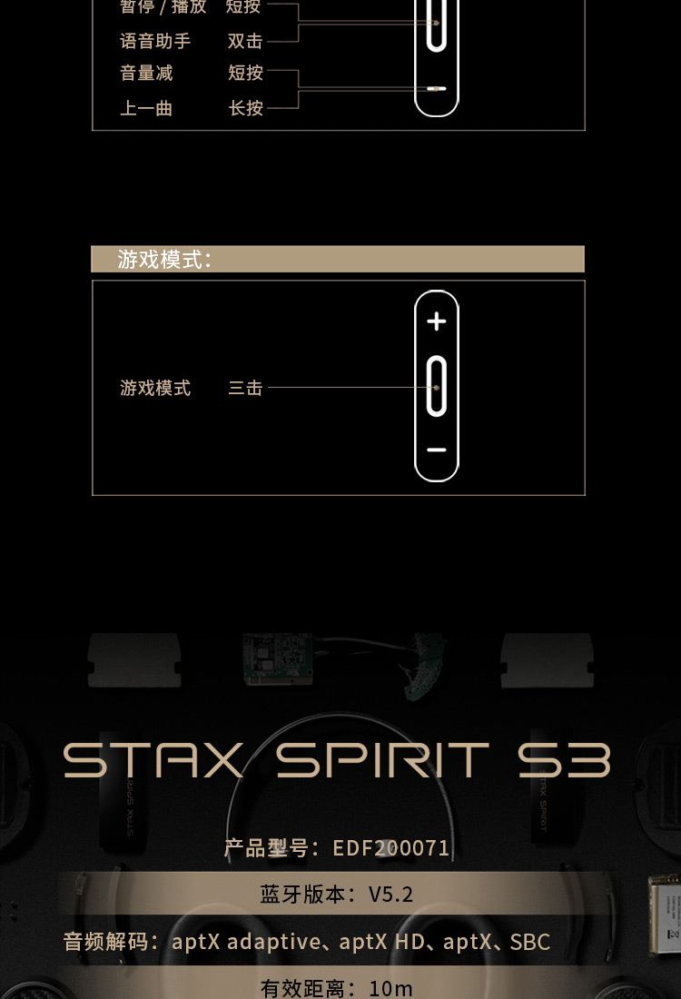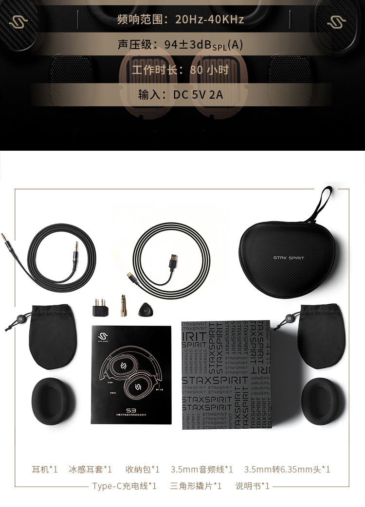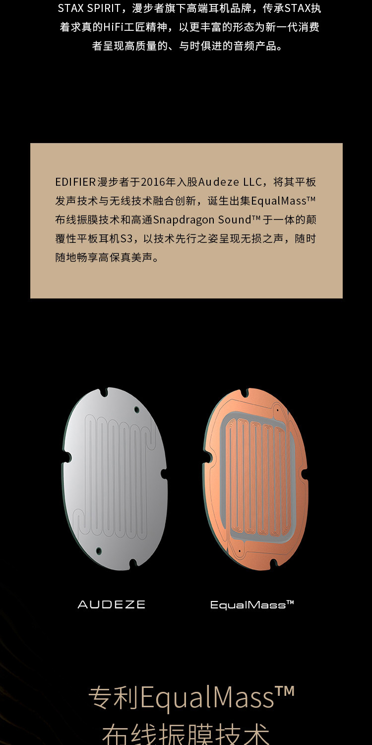 漫步者头戴式蓝牙耳机黑色STAX SPIRIT S3