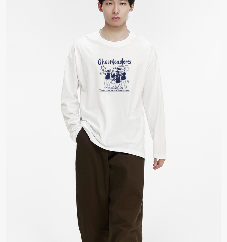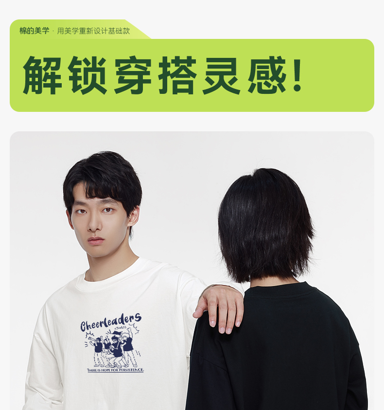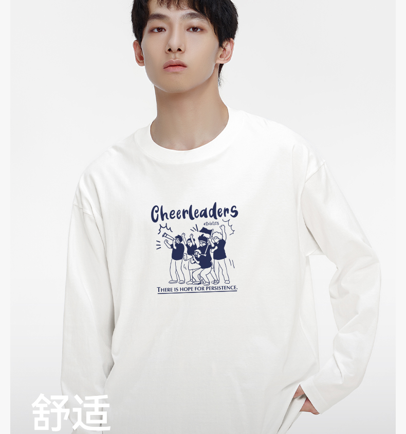 「棉的美学」纯棉长袖t恤男2024新款日系趣味印花休闲百搭圆领卫