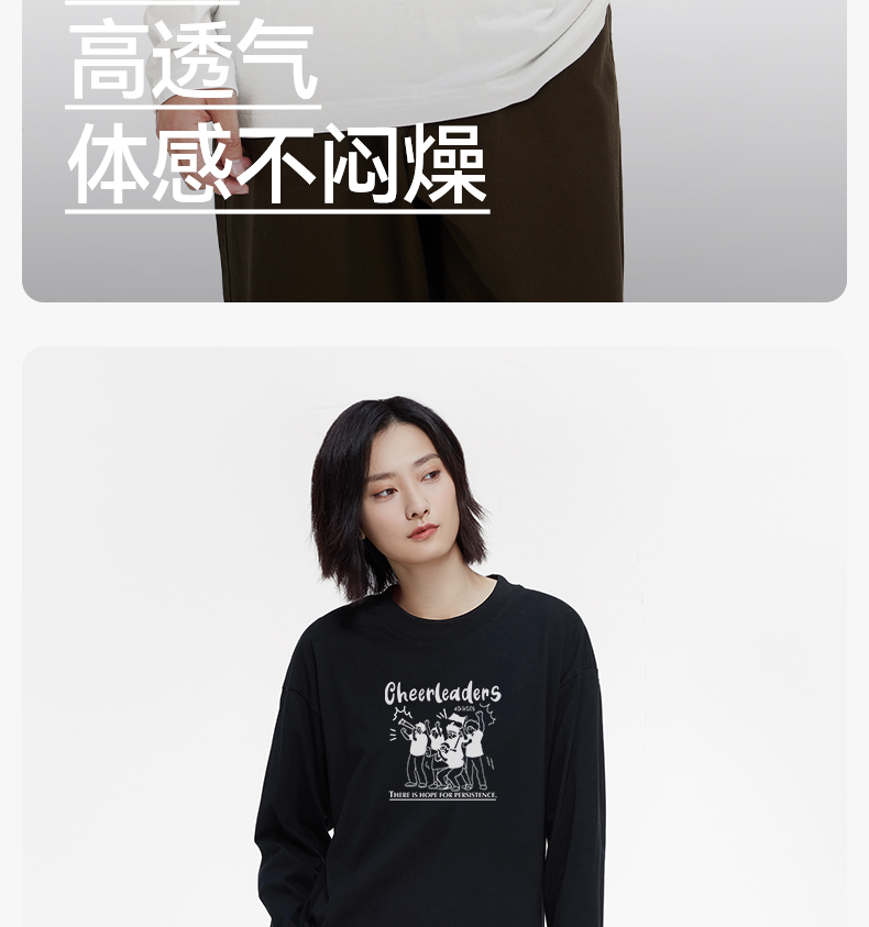 「棉的美学」韩系长袖圆领T恤早秋薄款外穿ins风休闲宽松打底衫上衣