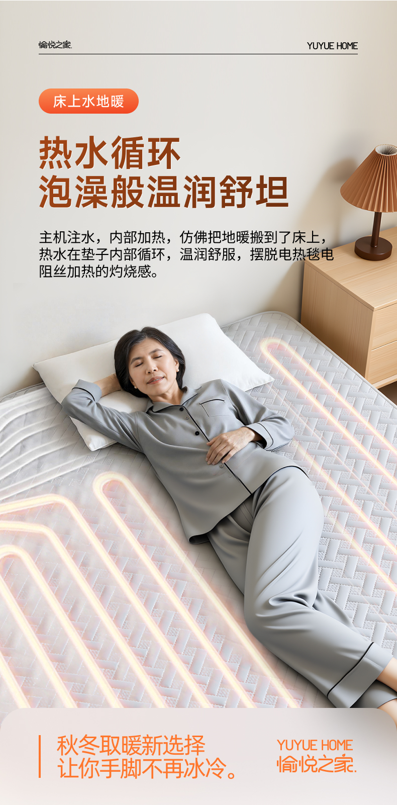 【四季可用】愉悦之家 水暖电热毯 1条 热水循环水电分离