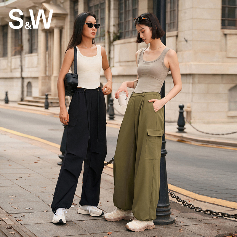 【sw速惟】宽松显瘦松紧腰工装长裤S4AW6166