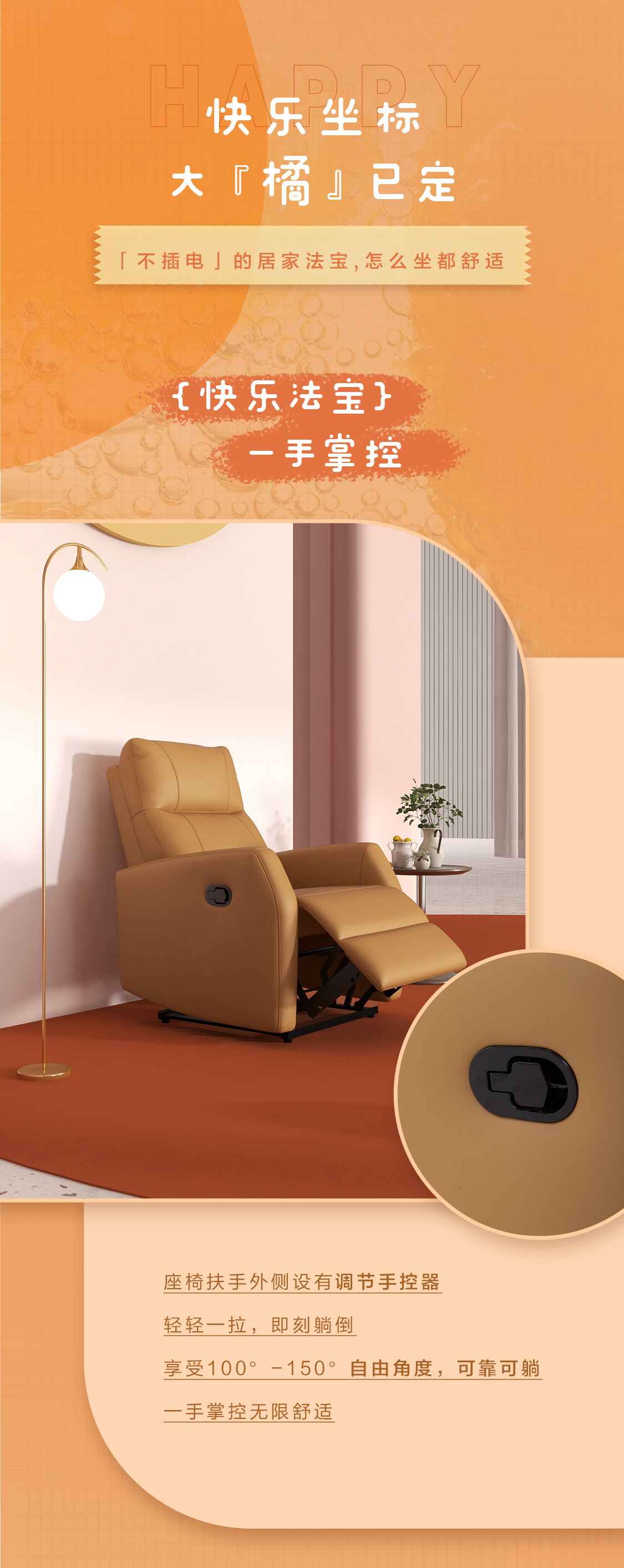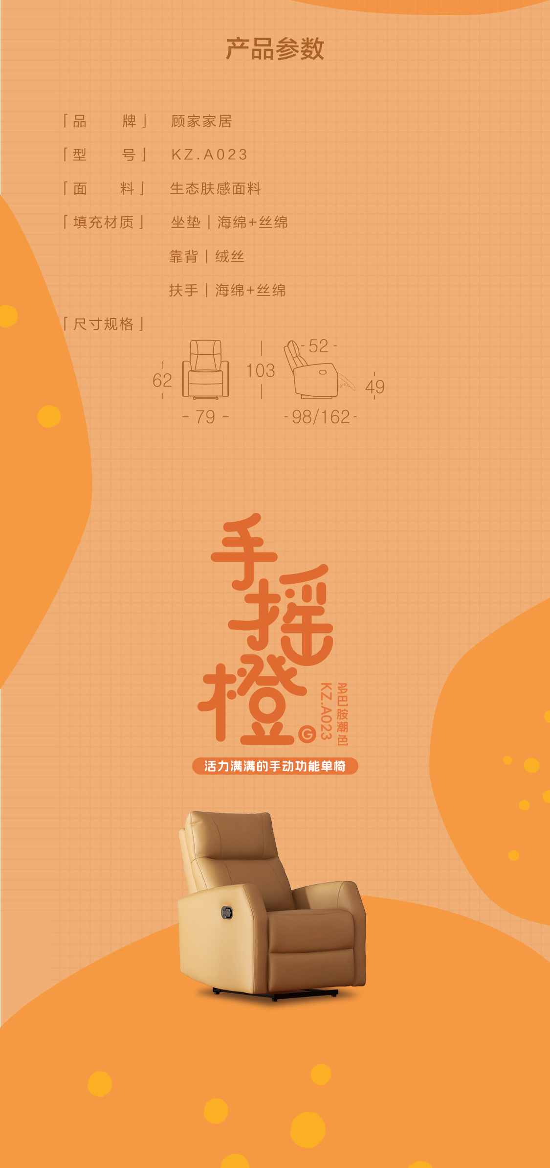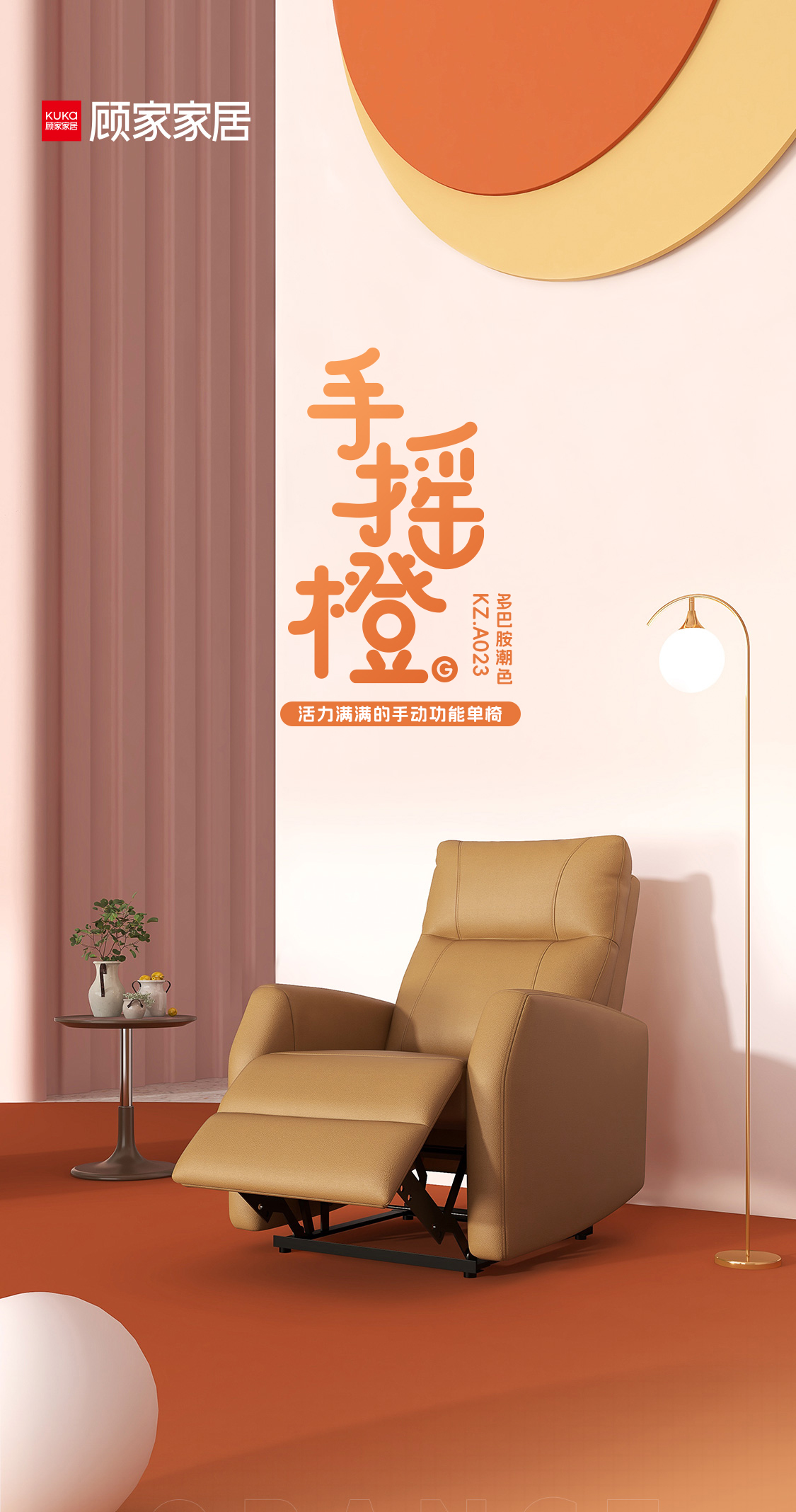 顾家家居整装 手动功能单椅 KZ.A023手摇橙