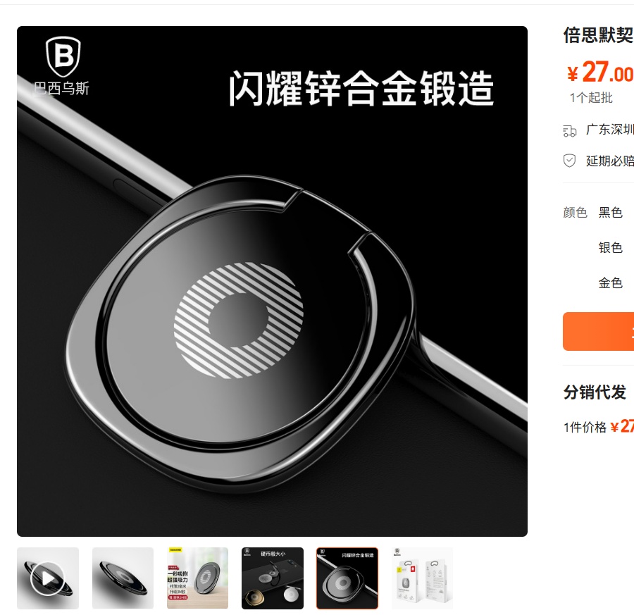 【京东热销评论20W+ 自用性价比】倍思 默契指环支架 银色 SUMQ-0S 懒人手机扣环扣