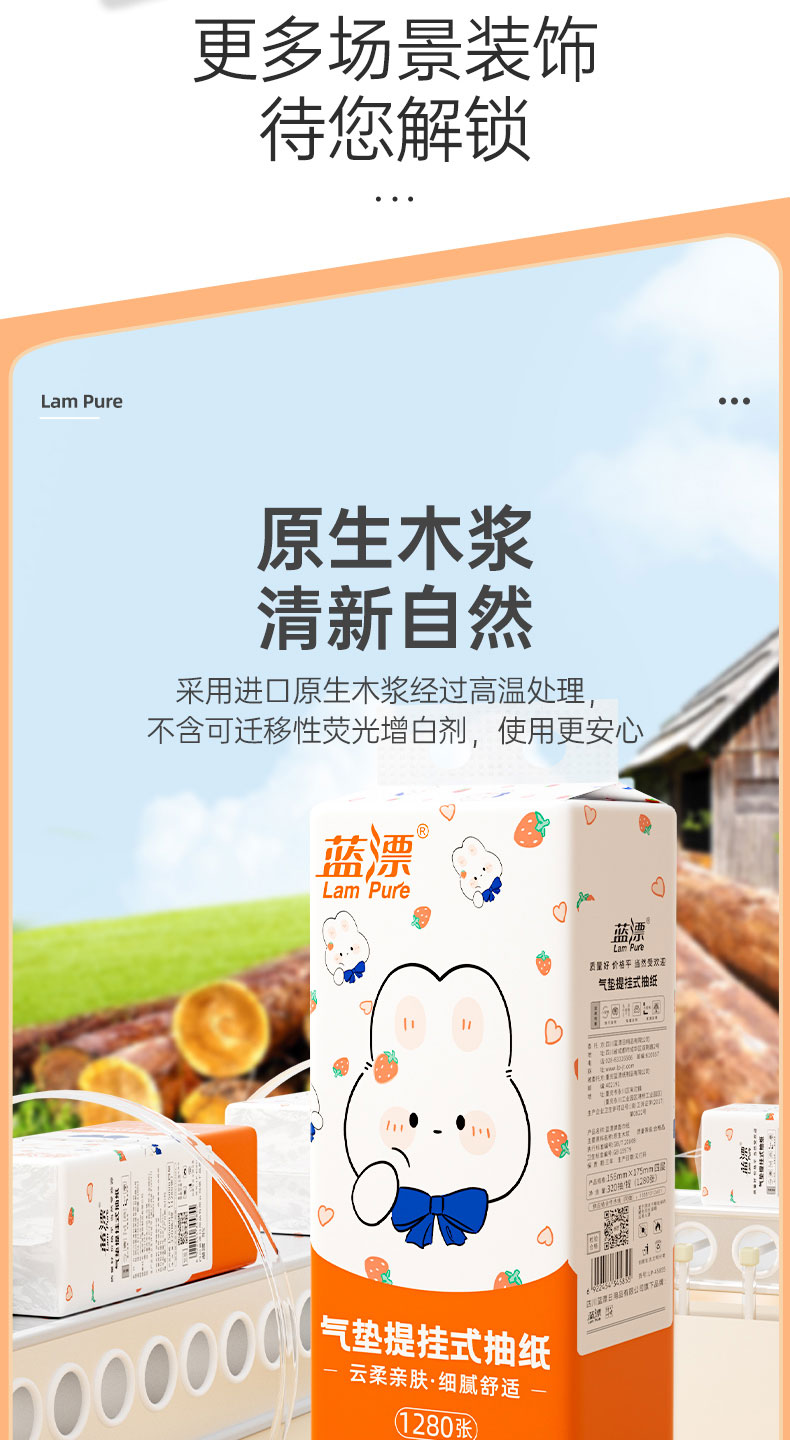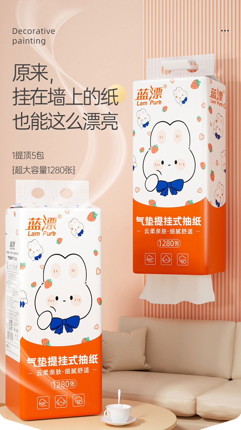 【蓝漂】1280张*1提 悬挂式纸巾抽纸 家用实惠装白色气垫挂式抽纸 4提装