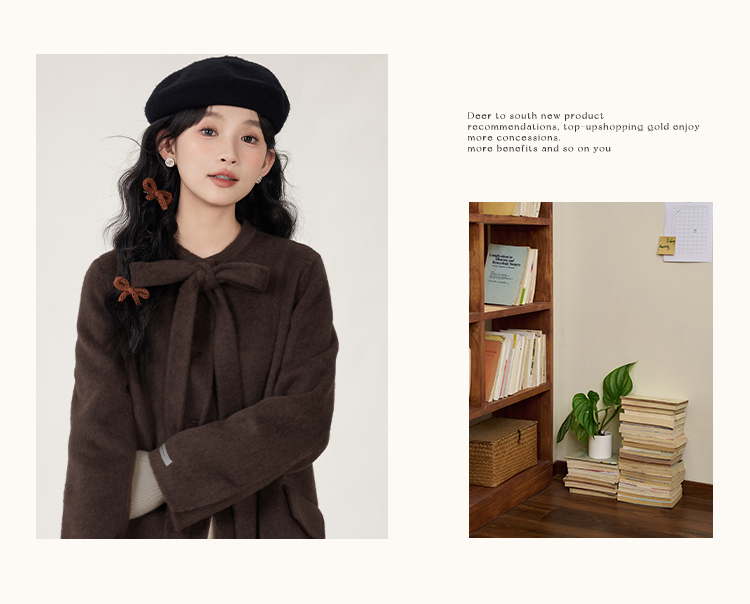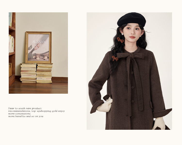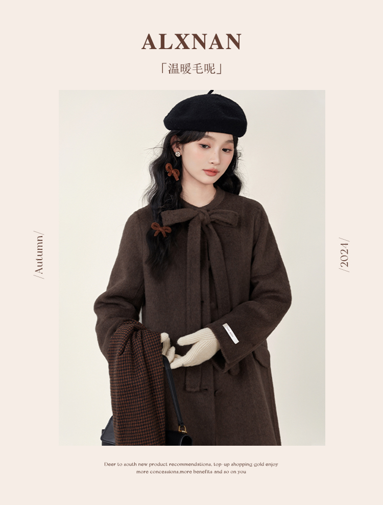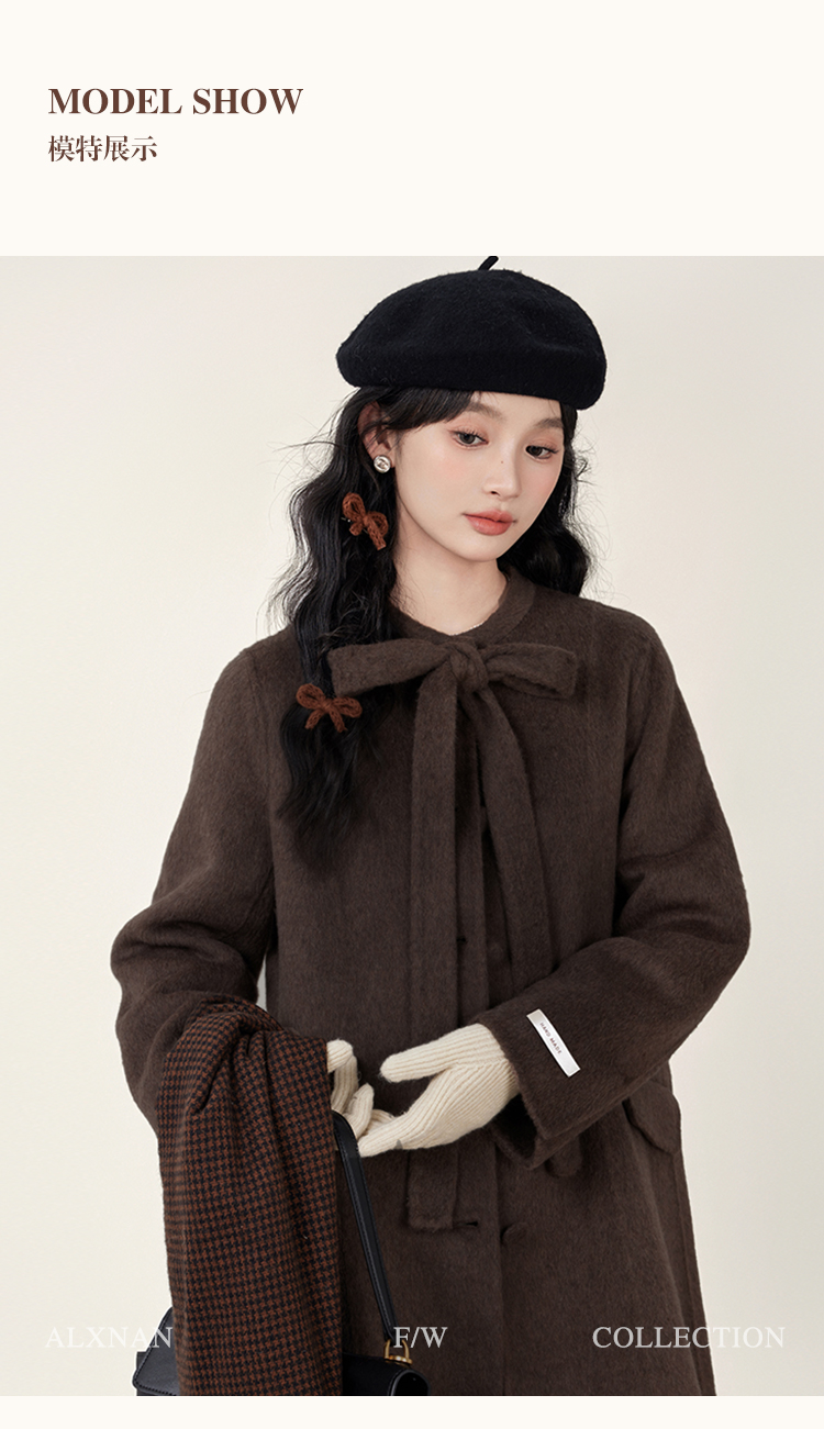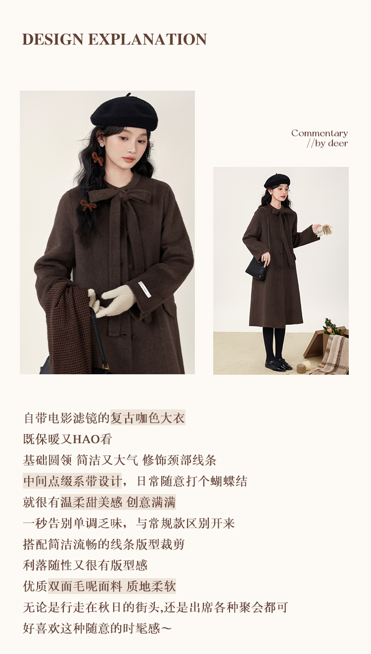 鹿向南「温暖毛呢」时尚通勤双面毛呢外套女2025年秋季呢子大衣L51007