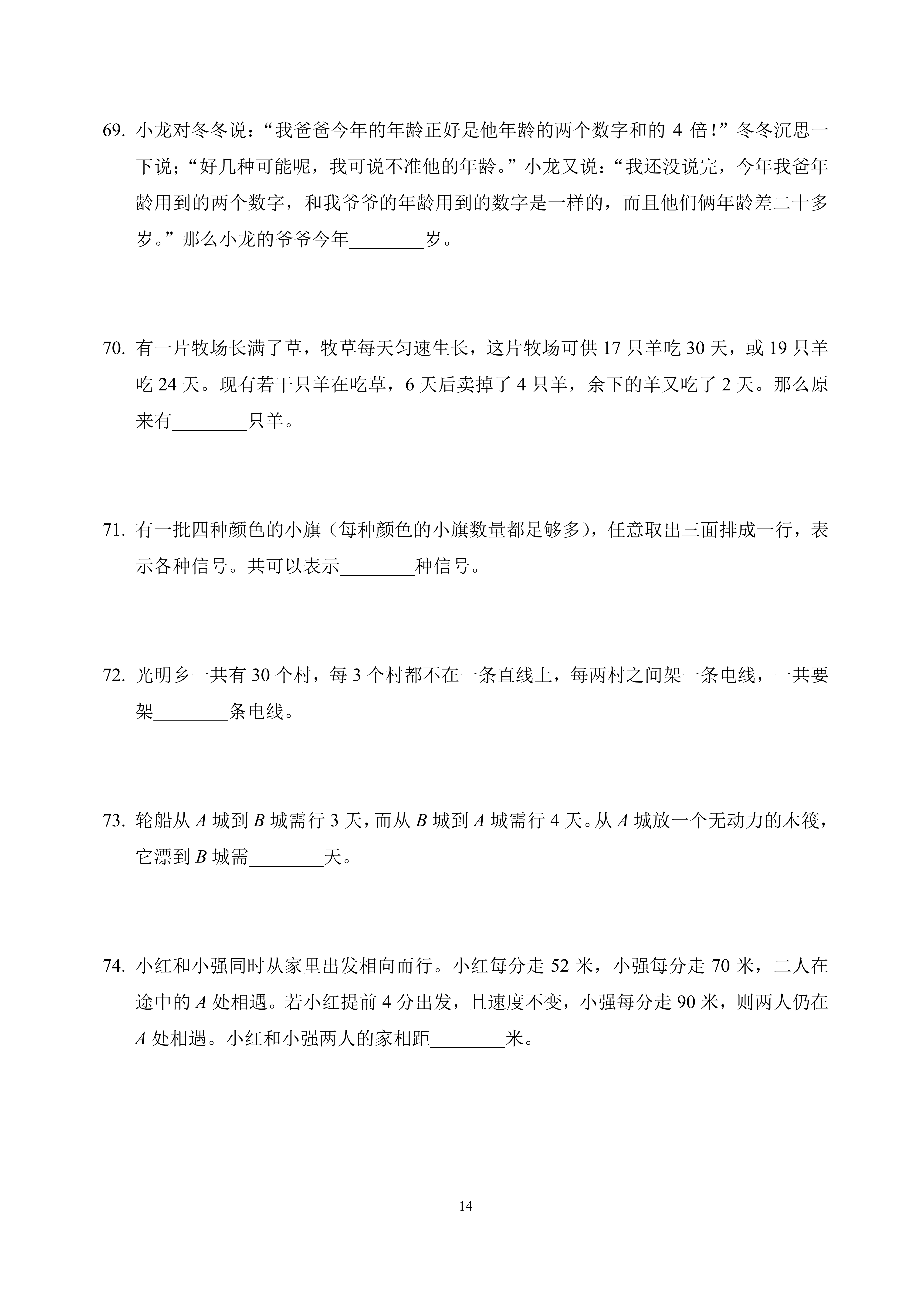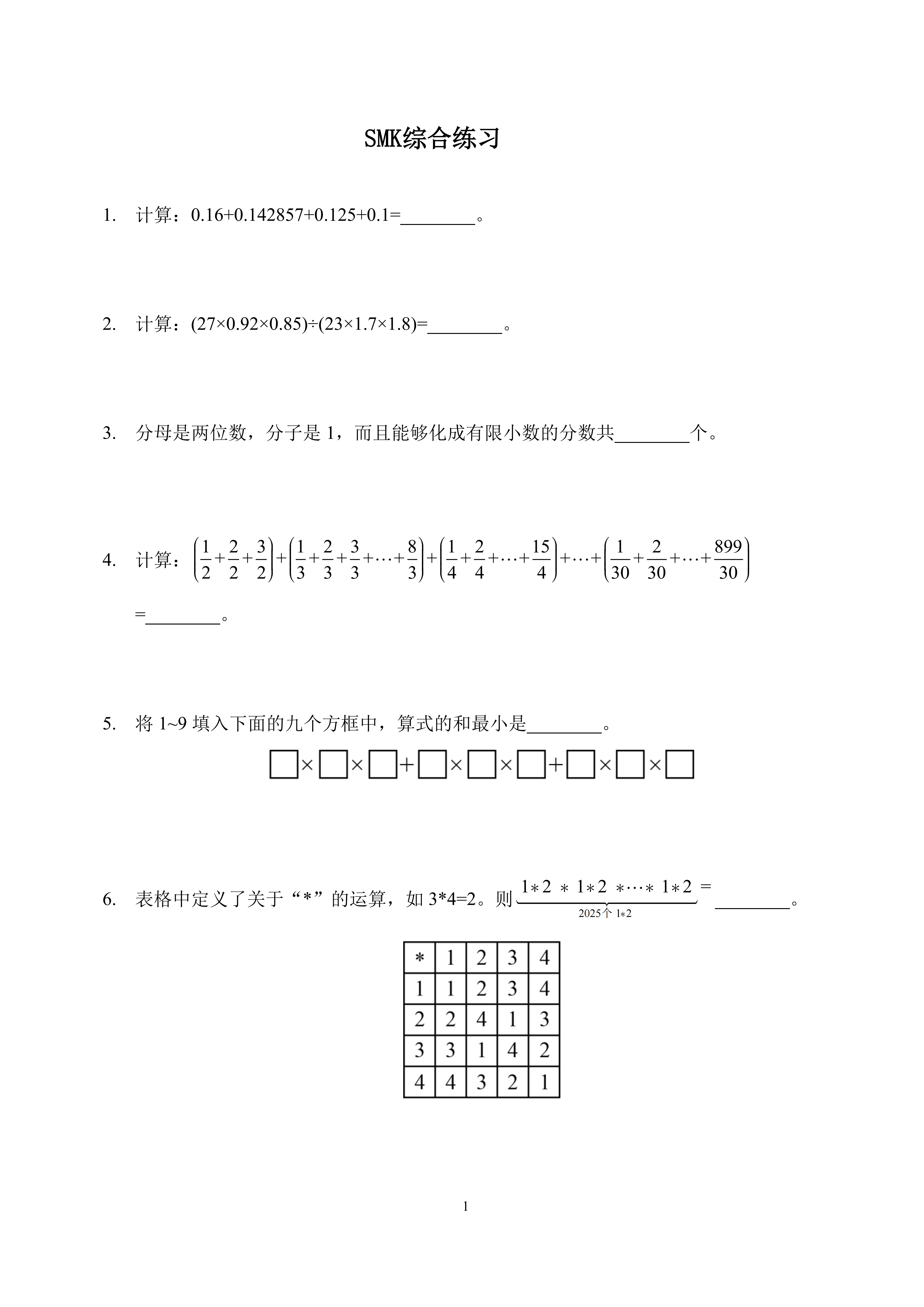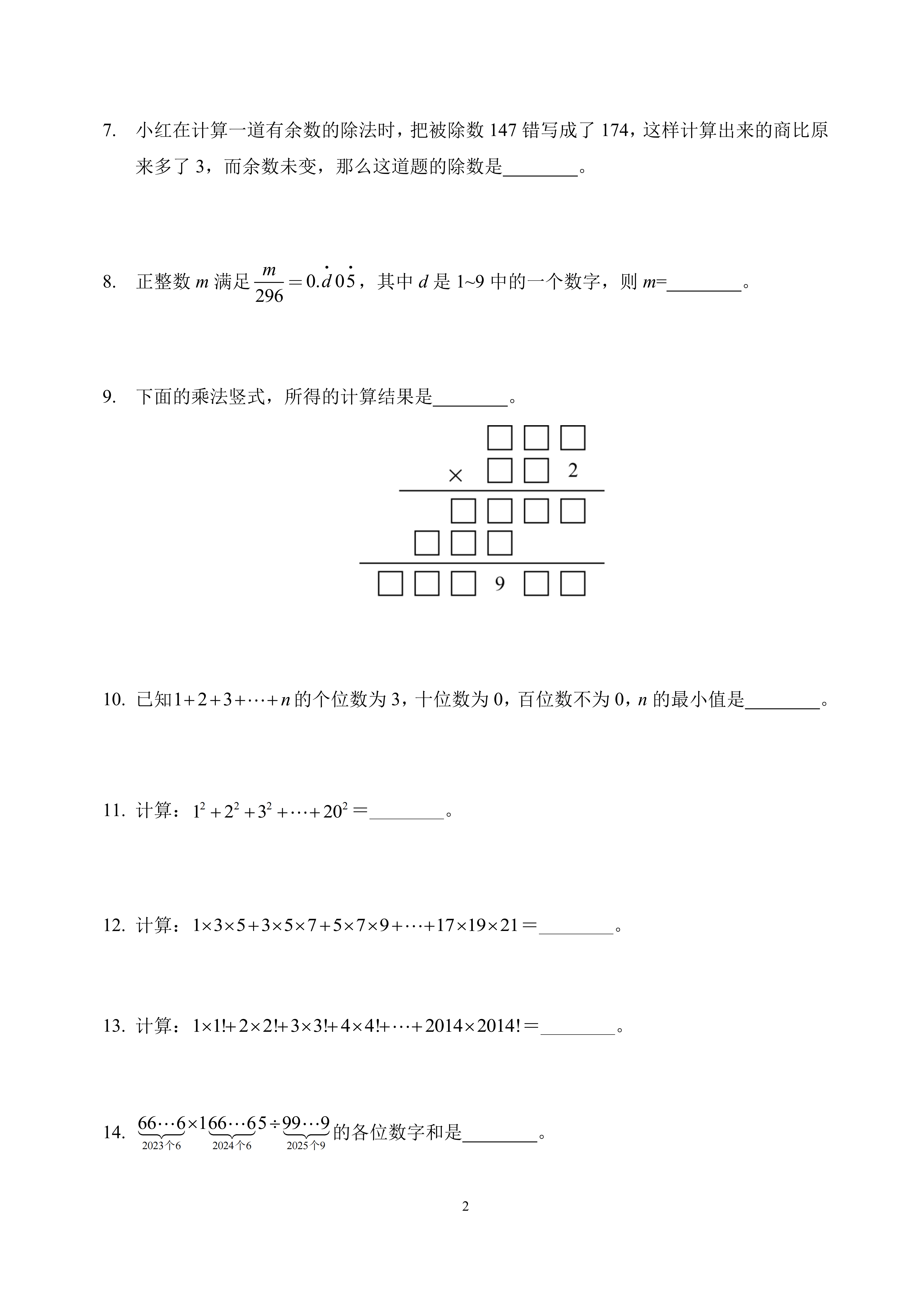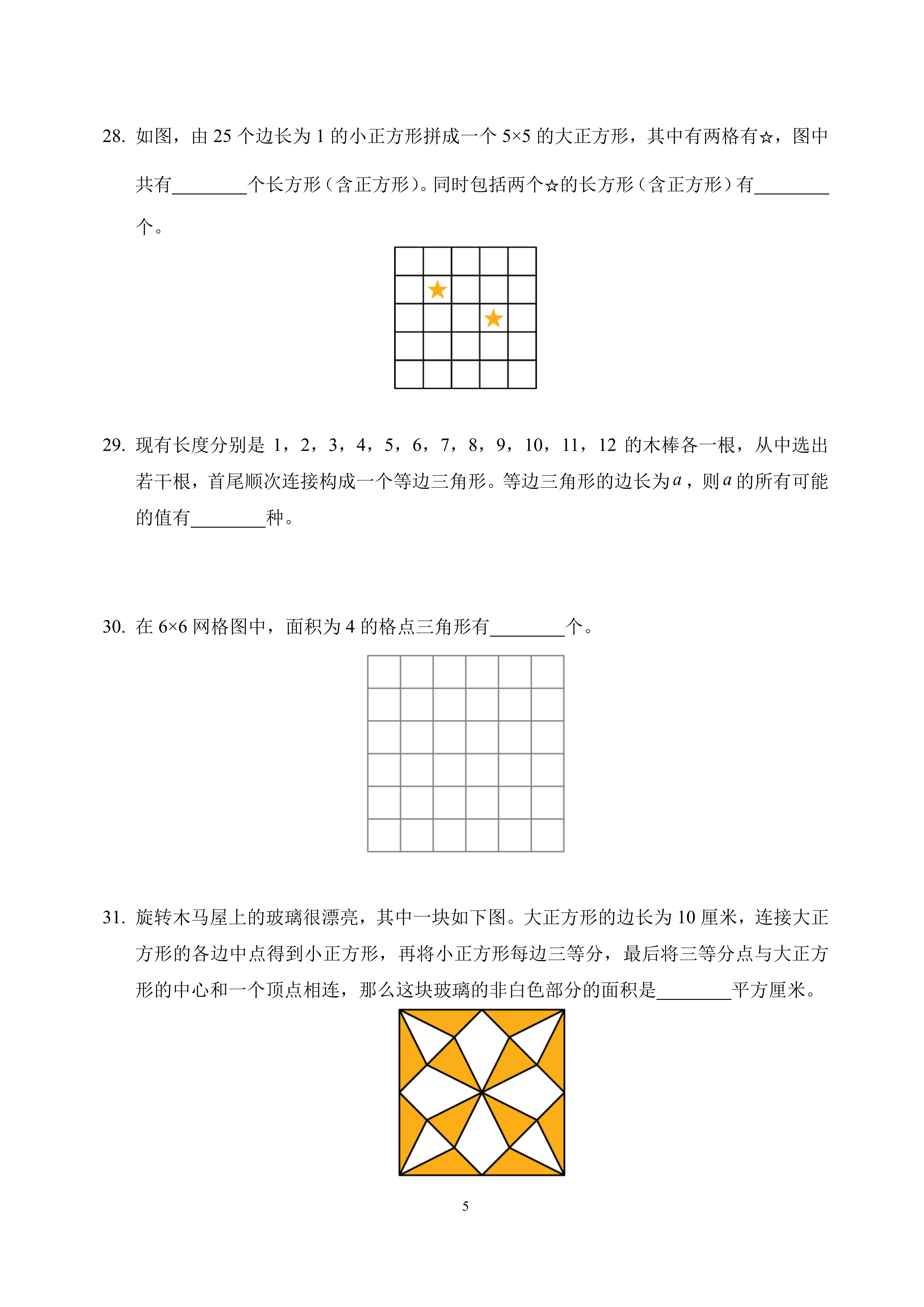 🍁综合卷内容包括,计算(裂项,巧算,公式),数论(整除,同余),几何(模型,变形,最值),应用题(工程,浓度,经济),计数(排列组合),杂题(逻辑推理,比赛问题)