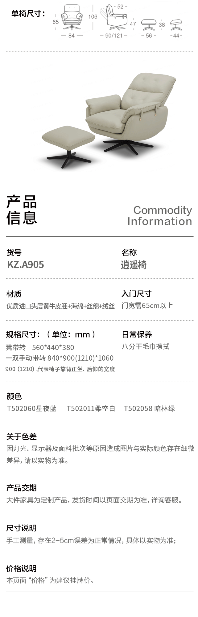 顾家家居整装 360°可旋转皮单椅 KZ.A905逍遥椅