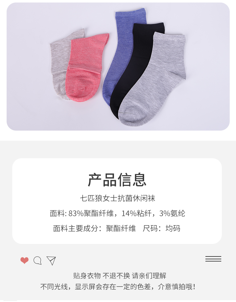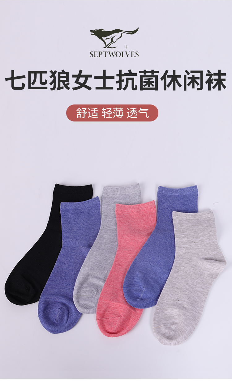 七匹狼女士抗菌休闲袜六双装62025-6