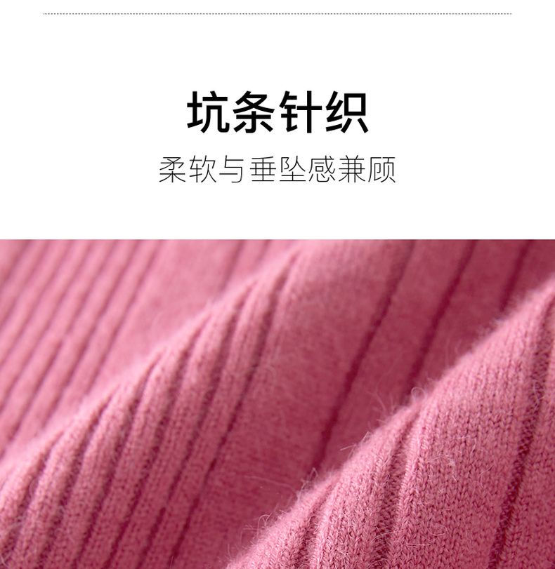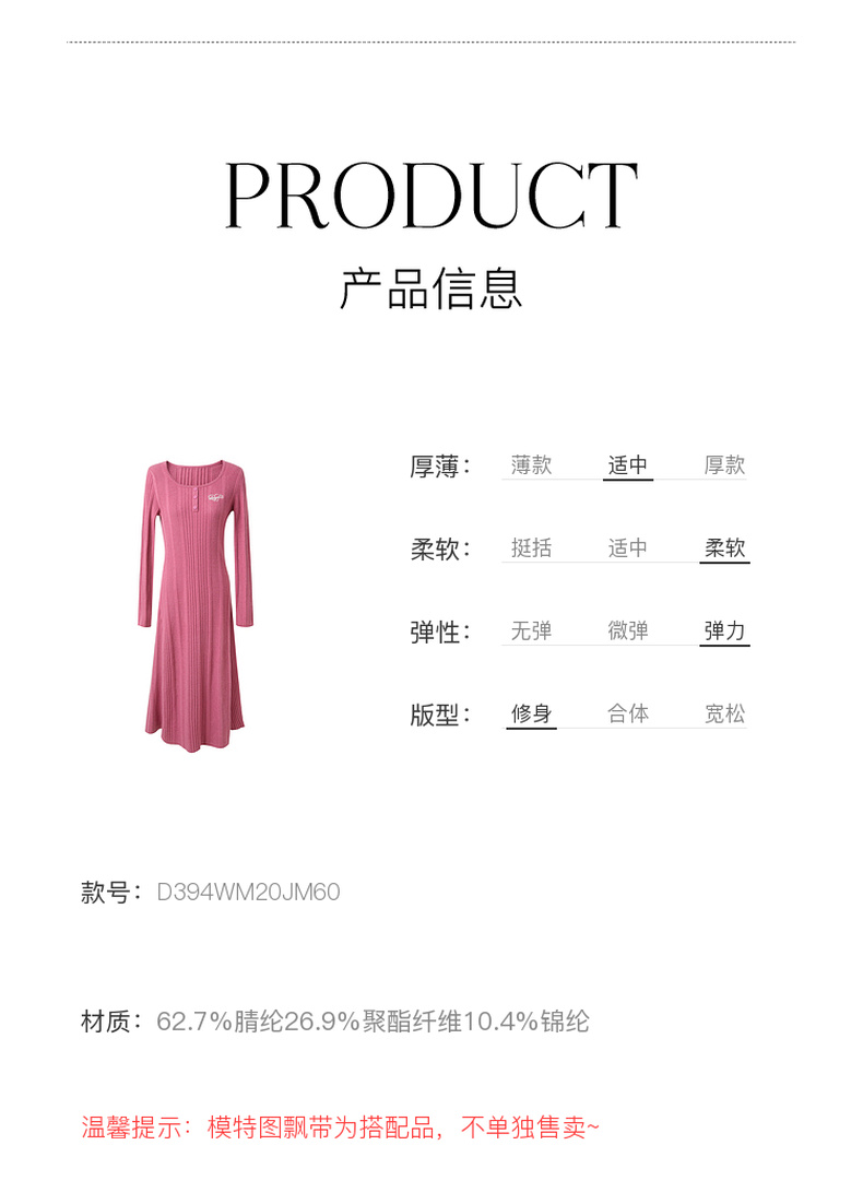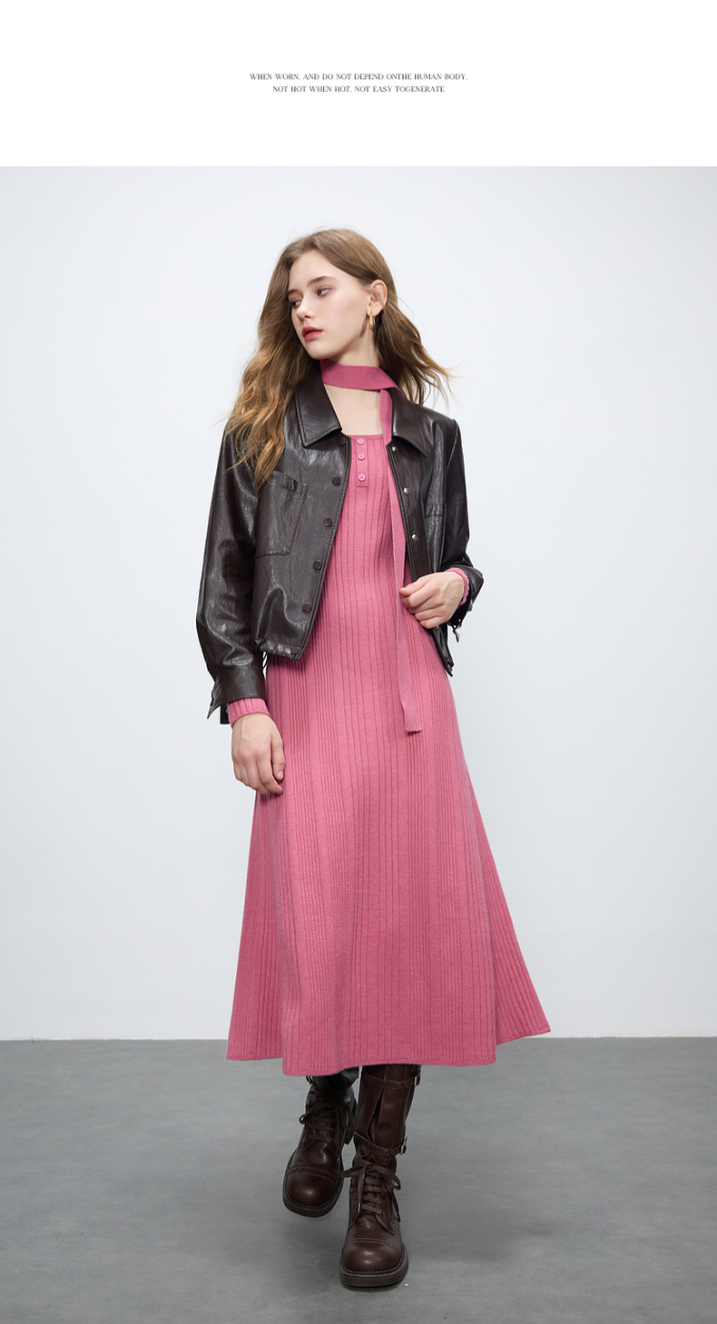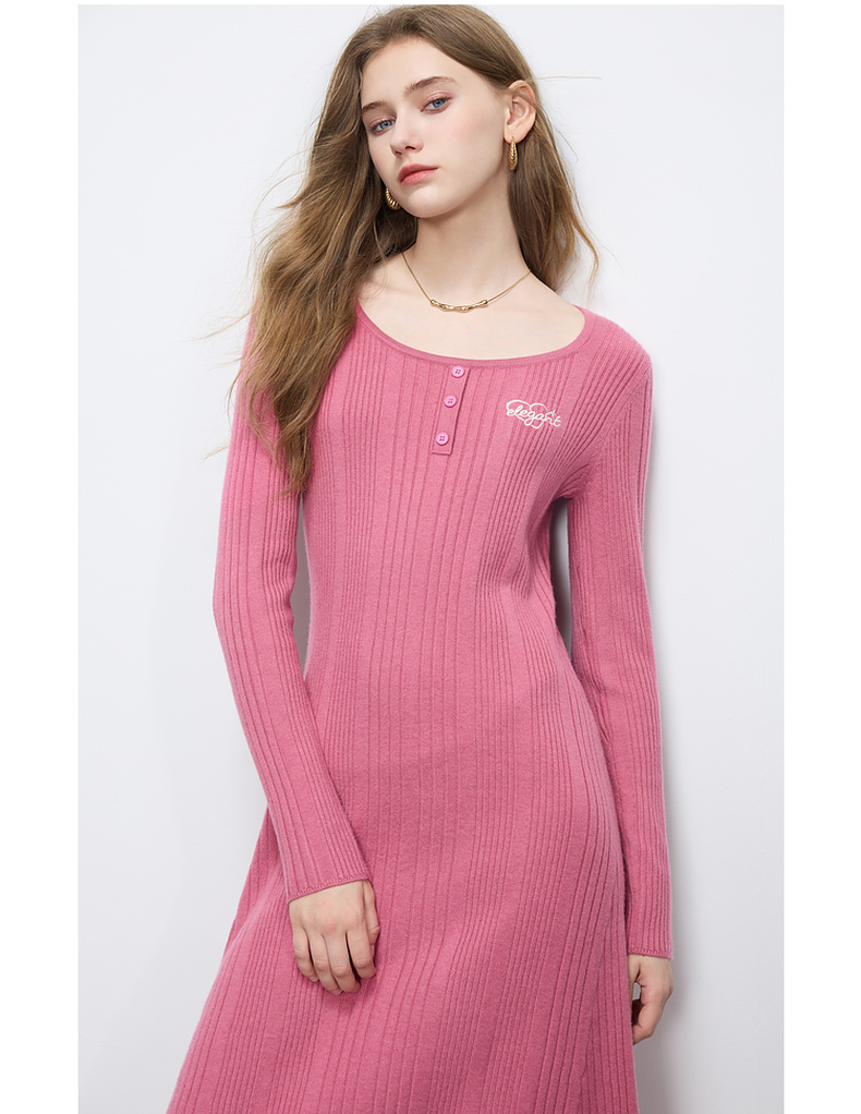 三彩2024冬季新款绣花针织连衣裙坑条毛衫裙子A字长裙打底女M