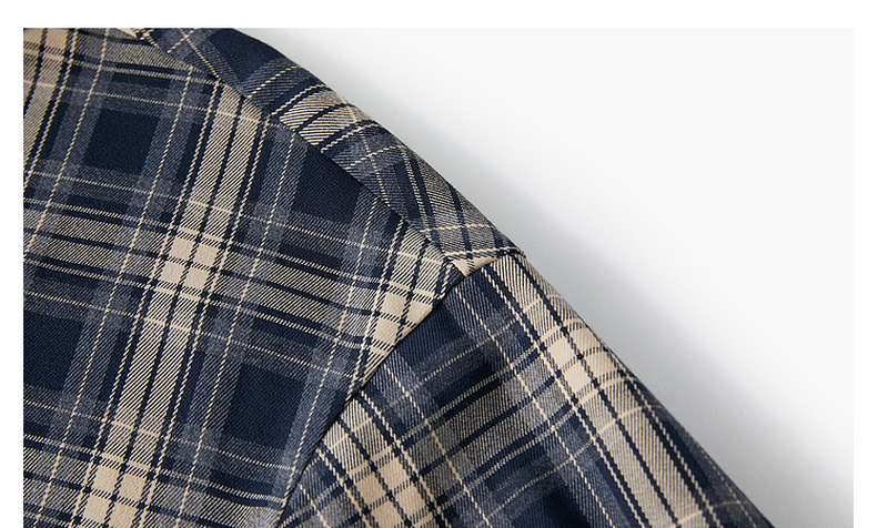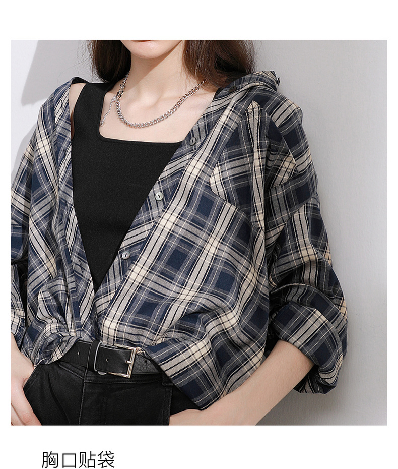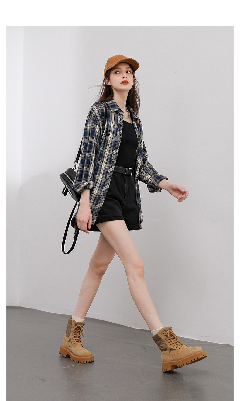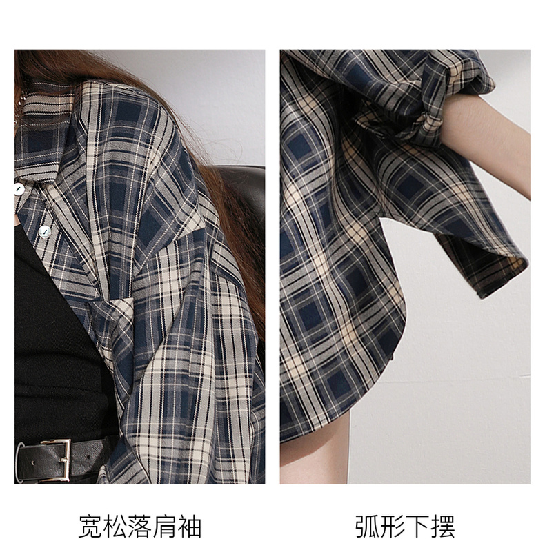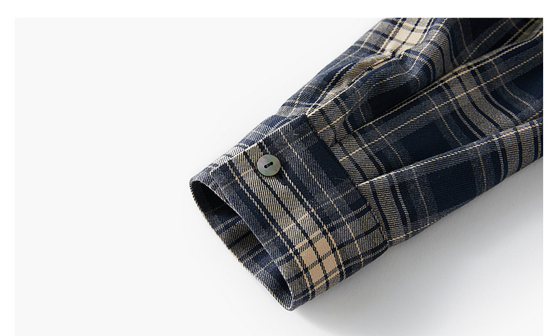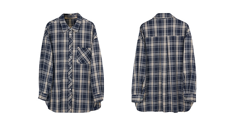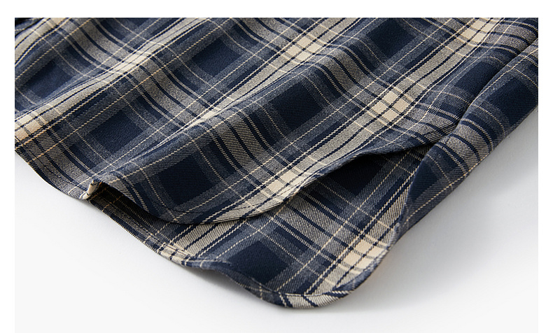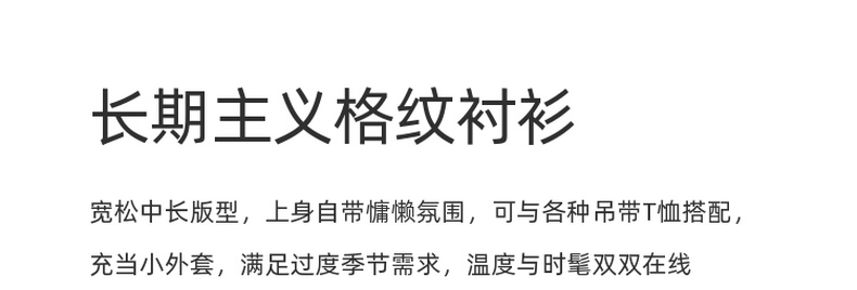 三彩2026春季新款格纹衬衫宽松中长款衬衣开衫翻领休闲复古M
