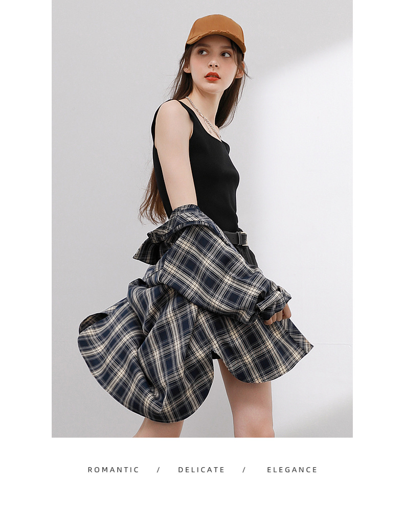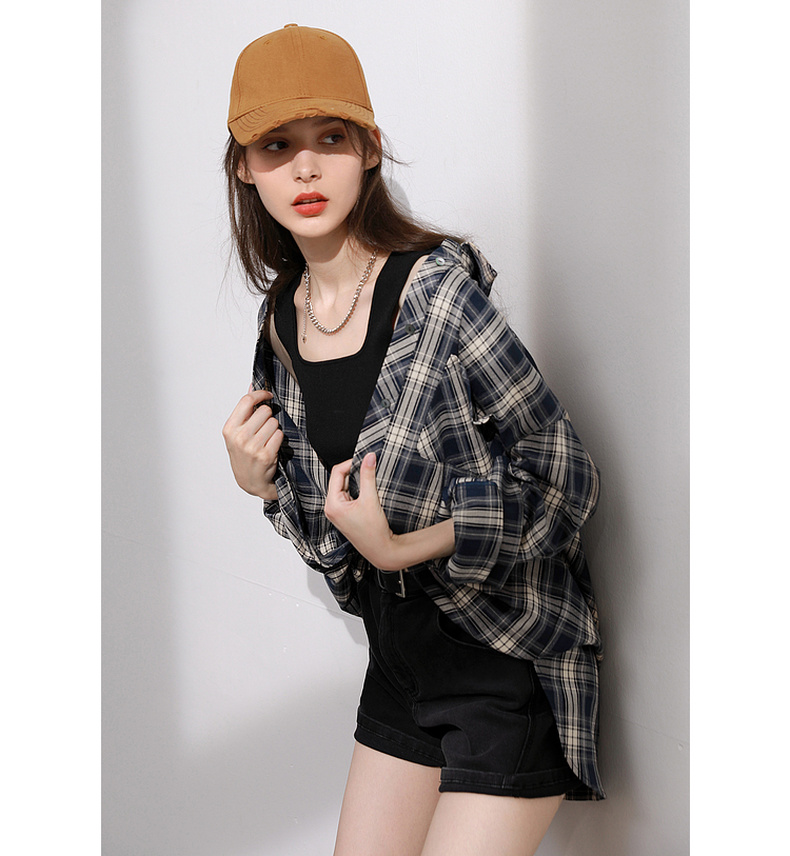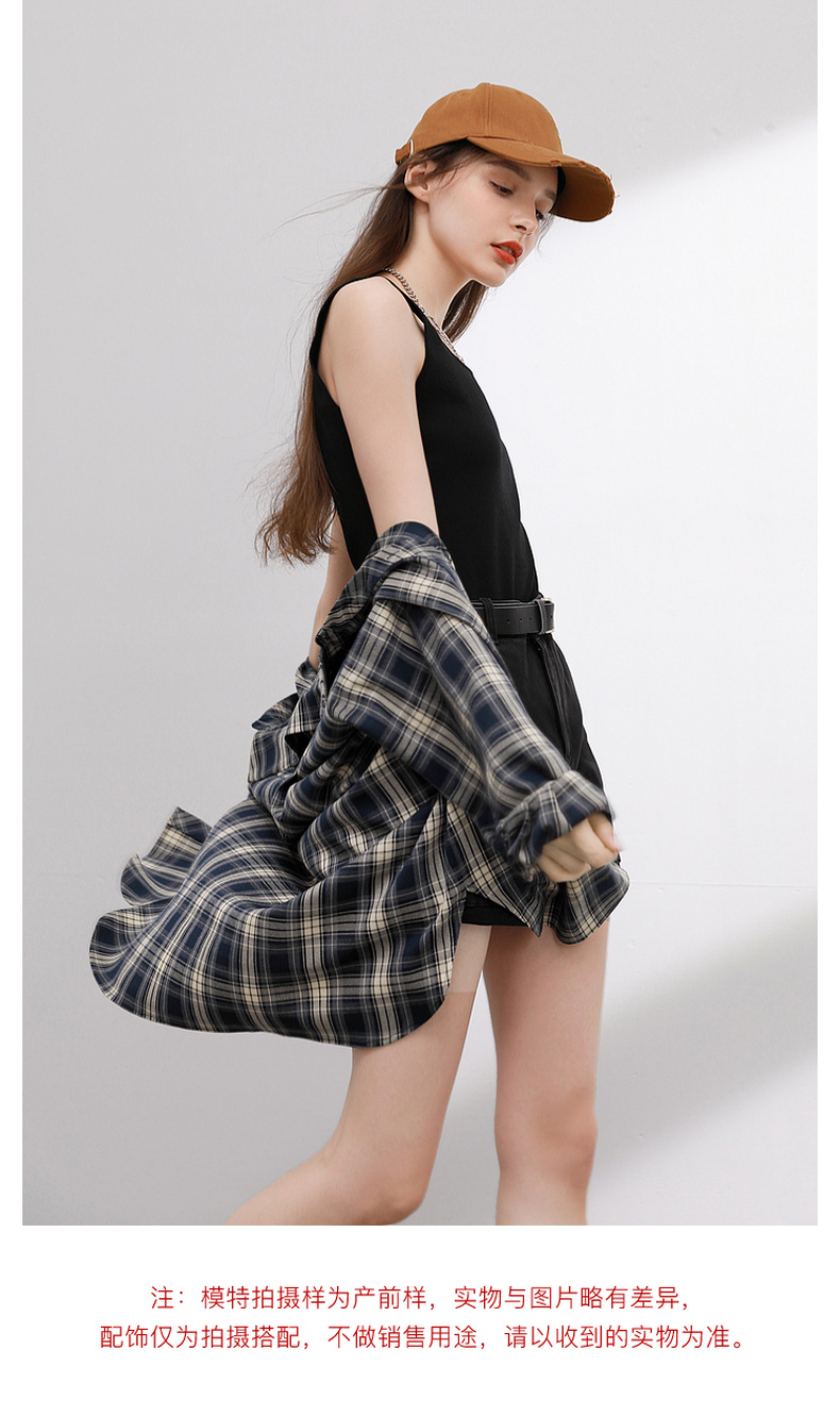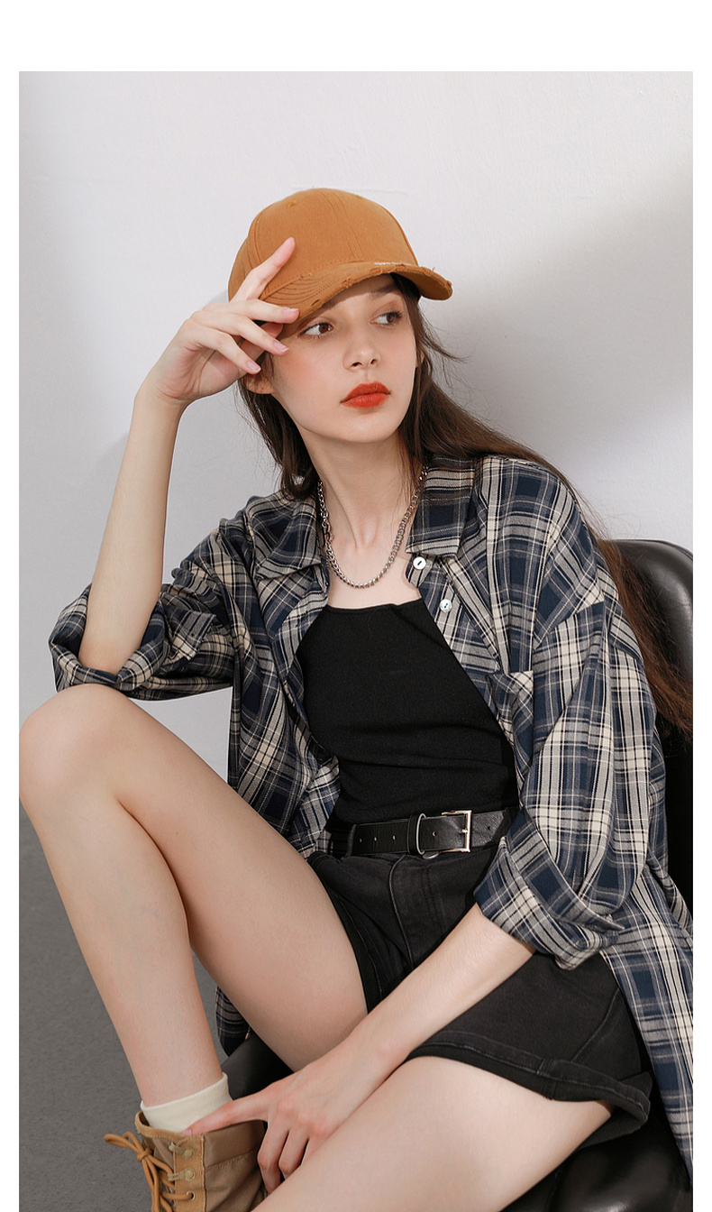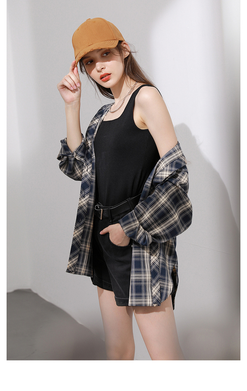 三彩2026春季新款格纹衬衫宽松中长款衬衣开衫翻领休闲复古M