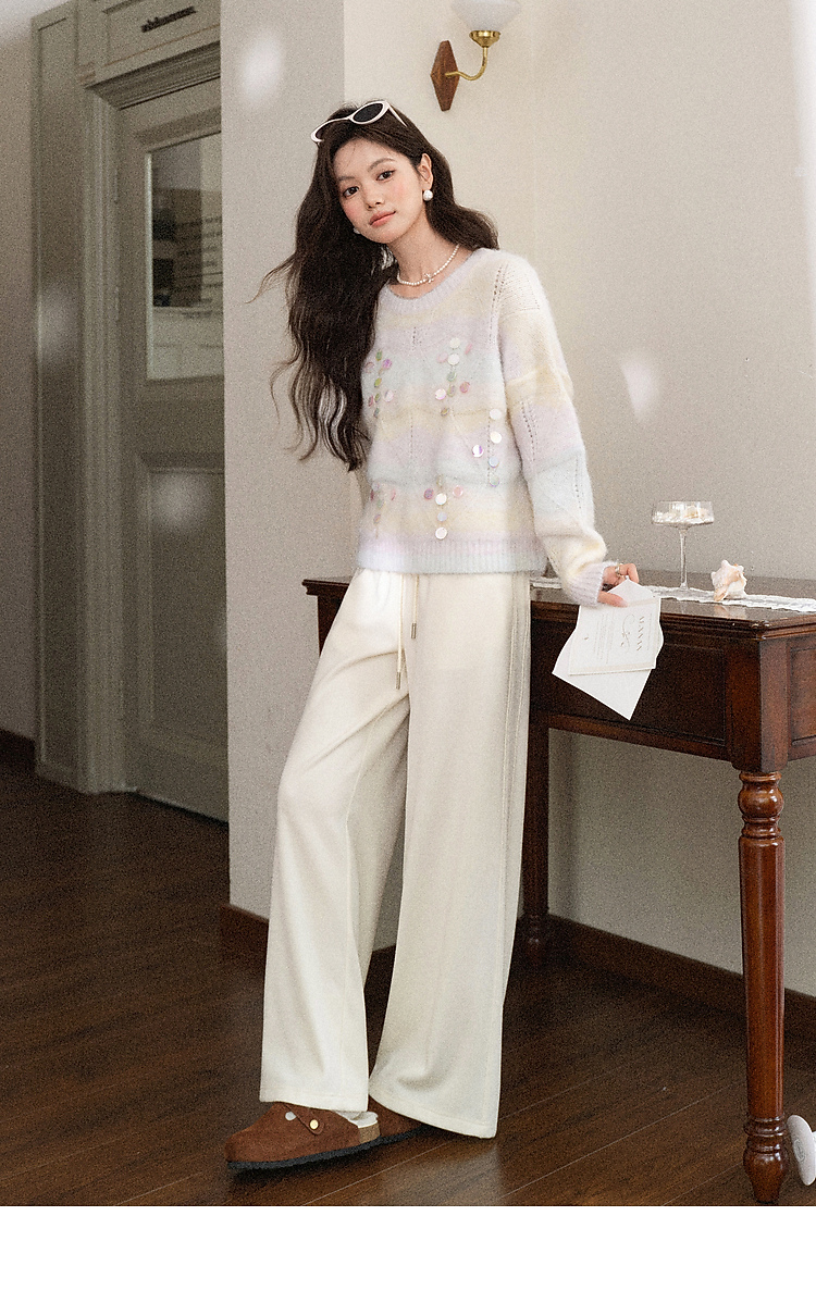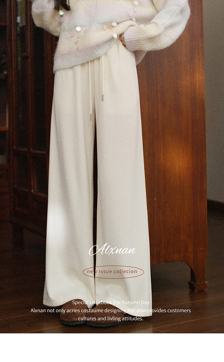 鹿向南「白桦书信」百搭杏色直筒休闲裤女秋新款垂感宽松阔腿长裤