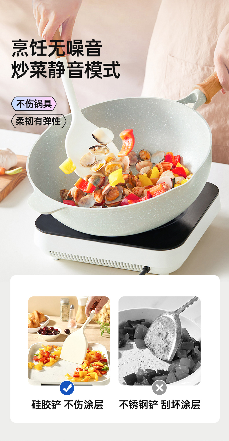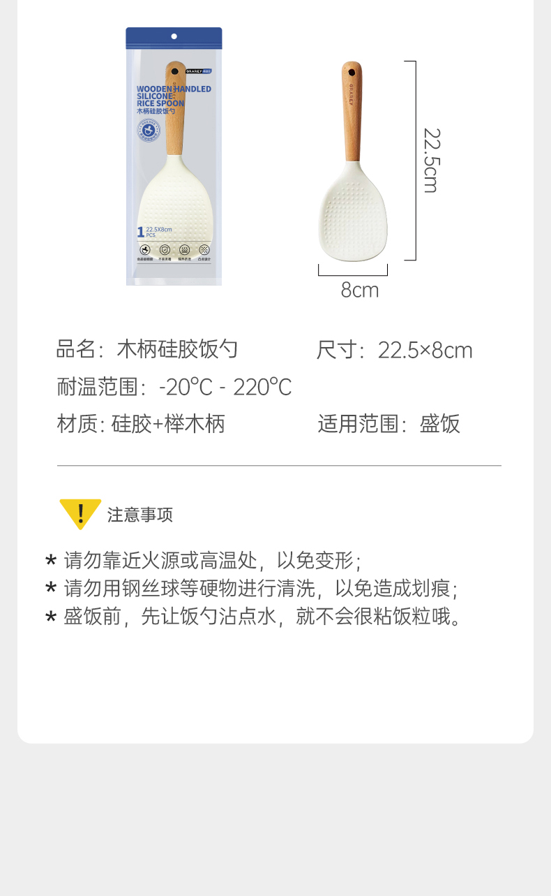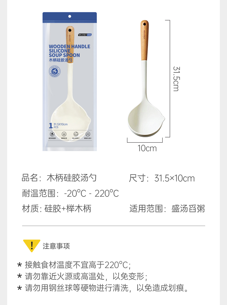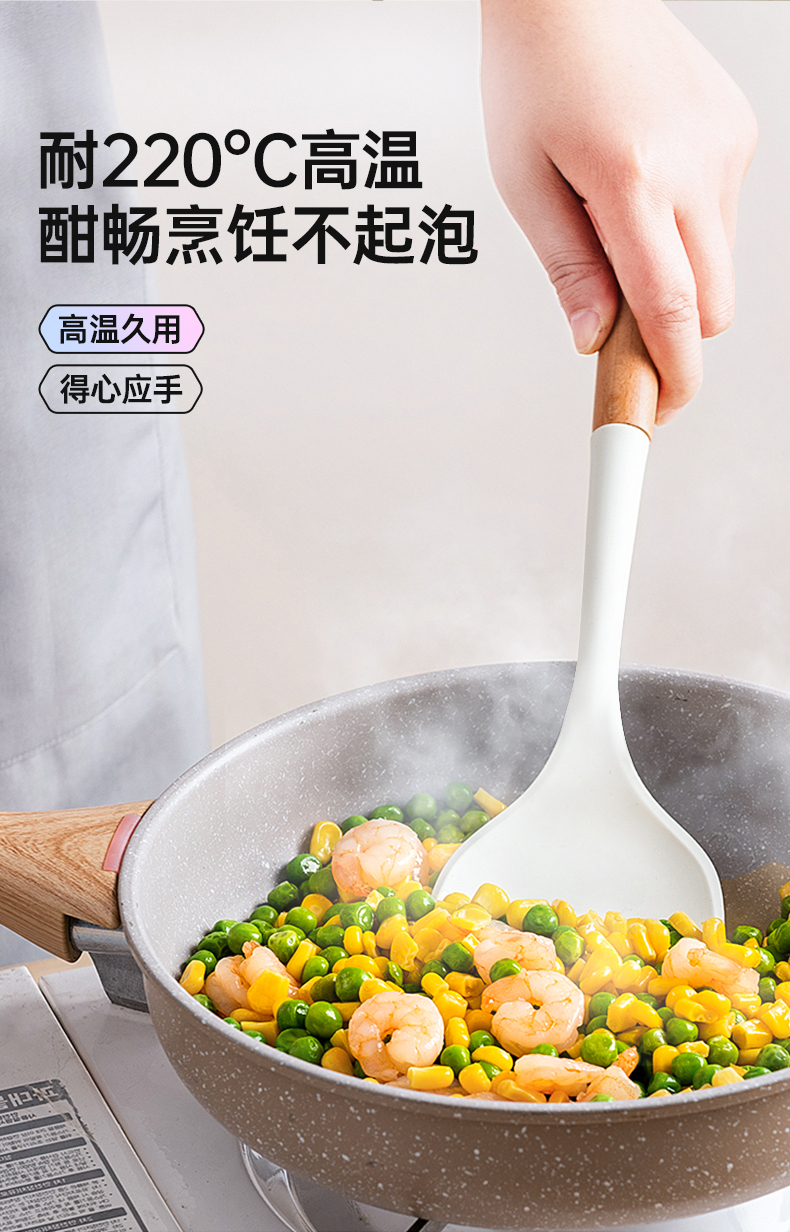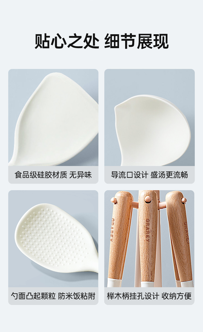 Grarey 格瑞亚 硅胶三件套 饭勺锅铲汤勺 榉木手柄 食品级可接触材质