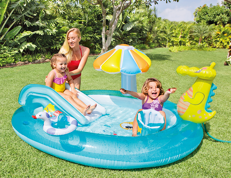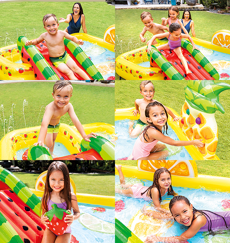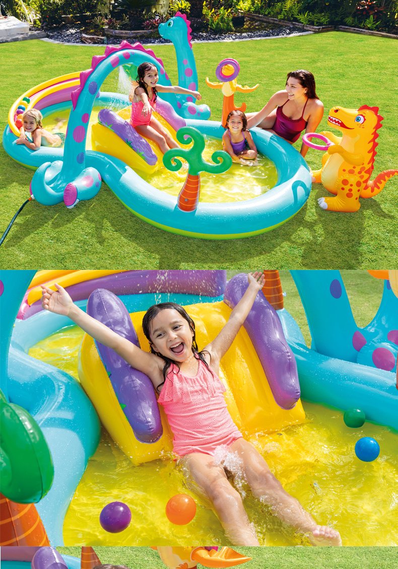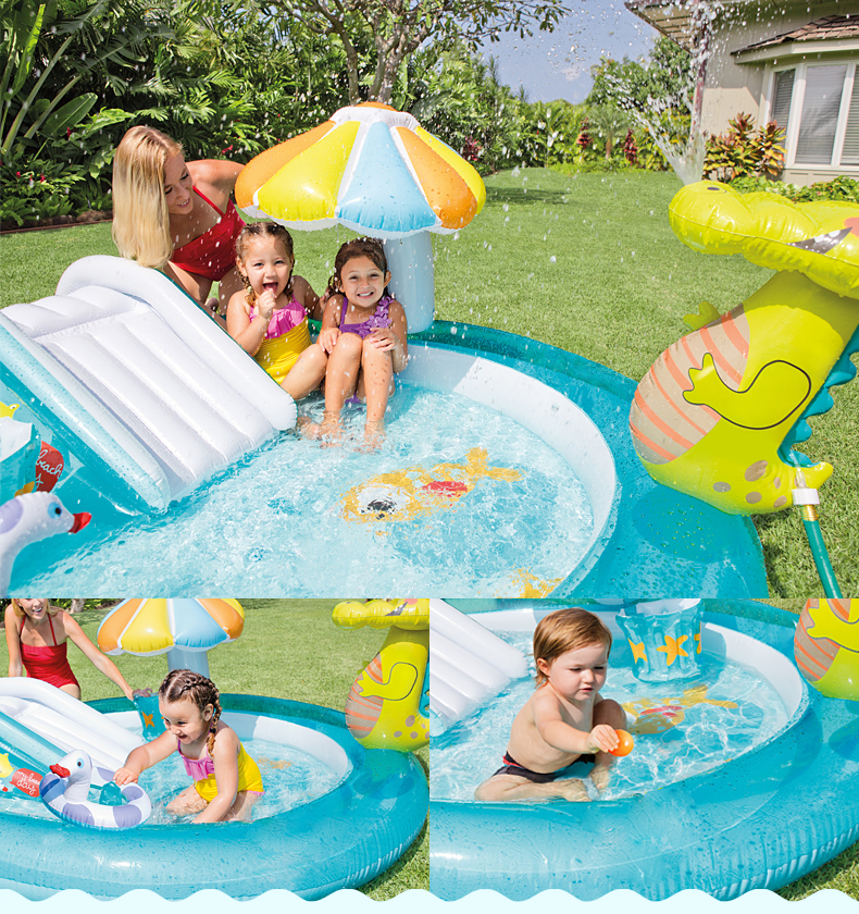 【可喷水的欢乐戏水池】INTEX儿童充气游泳池 户外大型号 海洋球池