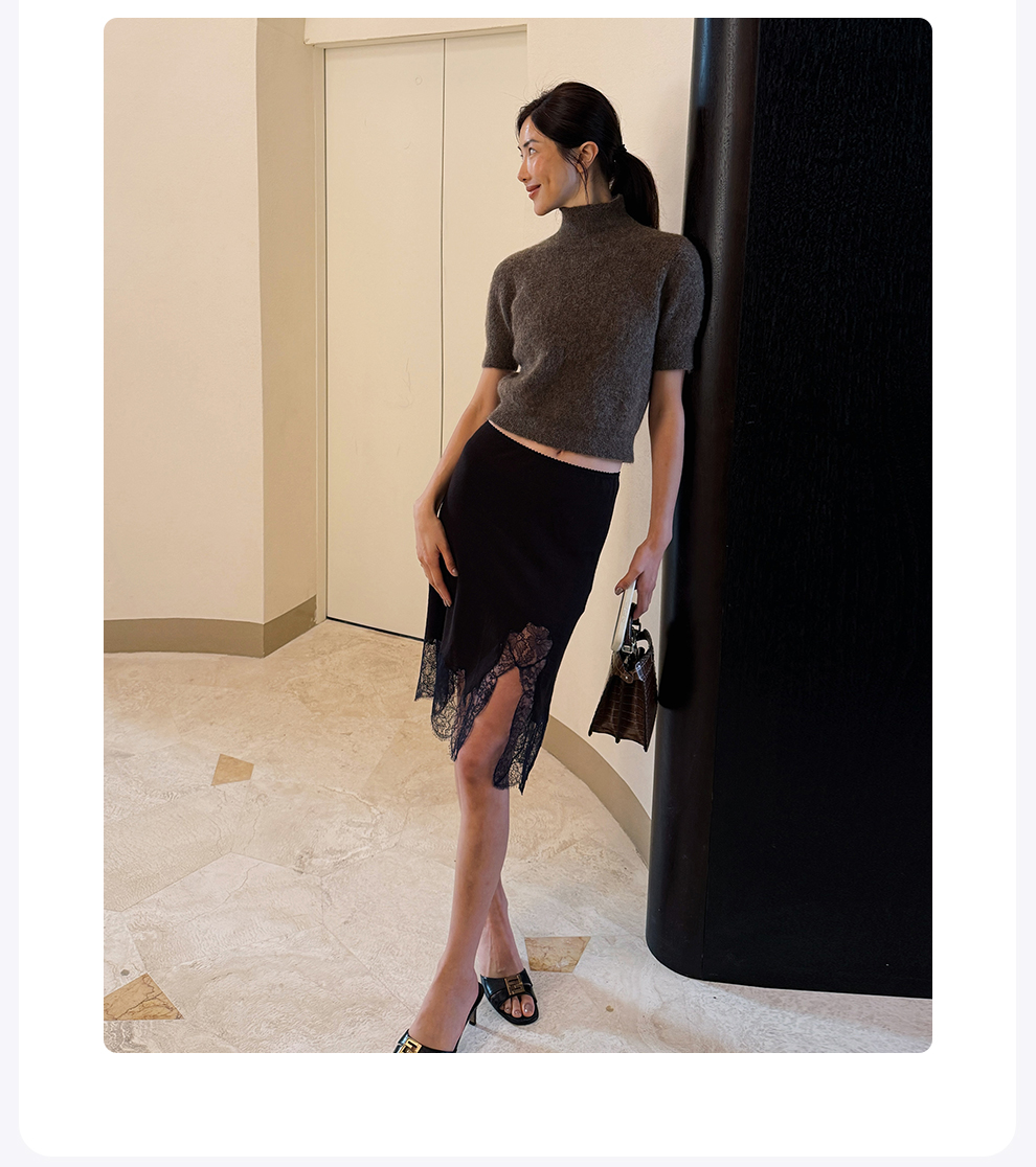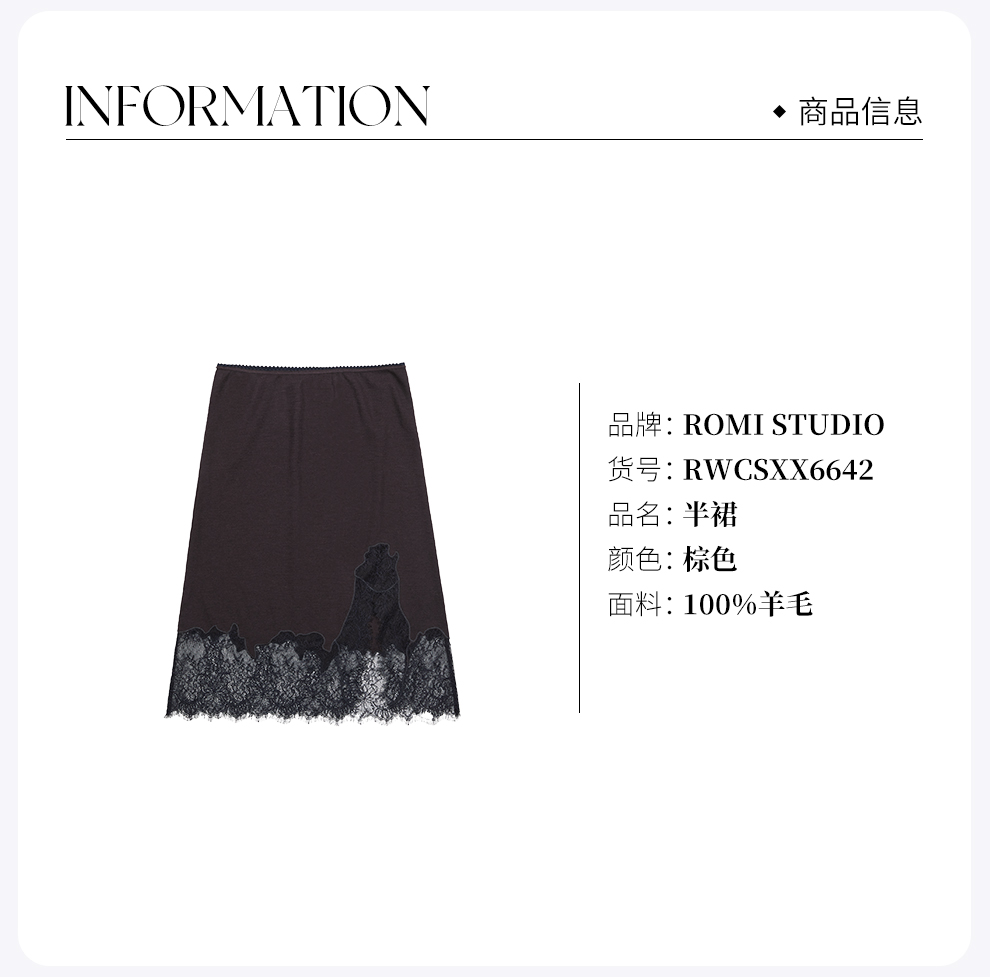 ROMI STUDIO“超细羊毛纱”纯手工刺绣蕾丝小开叉半身裙RWCSXX6642