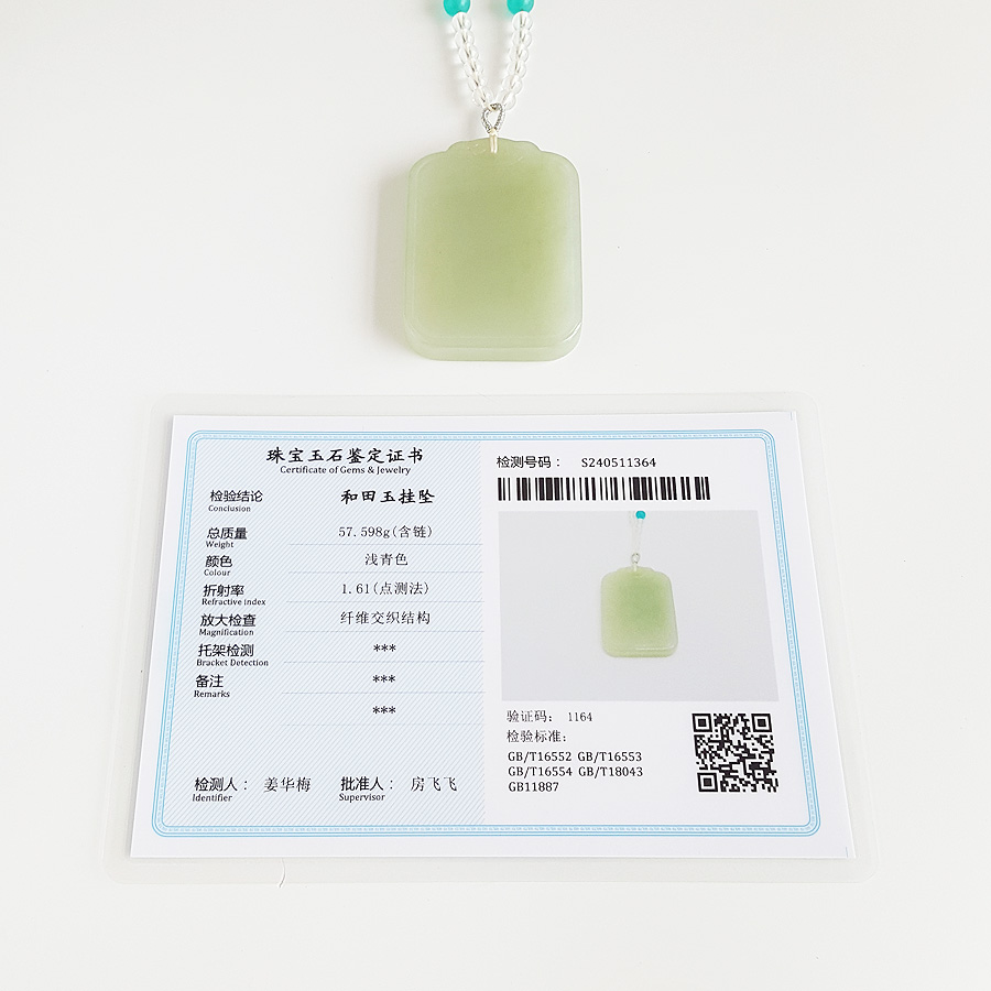 【天然正品】天然青海料平安无事牌和田玉(吉祥、如意)吊坠项链现售价:980!特价 230524NJ18
