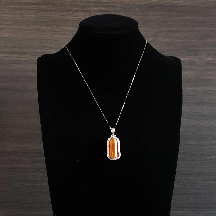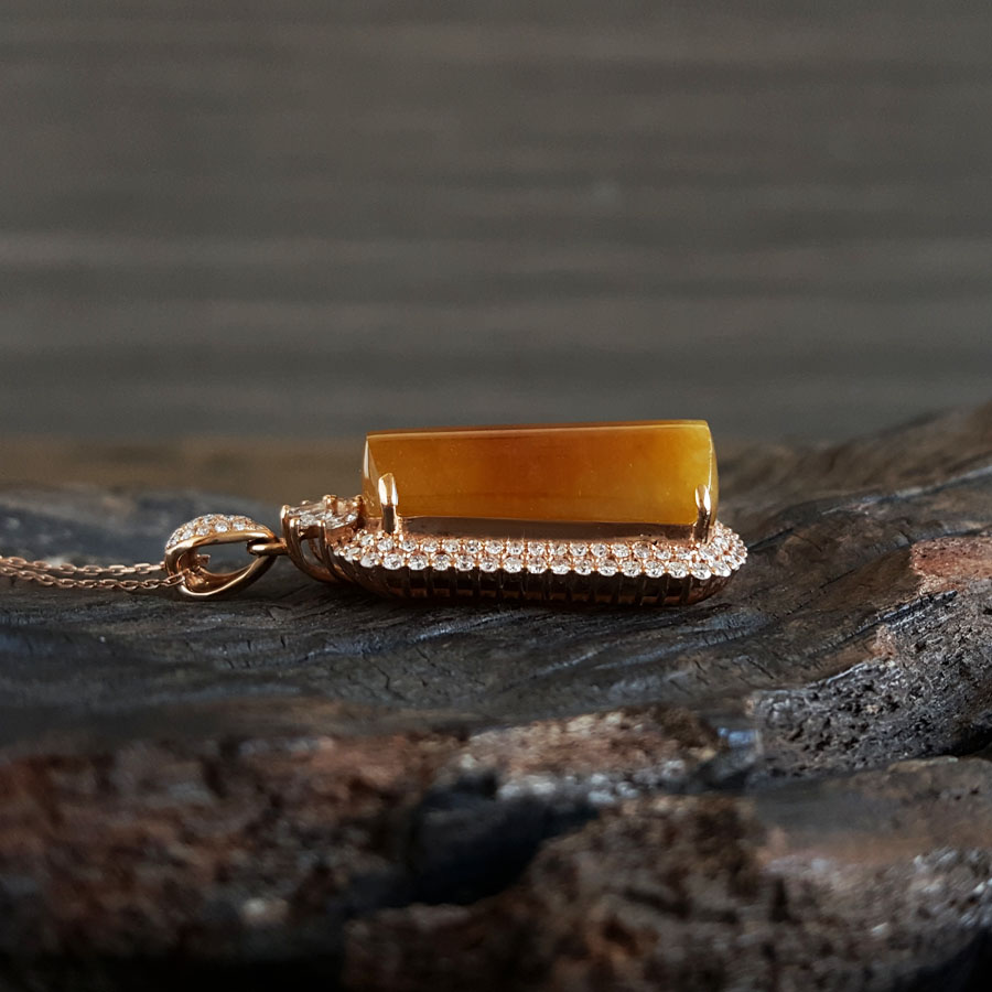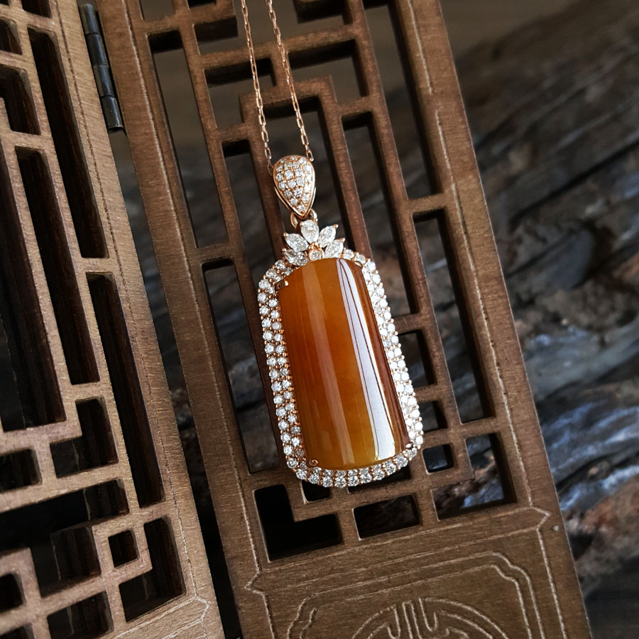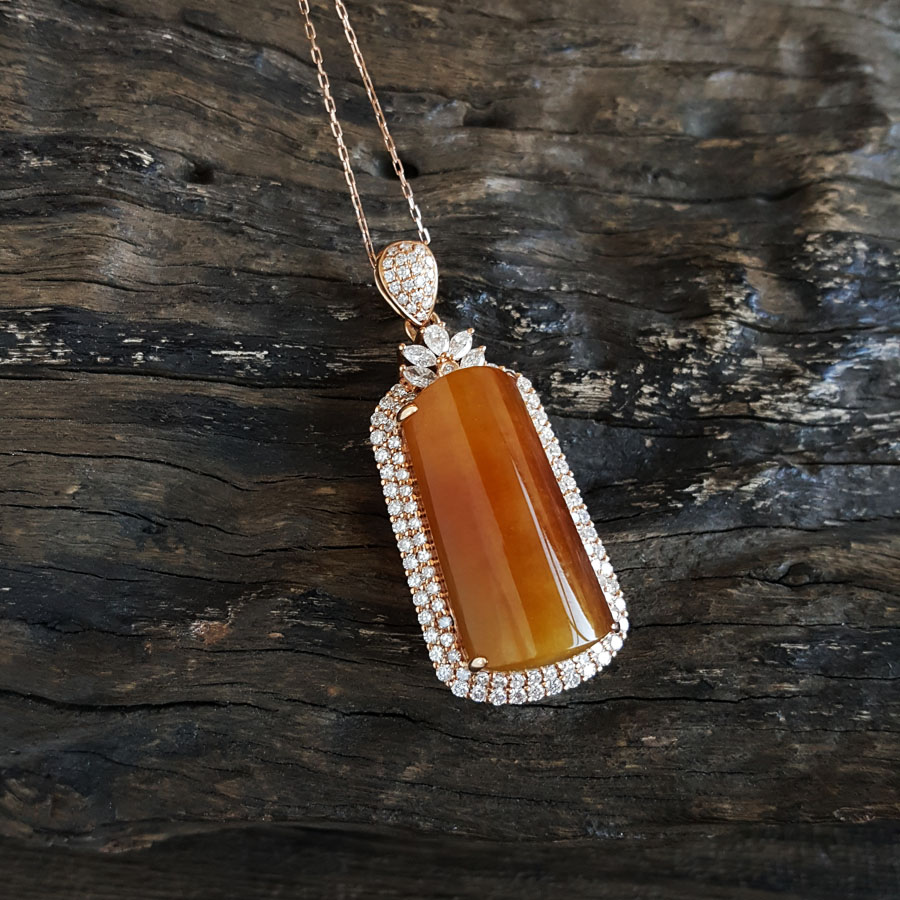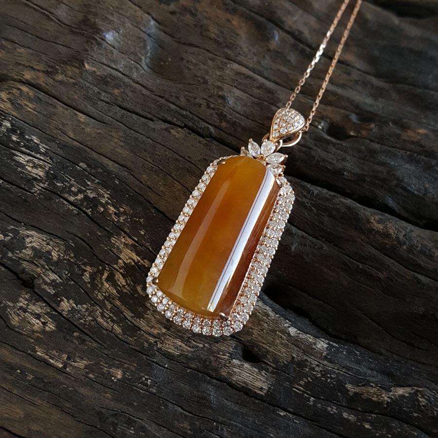 名称 | AU750收藏级玫瑰金豪镶钻镶天然糯种平安无事牌黄翡吊坠项链 |