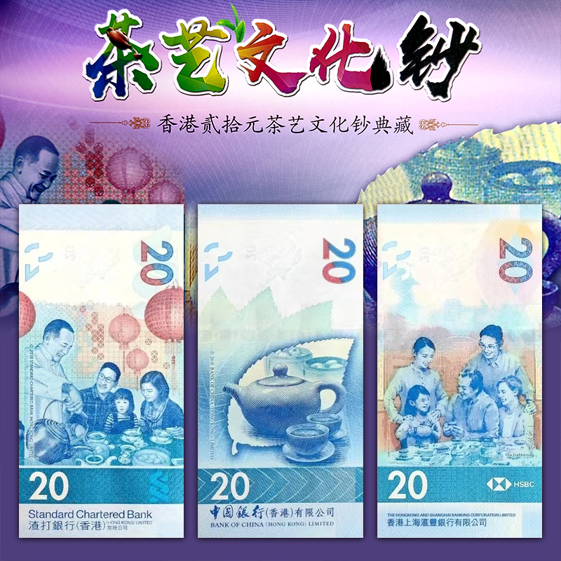 香港“茶艺”文化艺术钞 面值20 一套3张带册