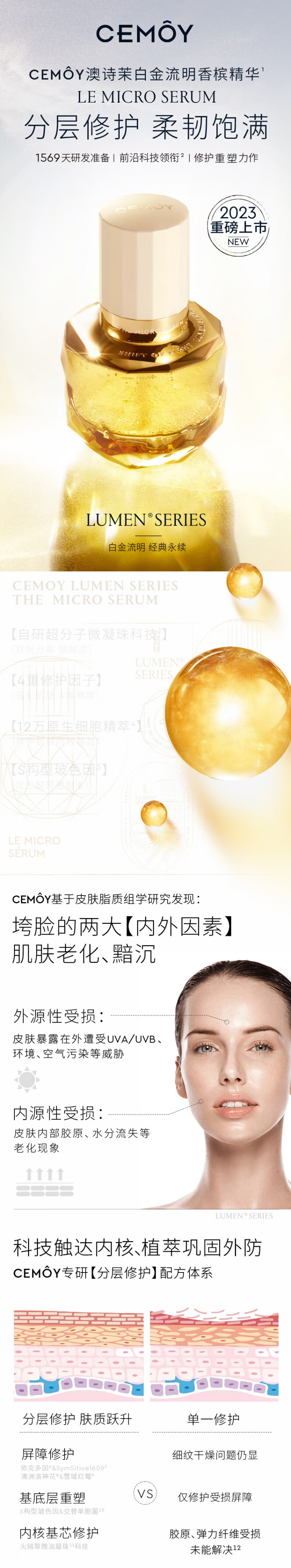 澳诗茉CEMOY白金流明系列璀璨微凝珠修护精华露33ml