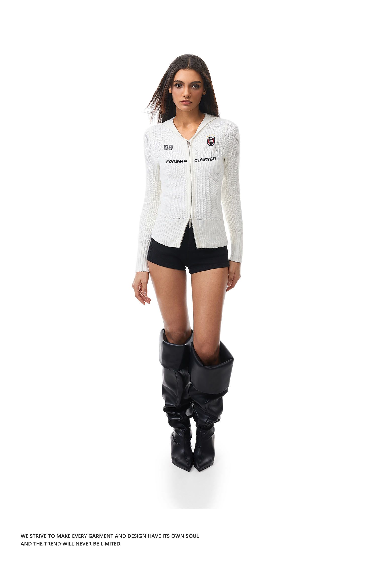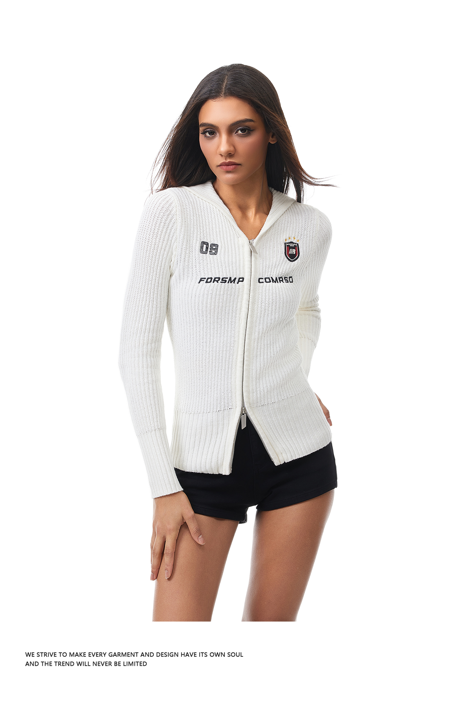 FDR官方店 辣妹修身徽章毛衣女秋季复古运动连帽针织衫开衫上衣