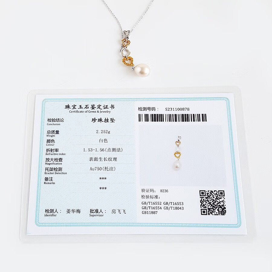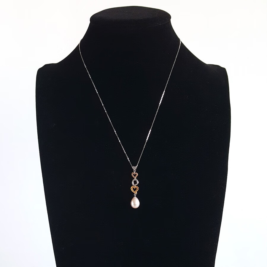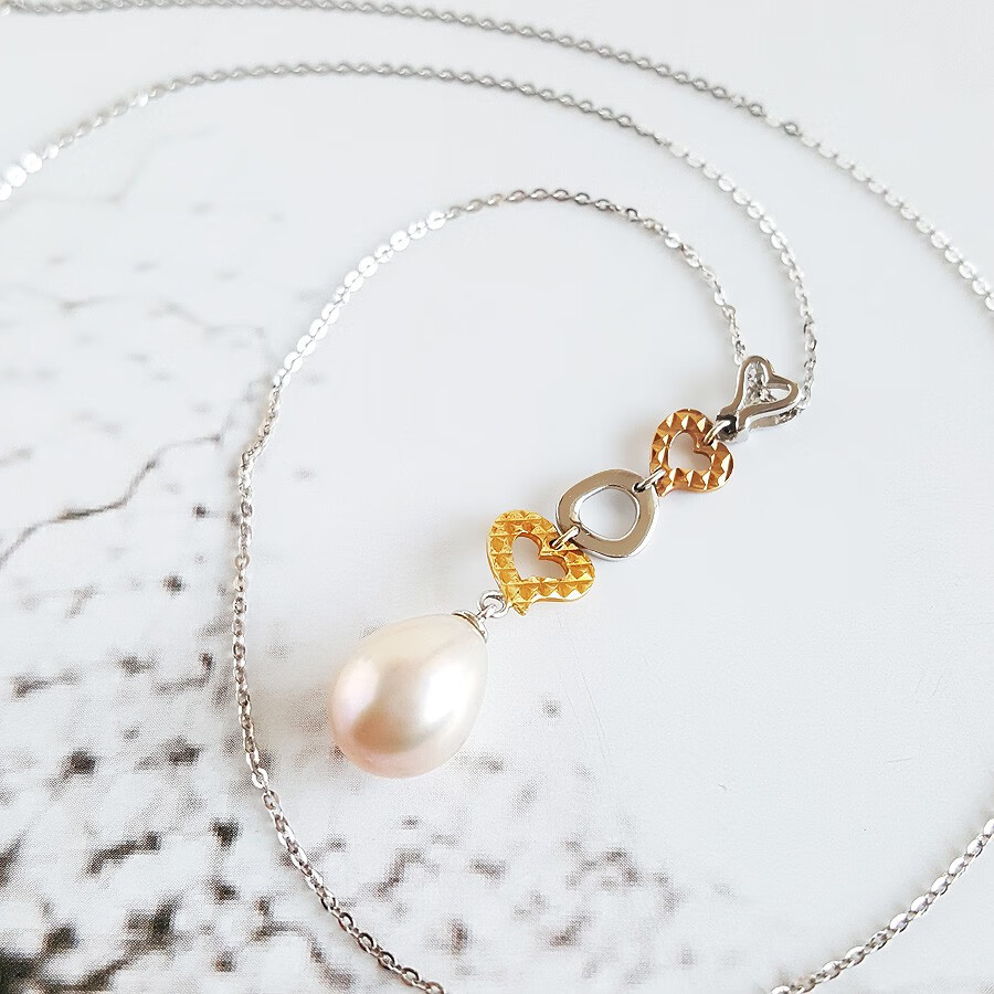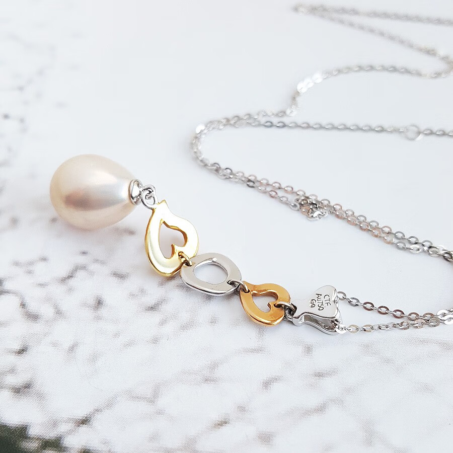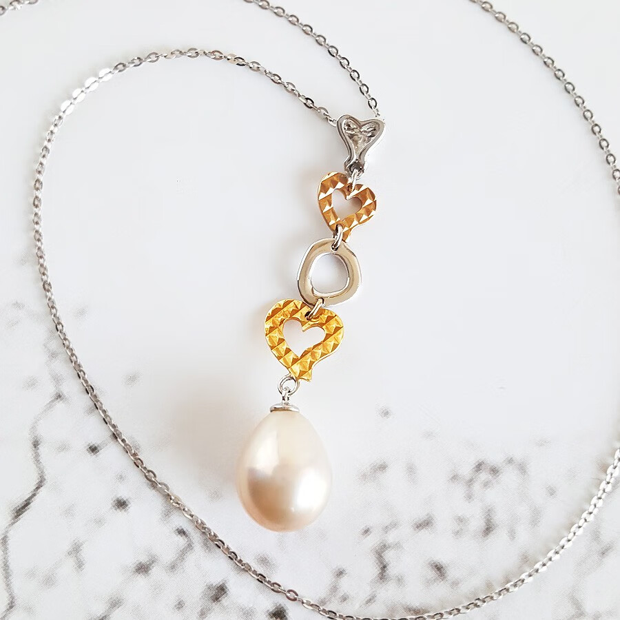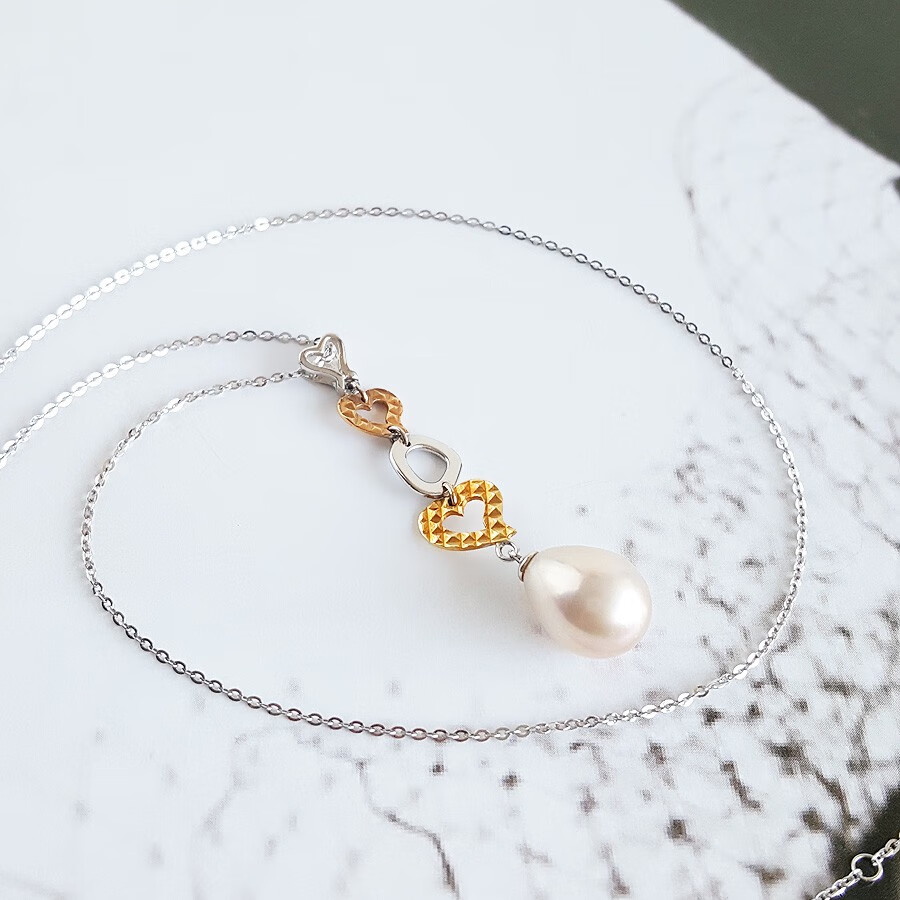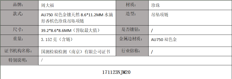 【天然正品】周大福AU750双色金镶天然8.6*11.2MM水滴形香槟色珍珠吊坠项链39.2*8.6*8.6MM(皆取最大值)现售价:1280!171123NJM20