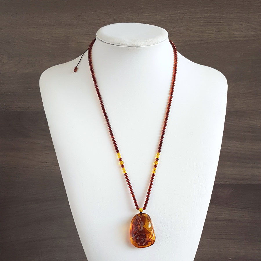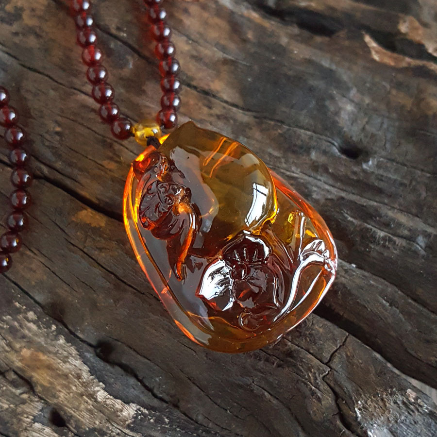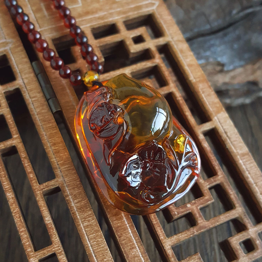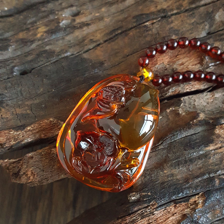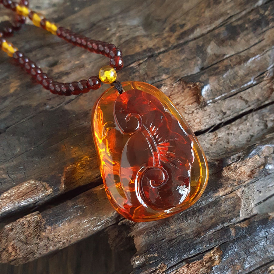 名称 | 天然无杂裂灵芝如意(福寿安康、吉祥如意)墨西哥蓝珀吊坠项链 |