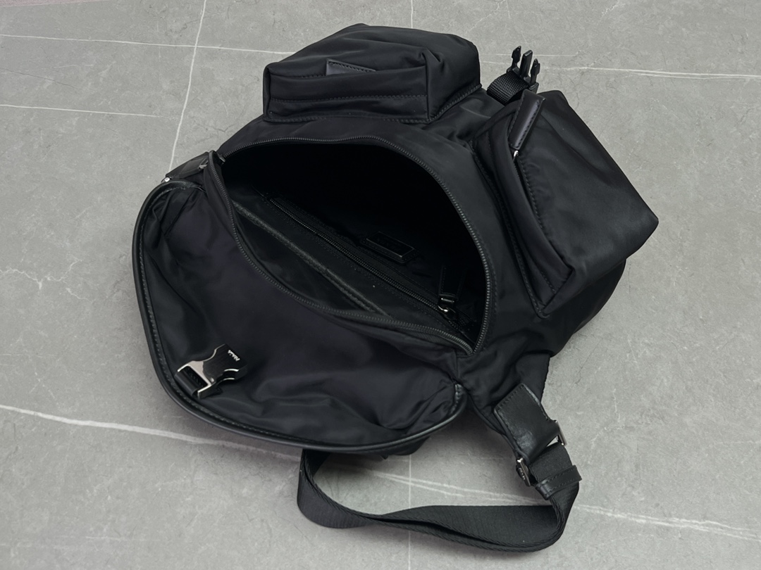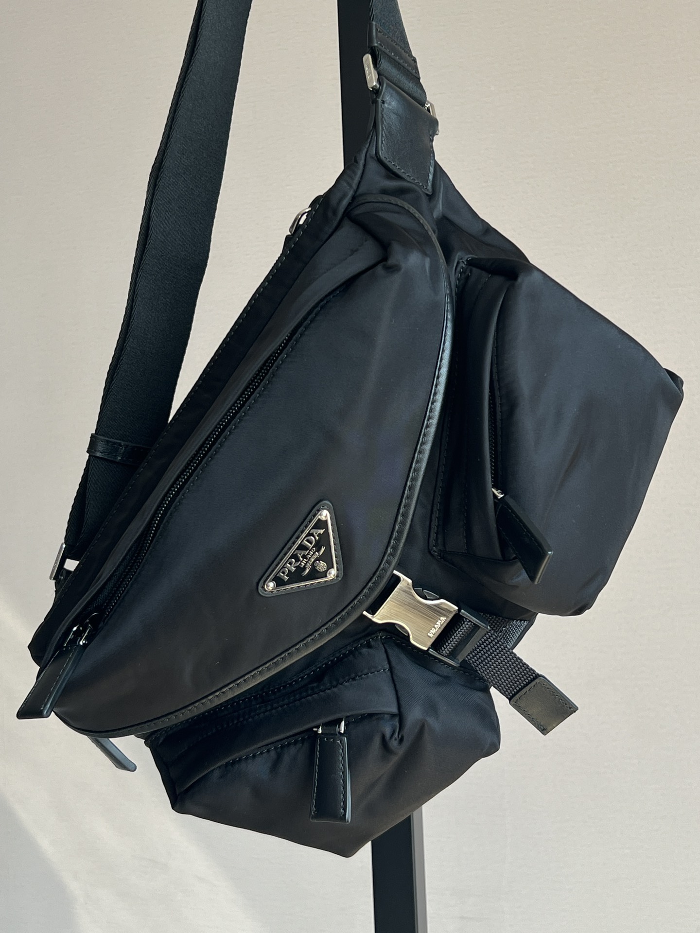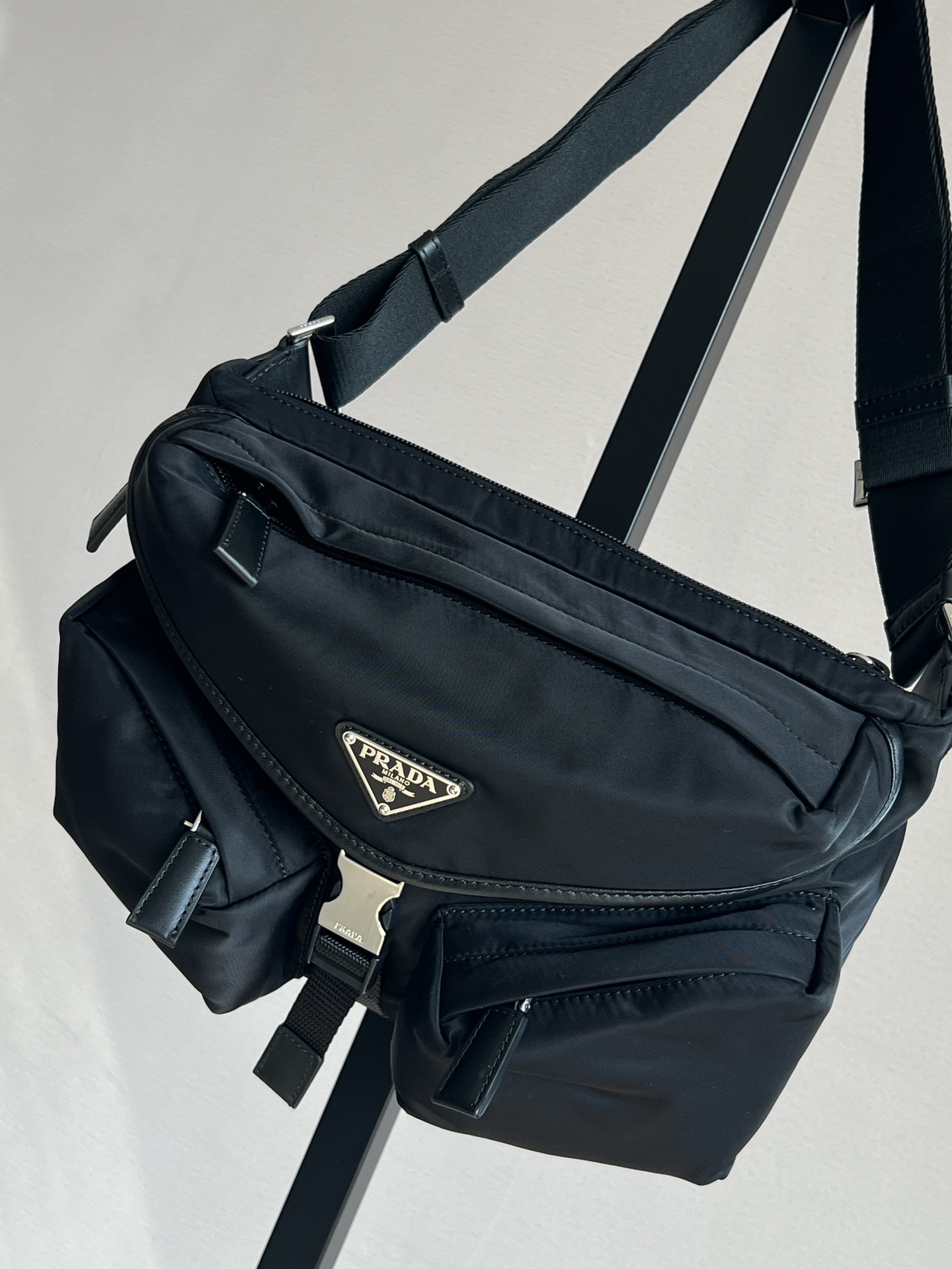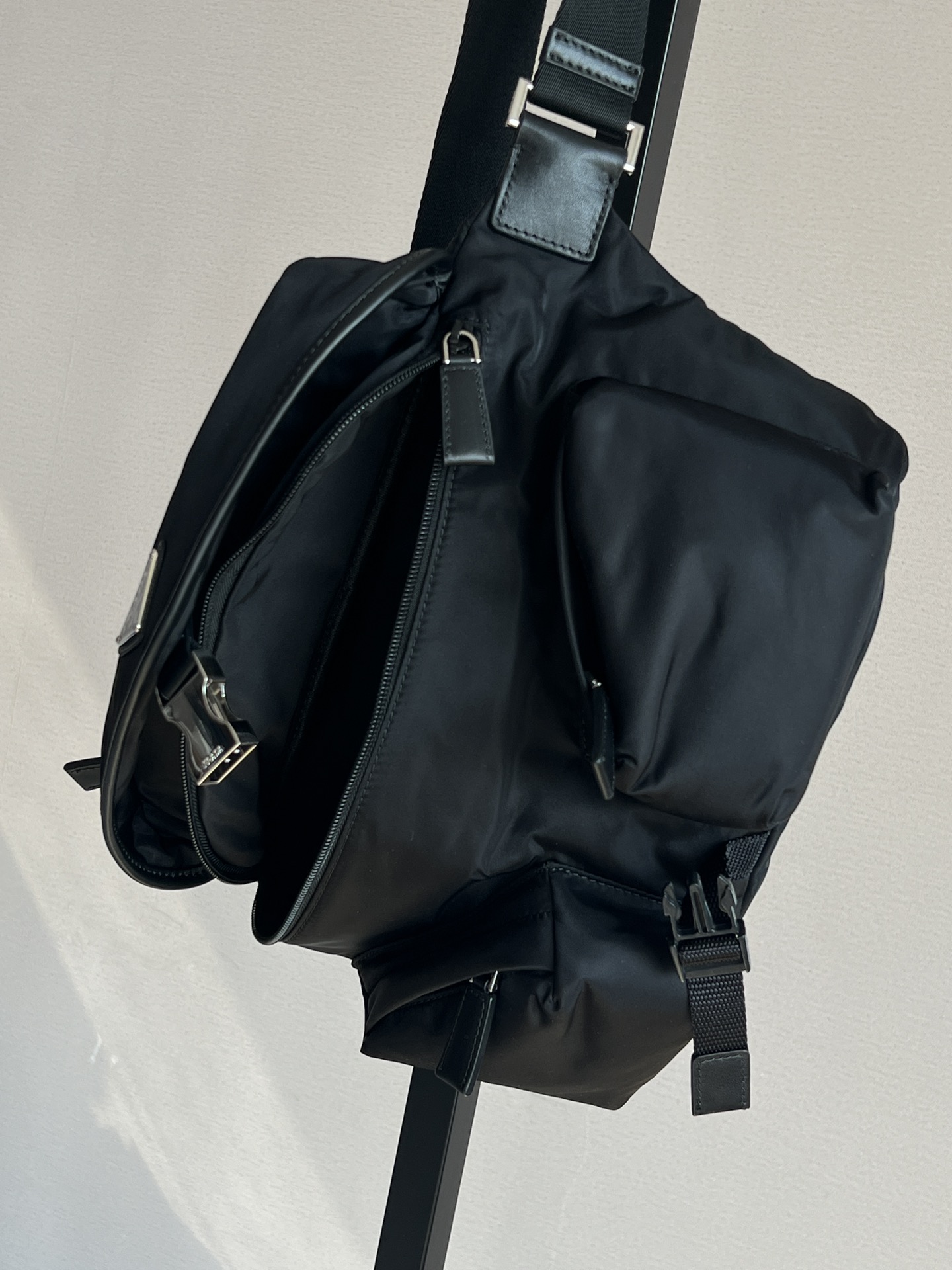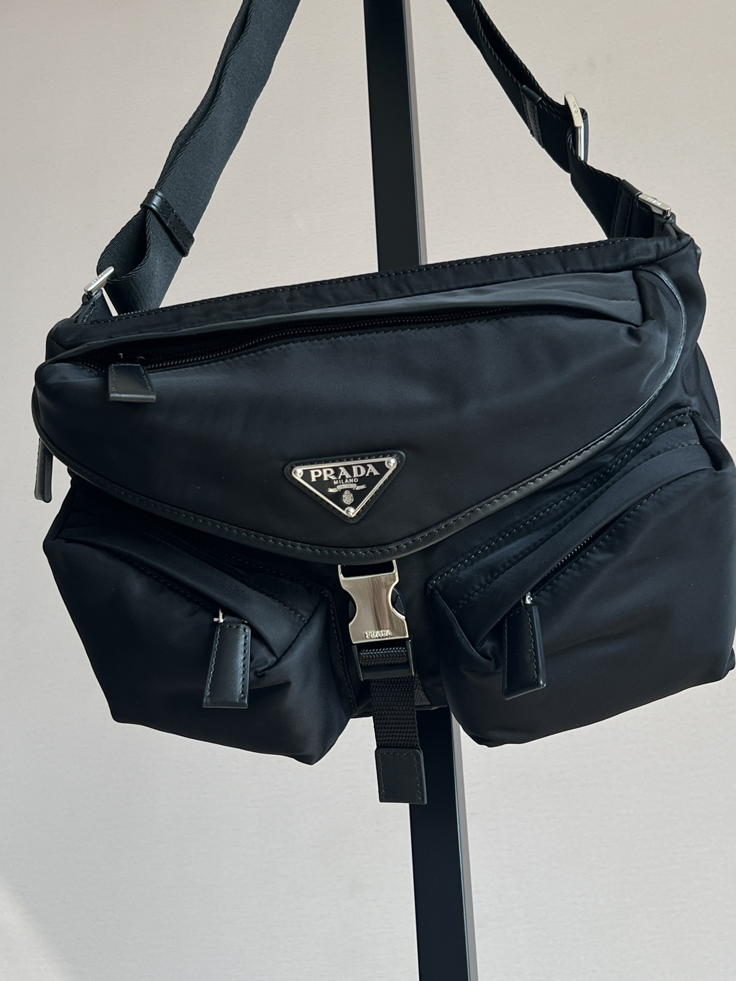 P家24ss机能风秀款单肩、斜挎包 采用进口尼龙面料,顶级五金。前幅2个拉链口袋设计,翻盖插扣,配有可调节的长肩带。容量空间大,格层多。又实用又大气,赶紧入手吧,又是一款永不过时爆款!配防尘袋发货
