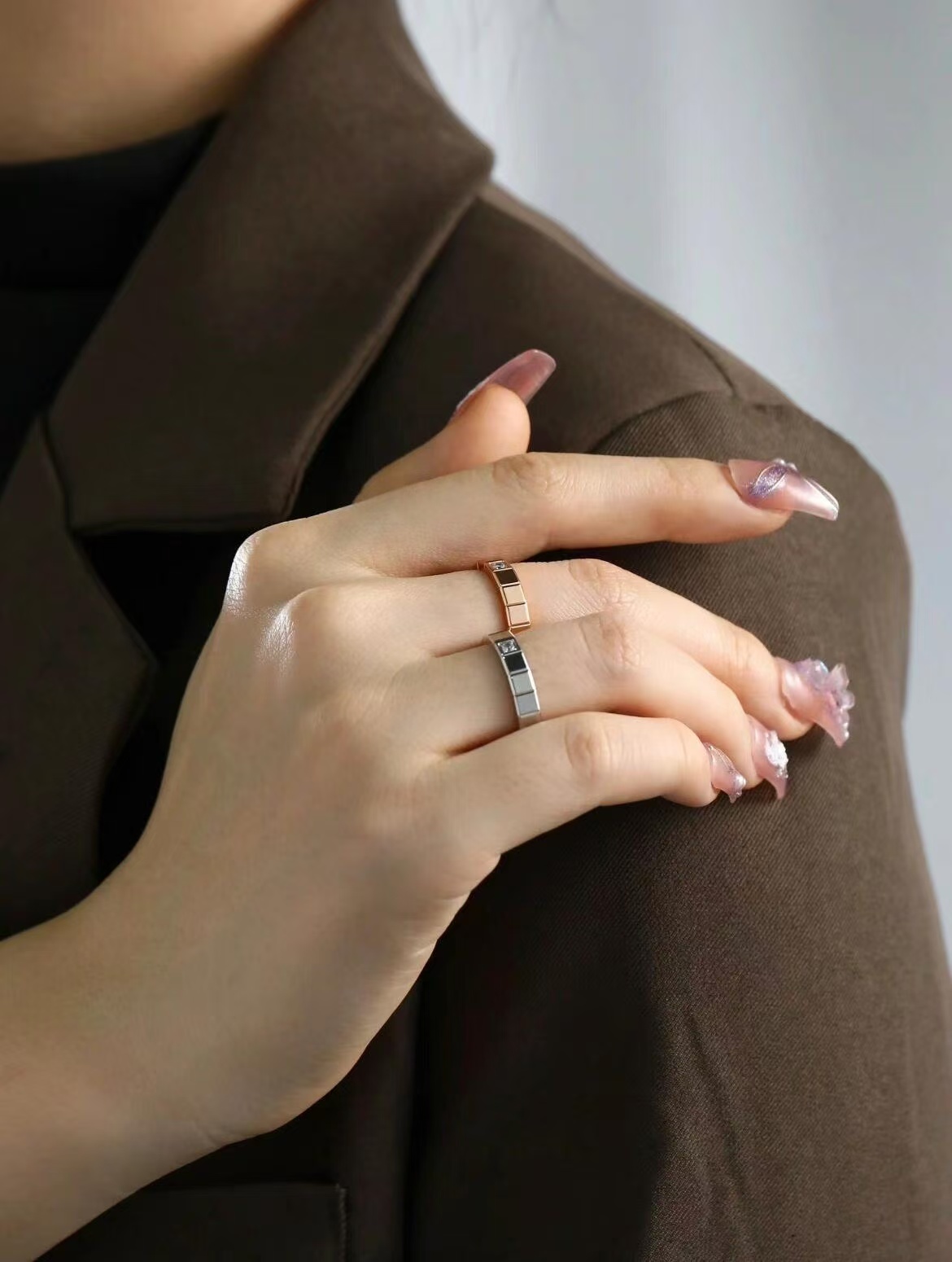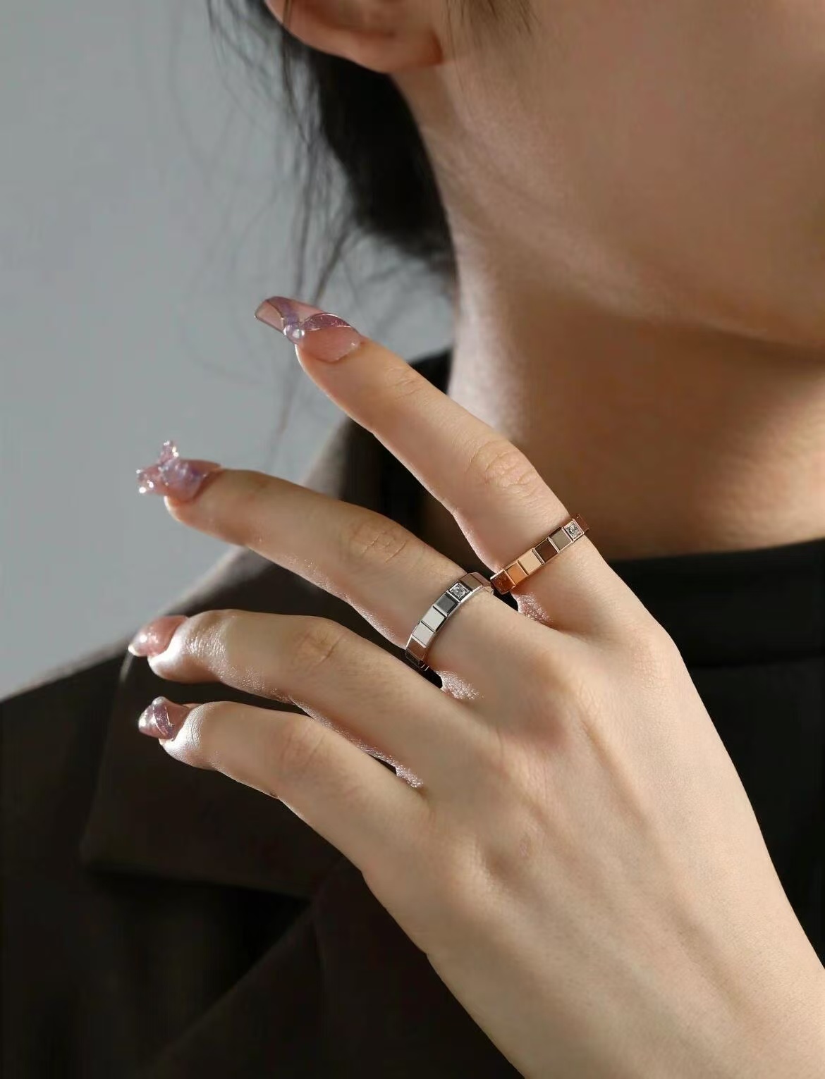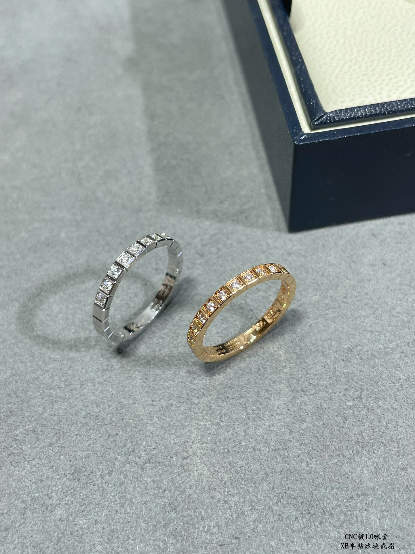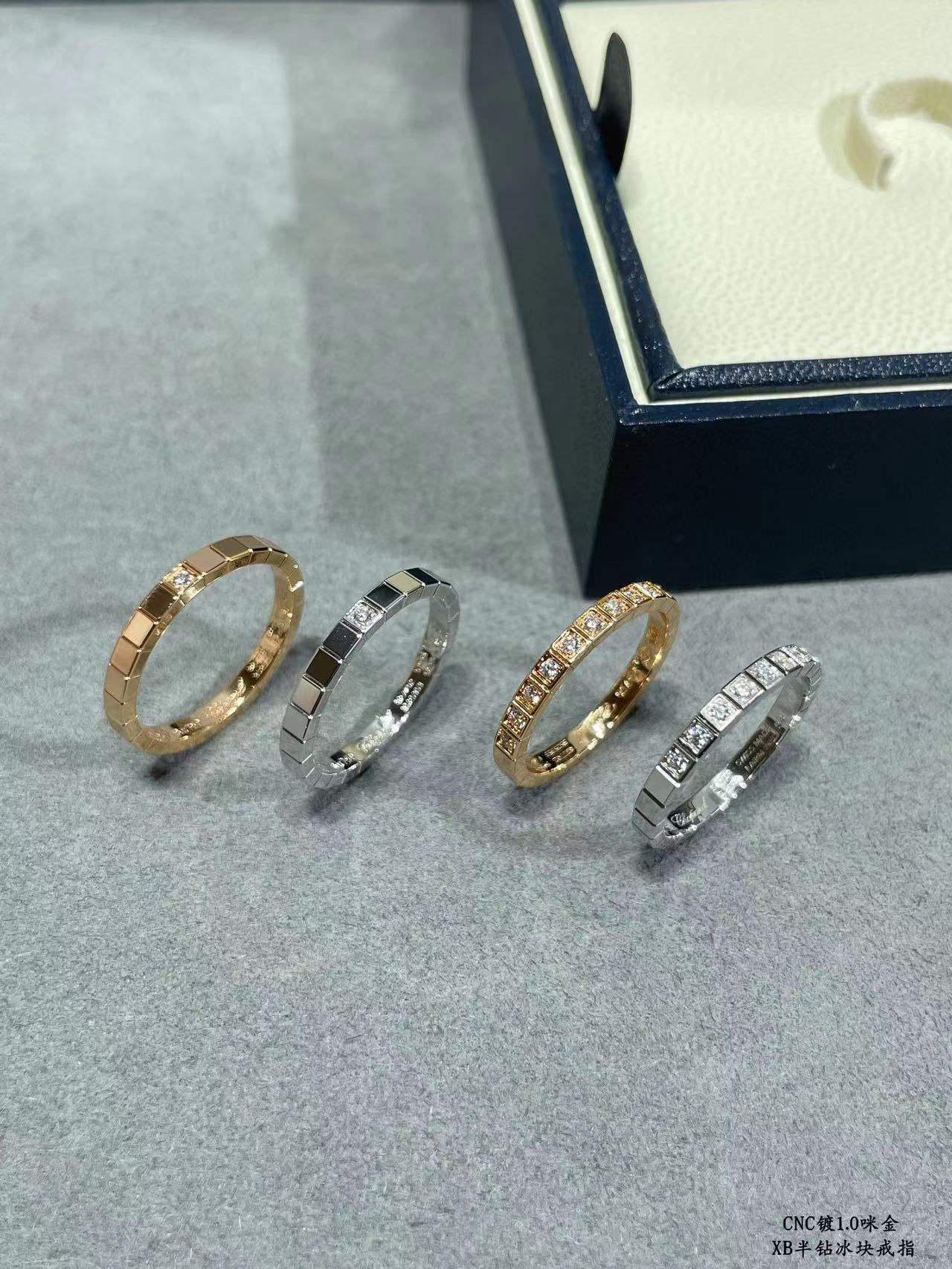 V金镀咪金 肖邦半钻冰块戒指,码数5678。