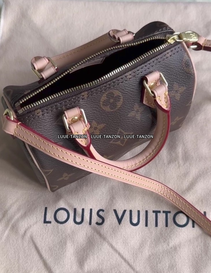 老花进口原厂面料和欧洲进口原厂五金一直都是我们的核心,这款Speedy25枕头包是采用铜和钢两种材质的五金