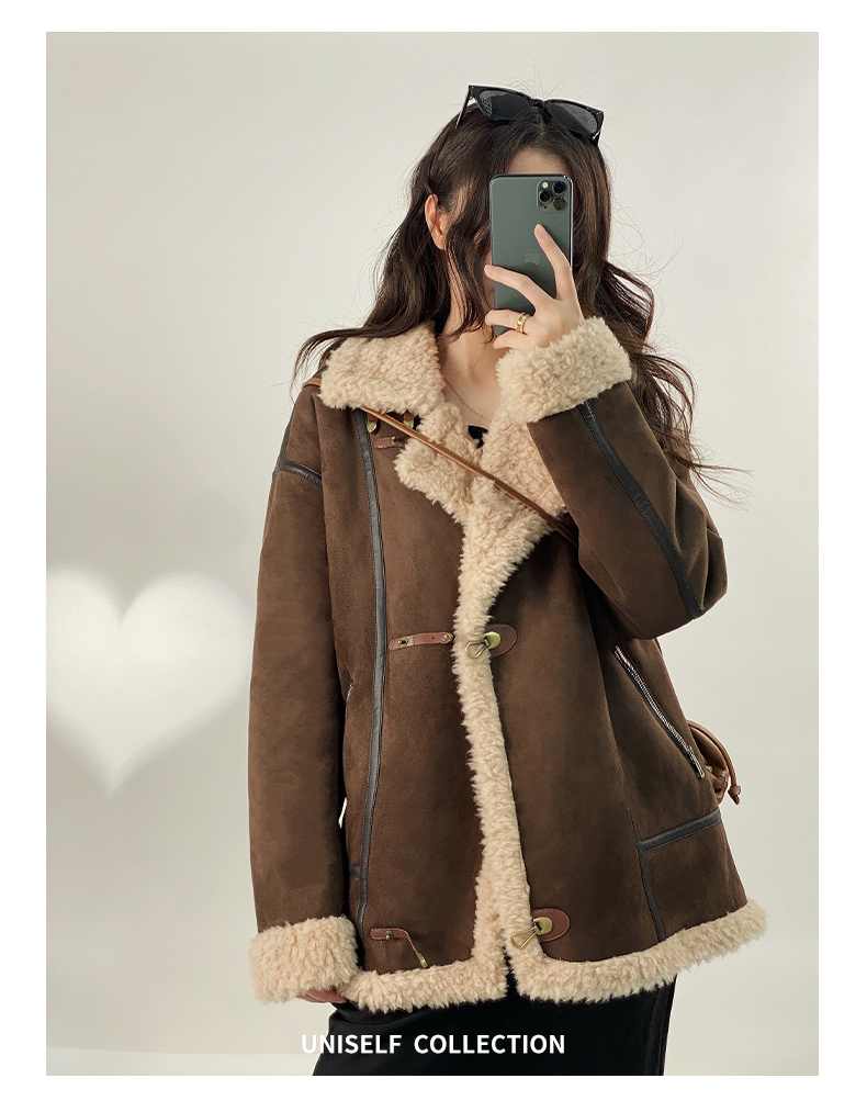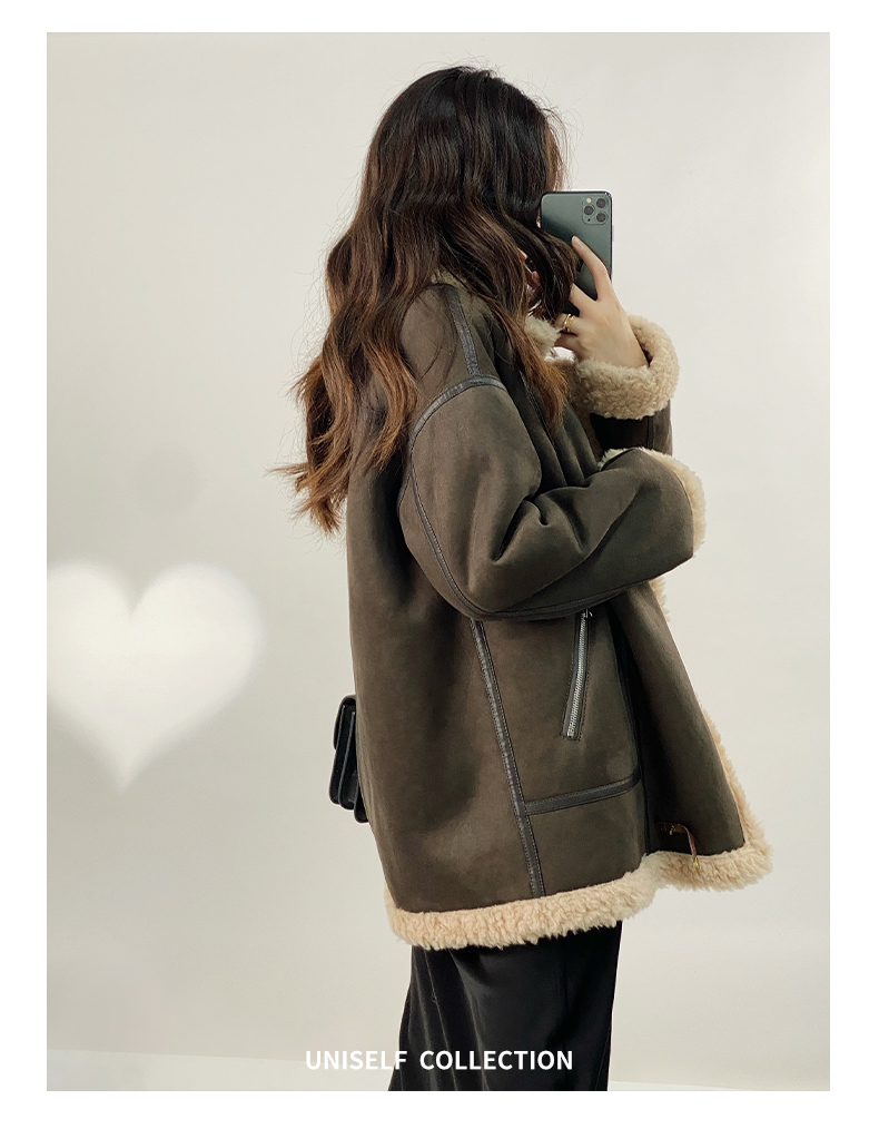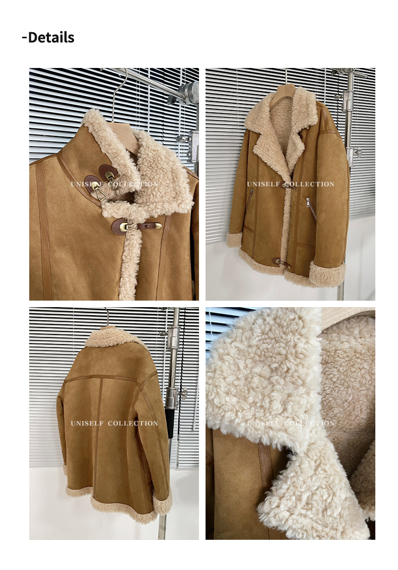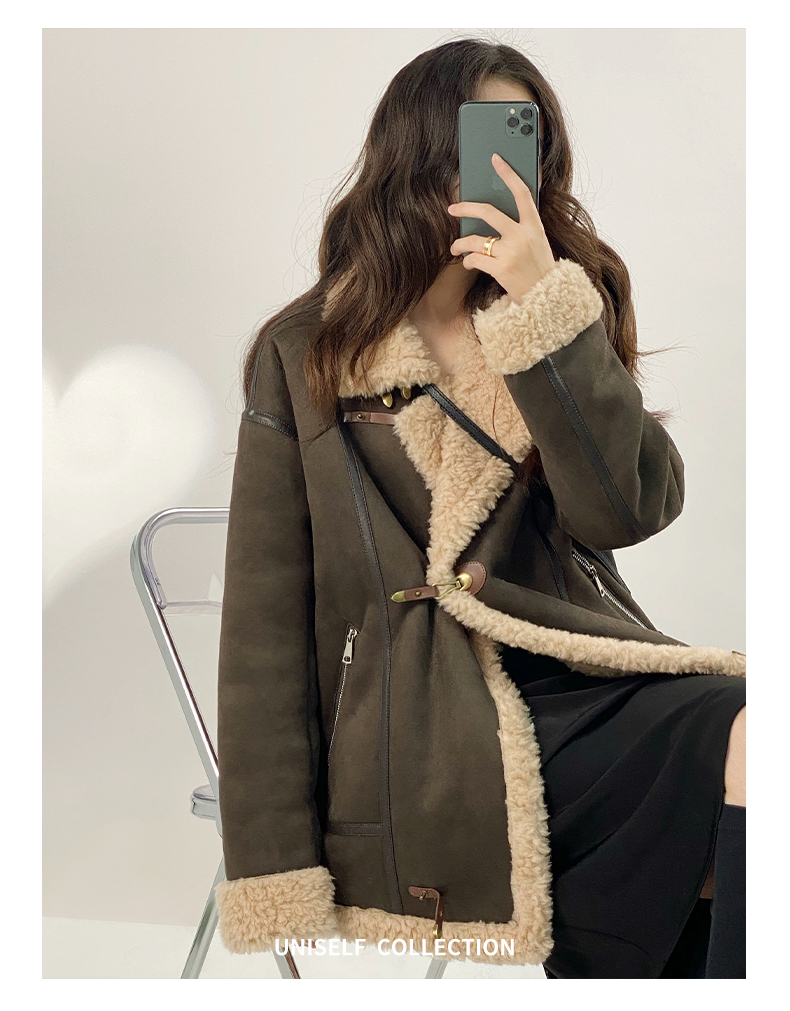 YX【定制10天】设计感皮毛一体外套女2022冬季新款韩版时尚休闲加厚羊毛皮草大衣