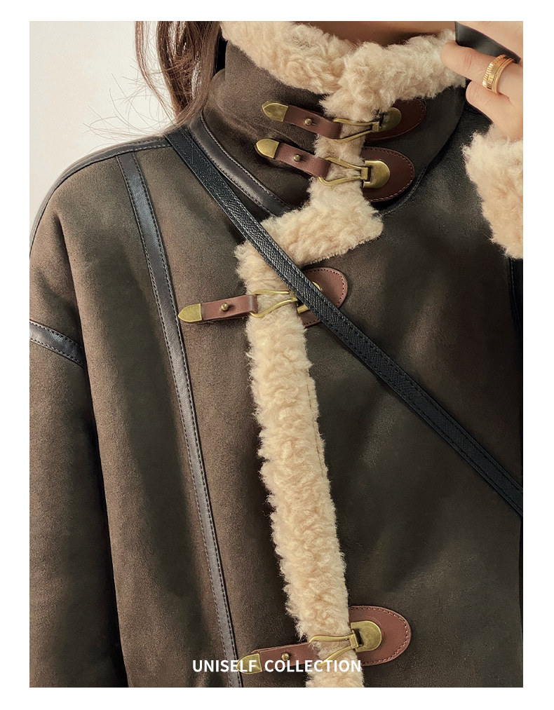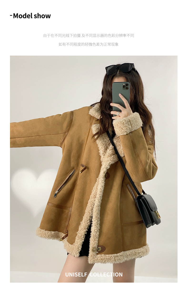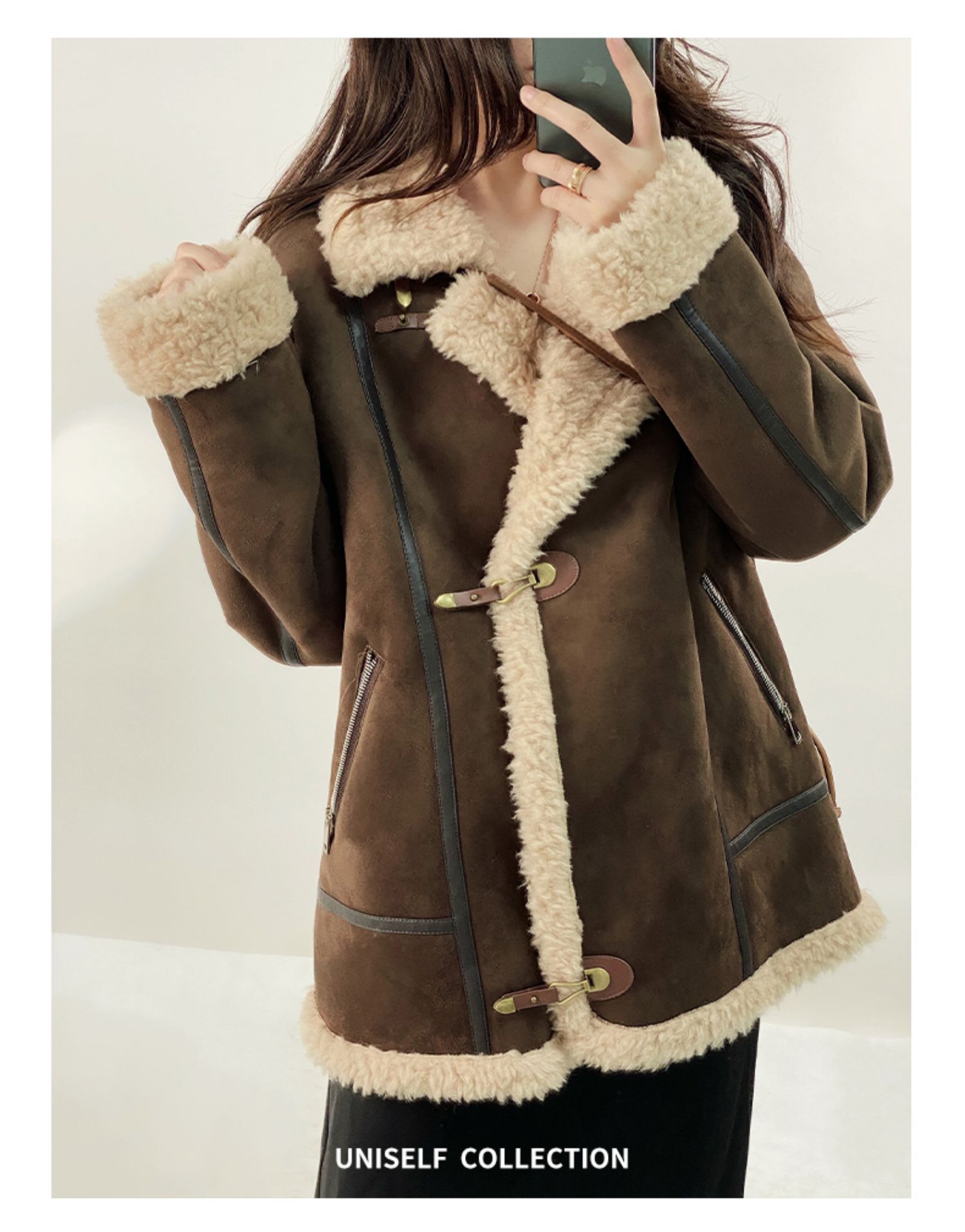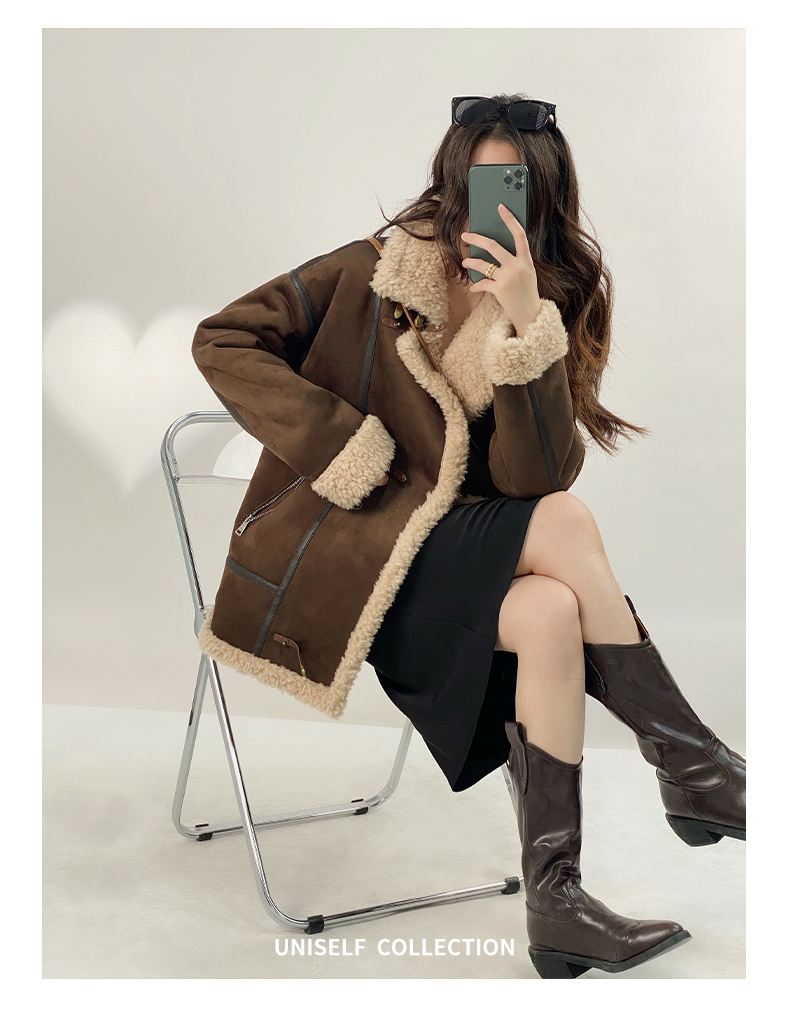 YX【定制10天】设计感皮毛一体外套女2022冬季新款韩版时尚休闲加厚羊毛皮草大衣
