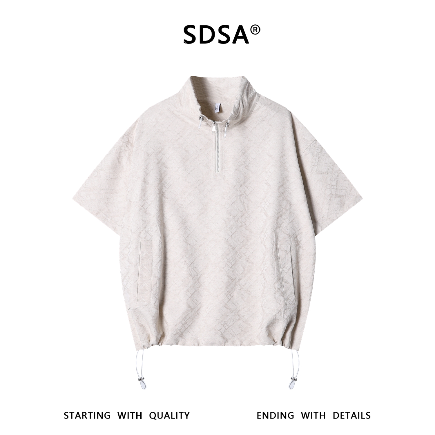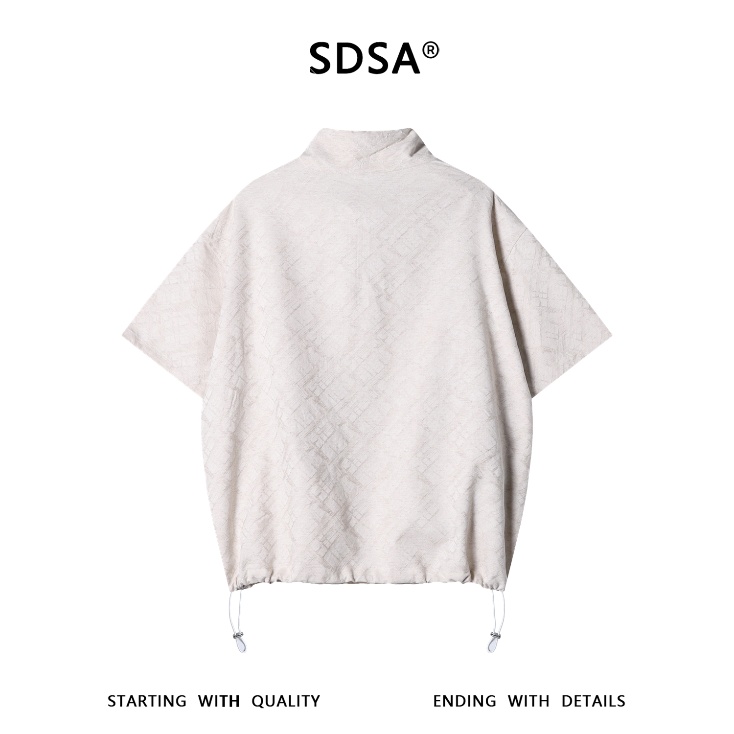 SDSA男装2026新款提花格纹半拉链立领短袖T恤下摆抽绳设计百搭
