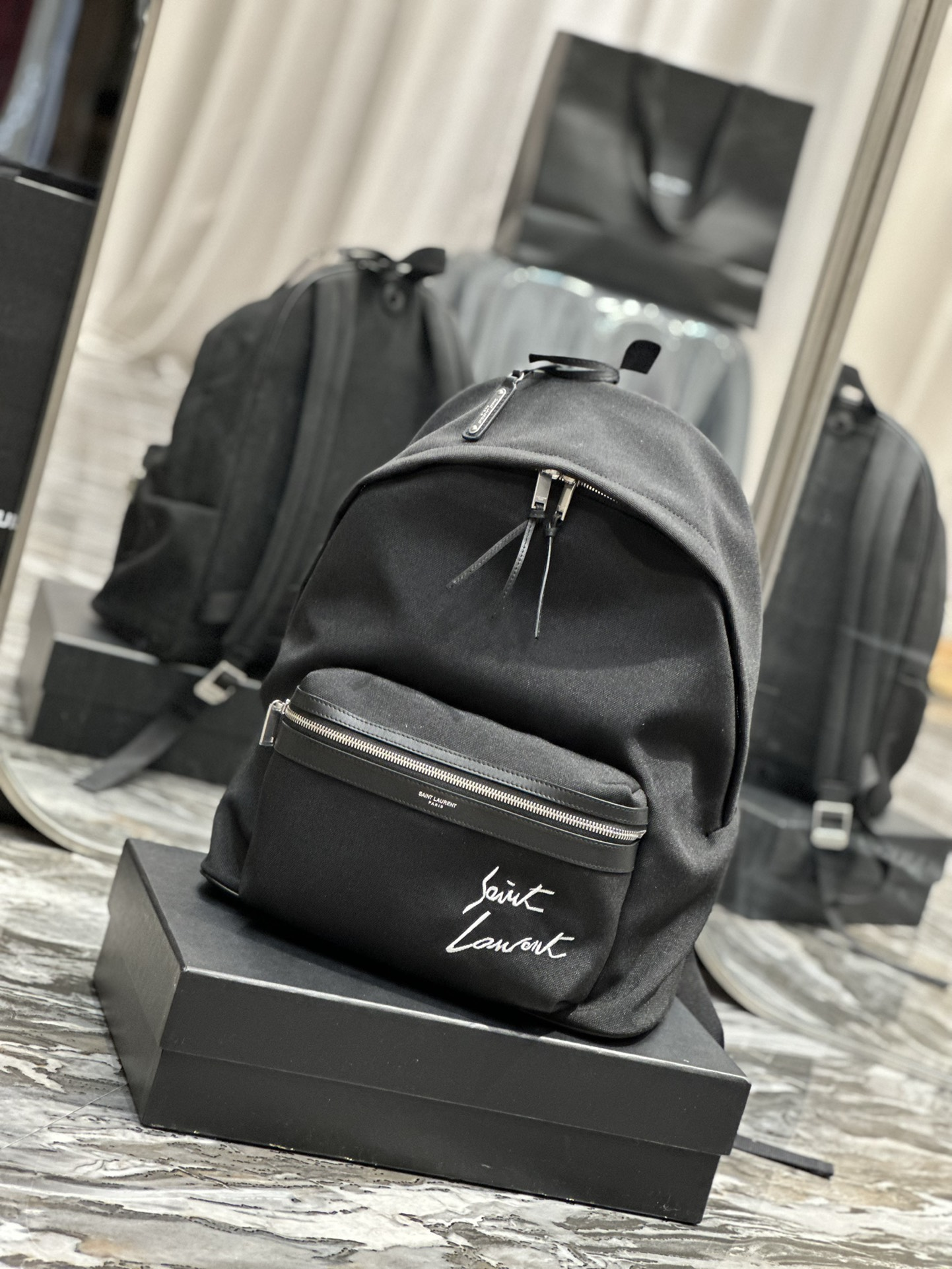 圣罗兰 双肩包到了_带刺绣字母款
