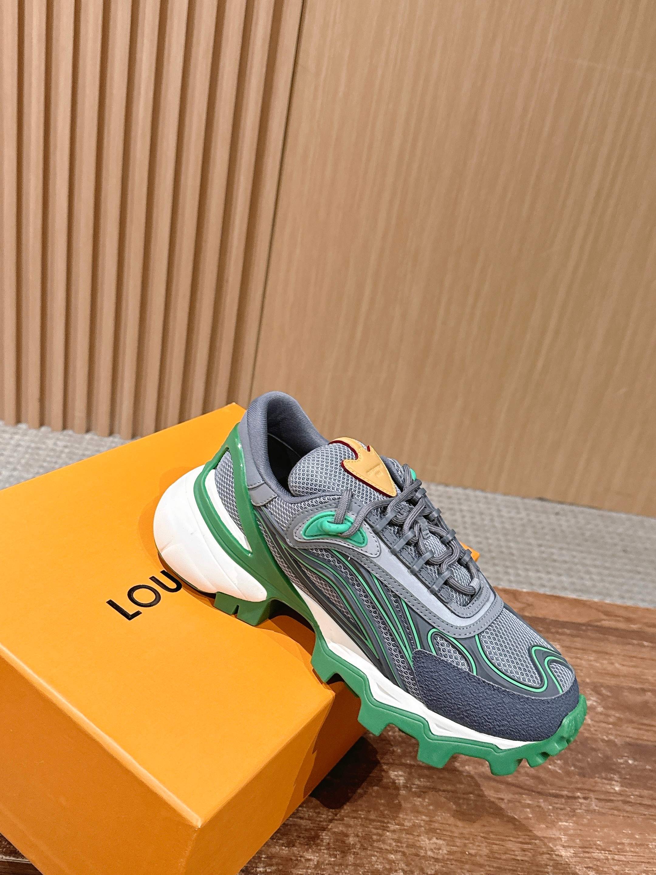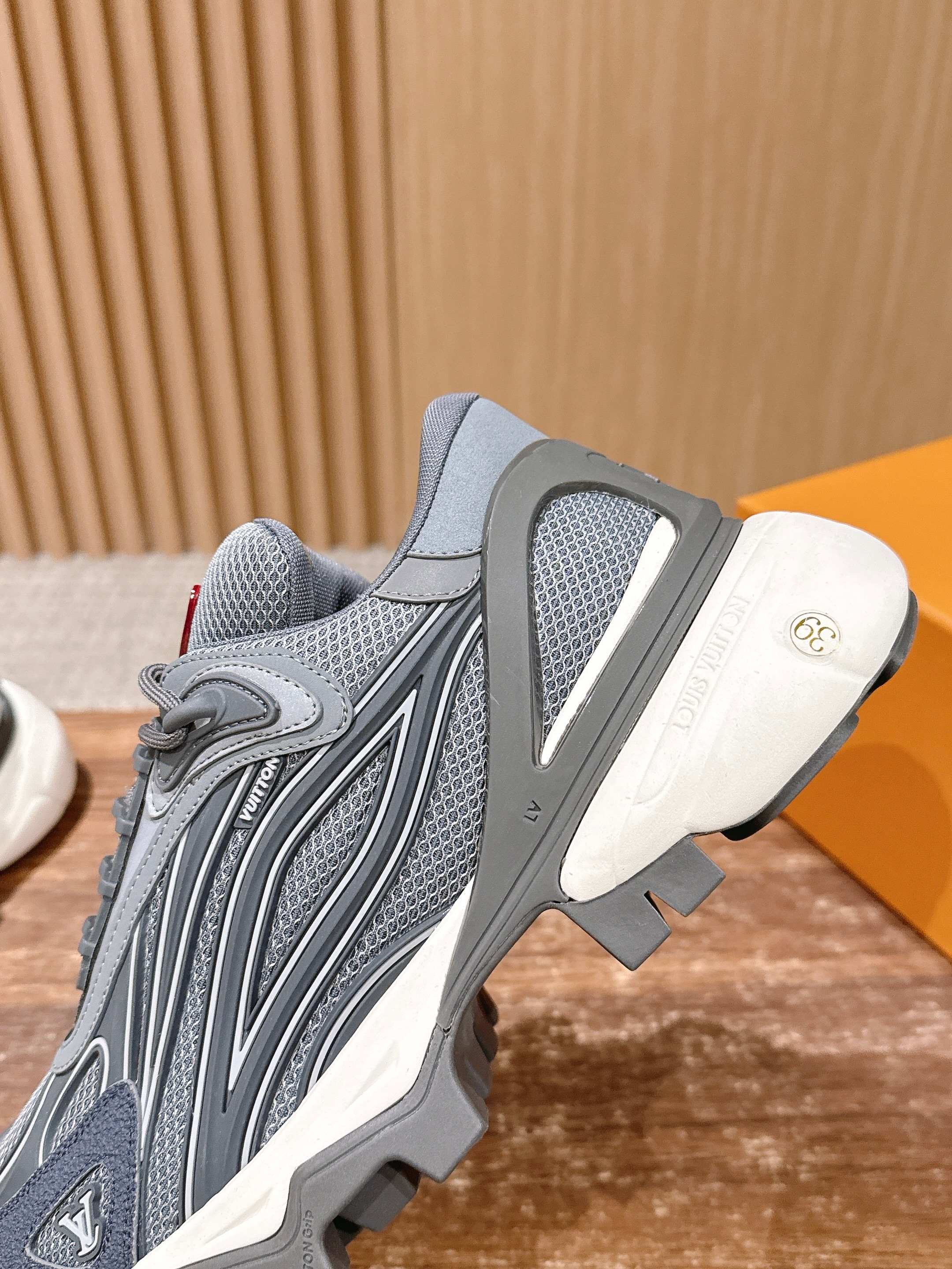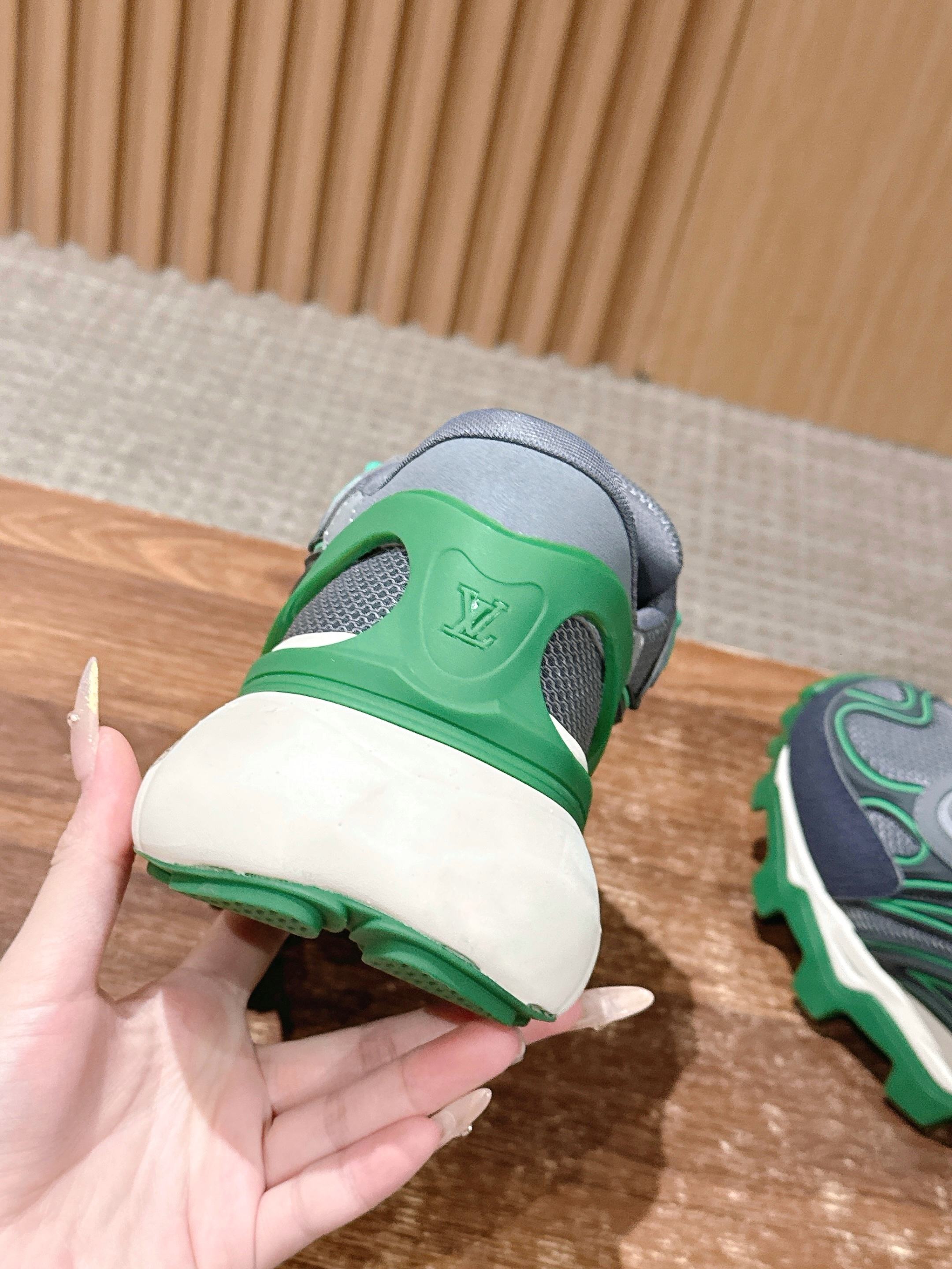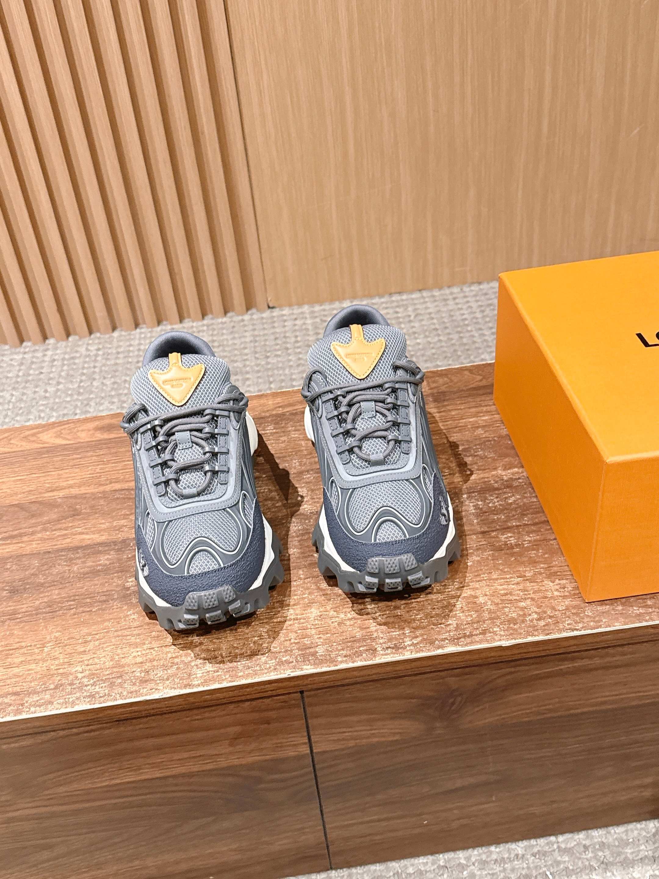LV ✗ Pharrell Williams 菲董联名的2026新款男士运动鞋 黑色网布+橡胶材质,轻便又耐磨,厚底设计超有支撑力,日常穿搭或运动都OK!鞋面纹理+金属鞋带扣,细节满分,辨识度超高✨。菲董的创意加持,时尚与功能兼备,潮人必入! Size :39-46(46定制不退换)