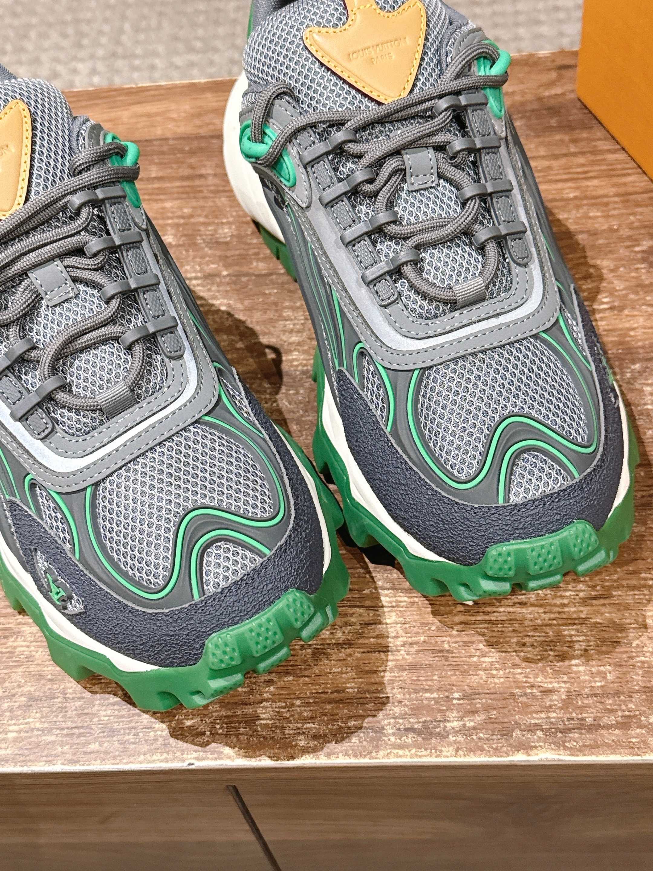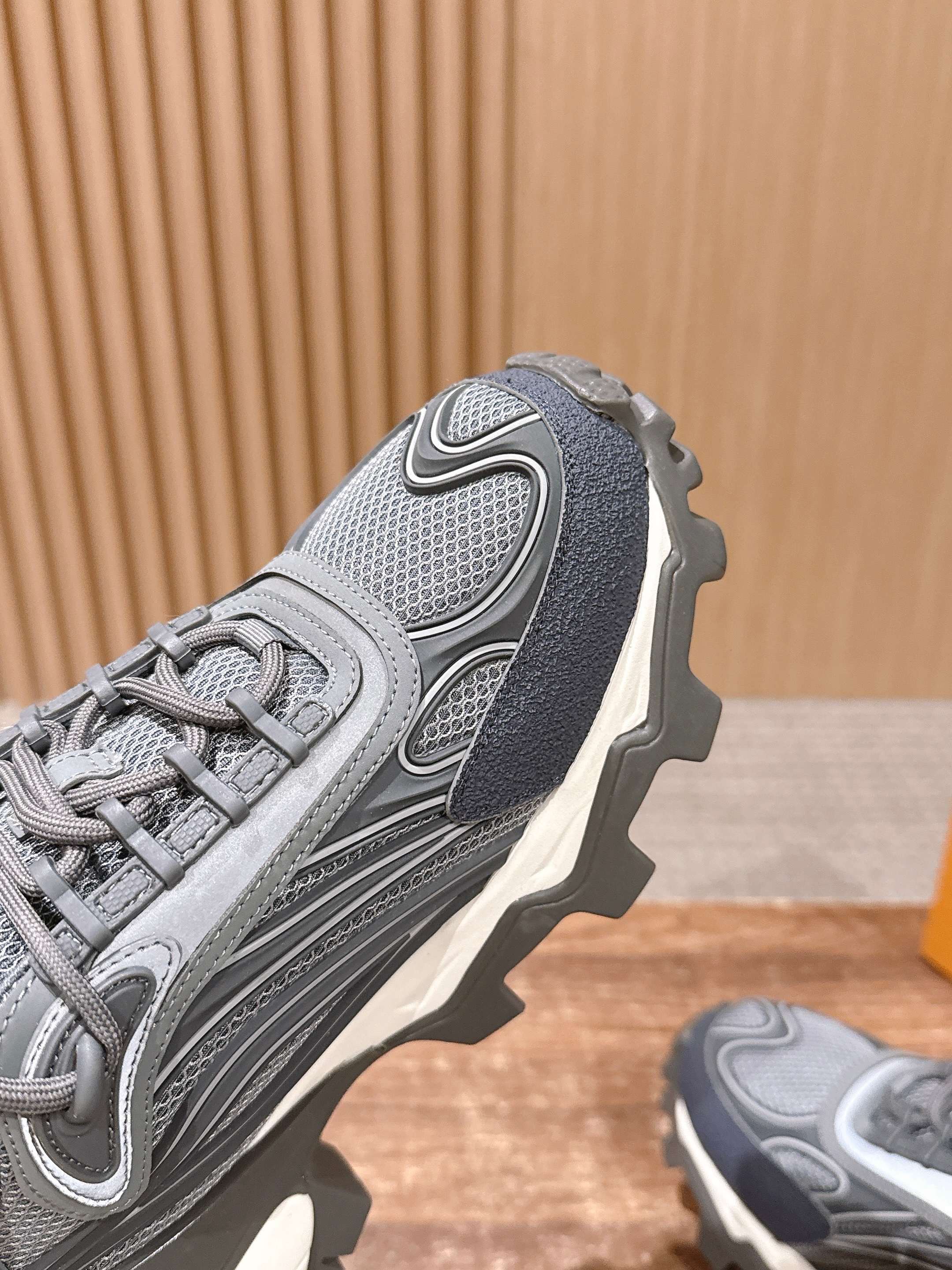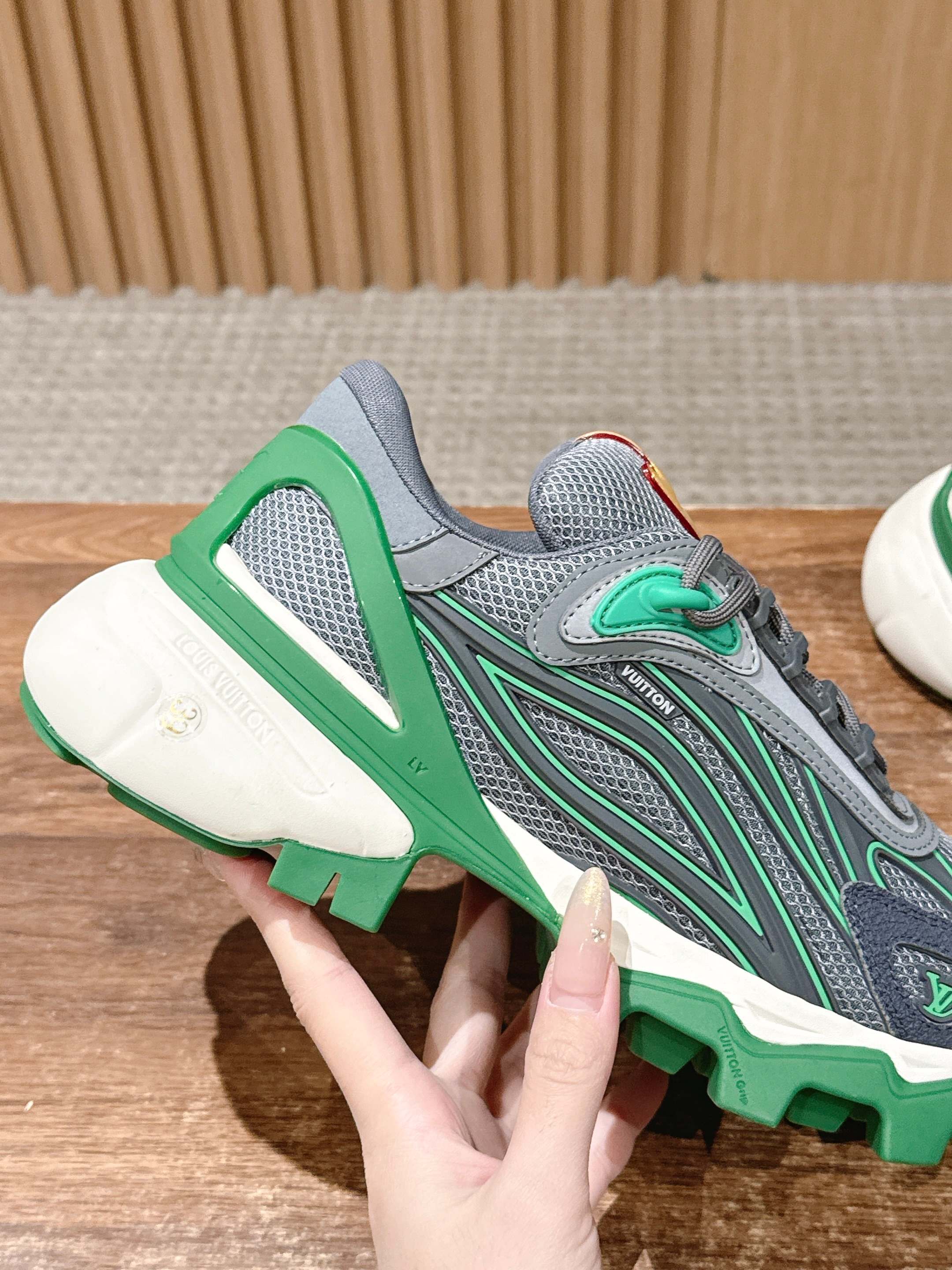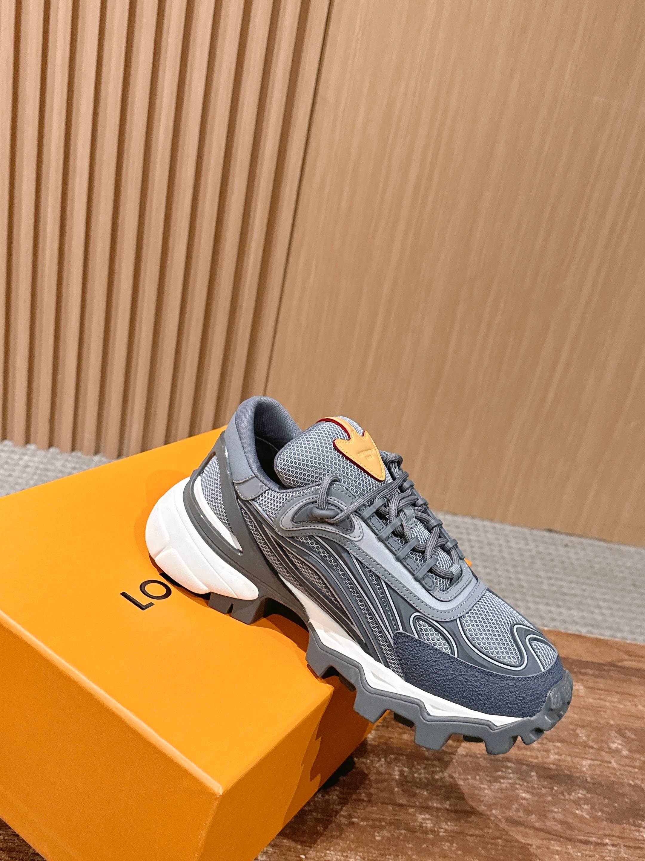 LV ✗ Pharrell Williams 菲董联名的2026新款男士运动鞋 黑色网布+橡胶材质,轻便又耐磨,厚底设计超有支撑力,日常穿搭或运动都OK!鞋面纹理+金属鞋带扣,细节满分,辨识度超高✨。菲董的创意加持,时尚与功能兼备,潮人必入! Size :39-46(46定制不退换)