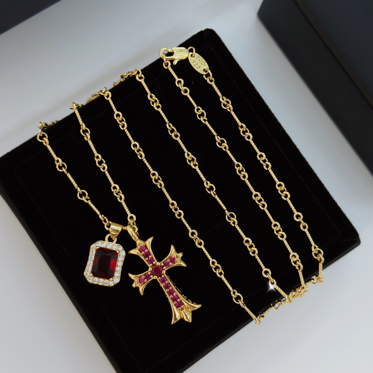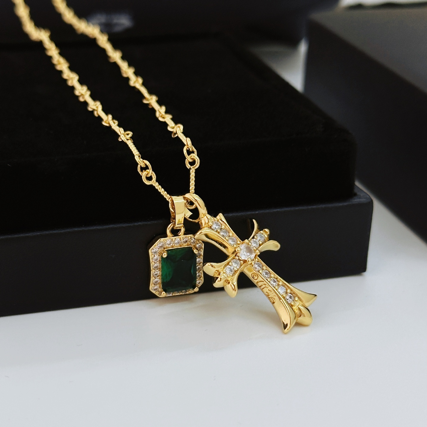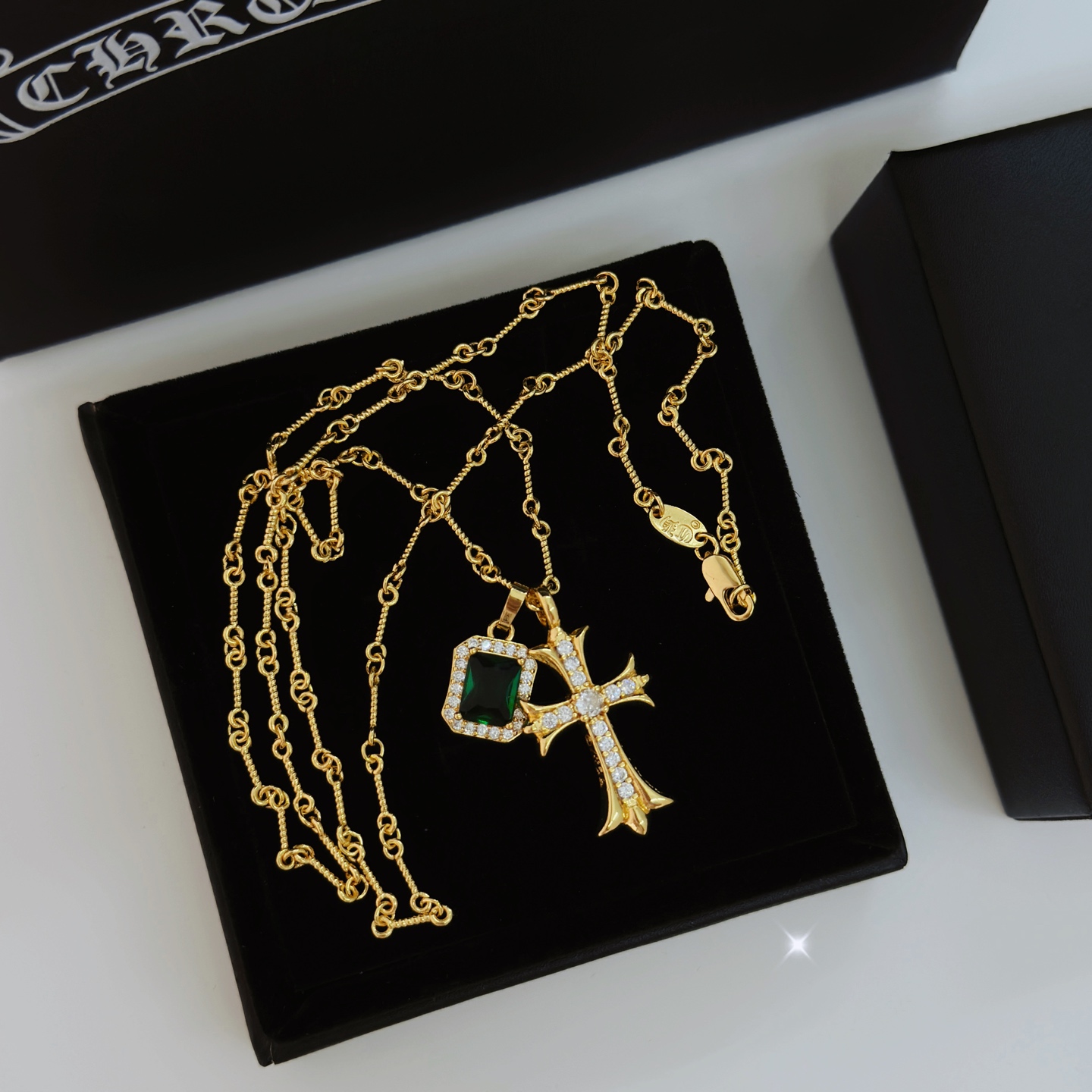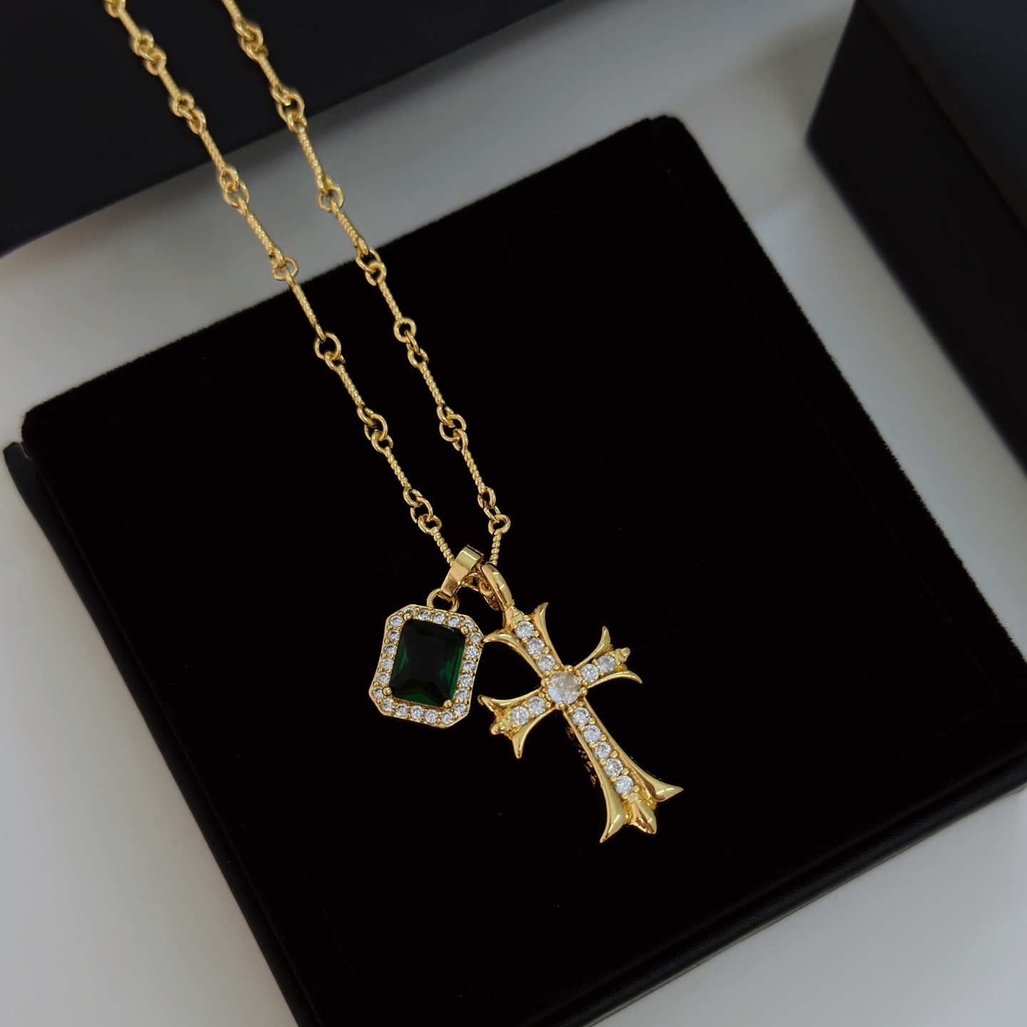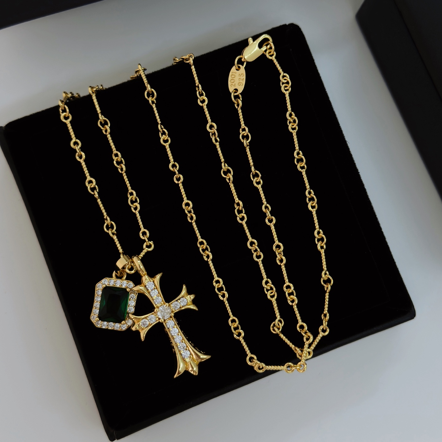 易梦玲同款克罗心 经典镶钻双十字架 金色项链