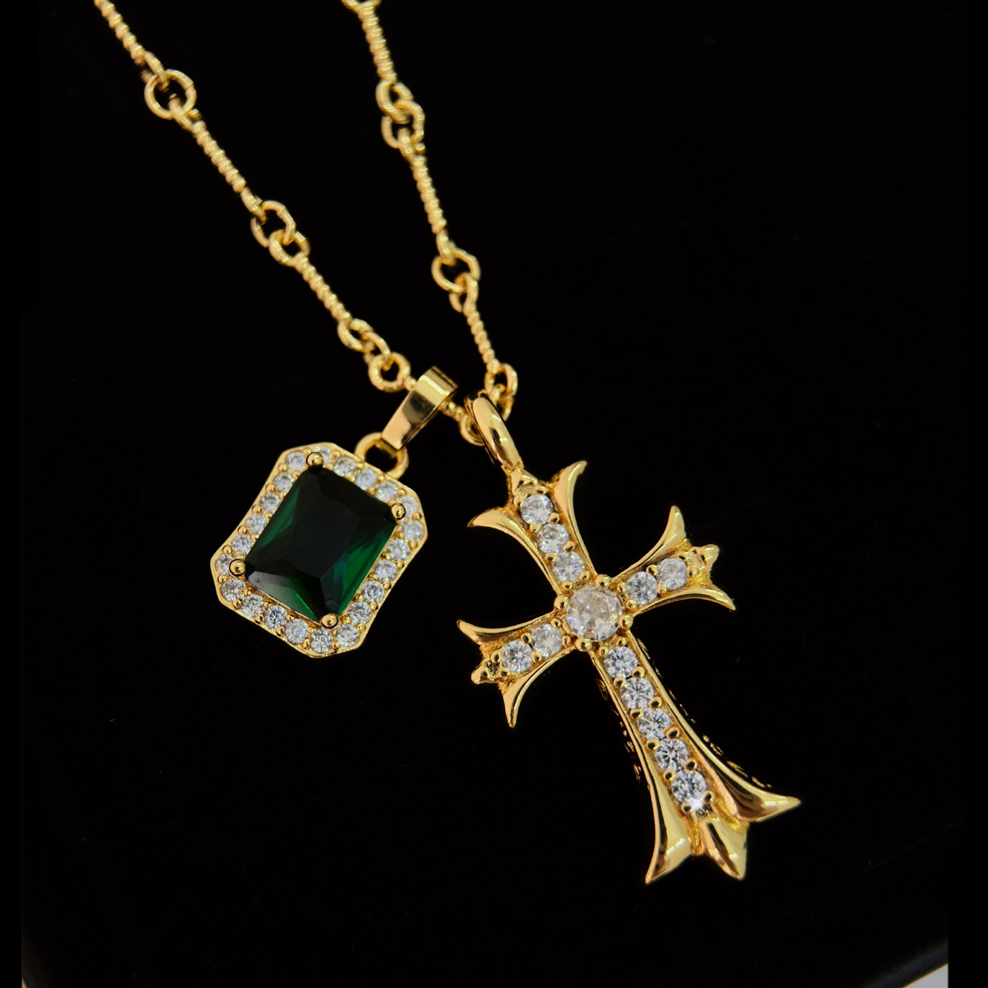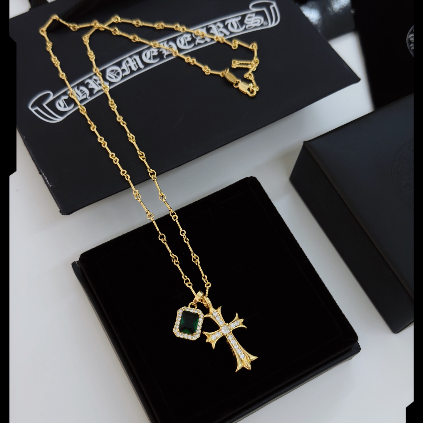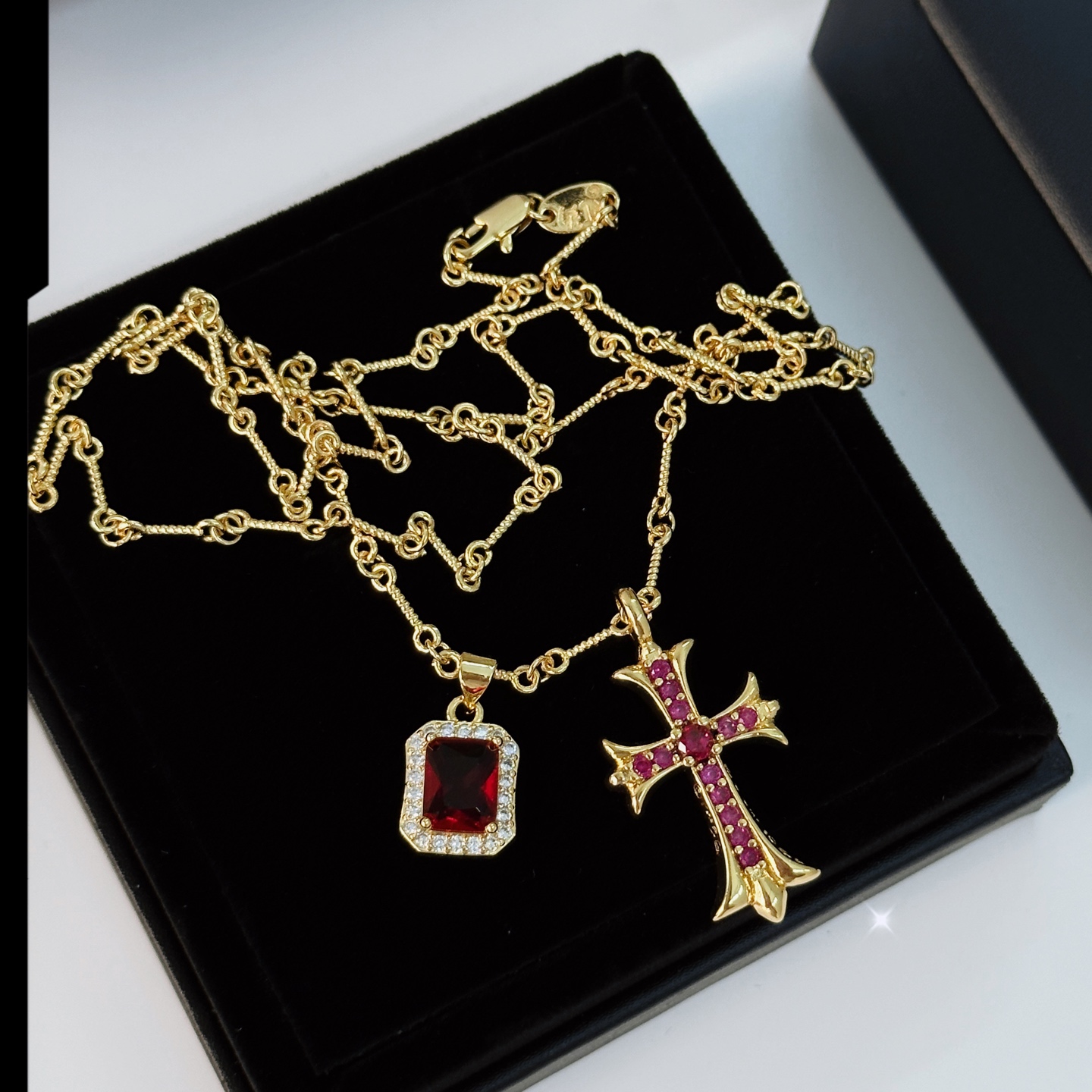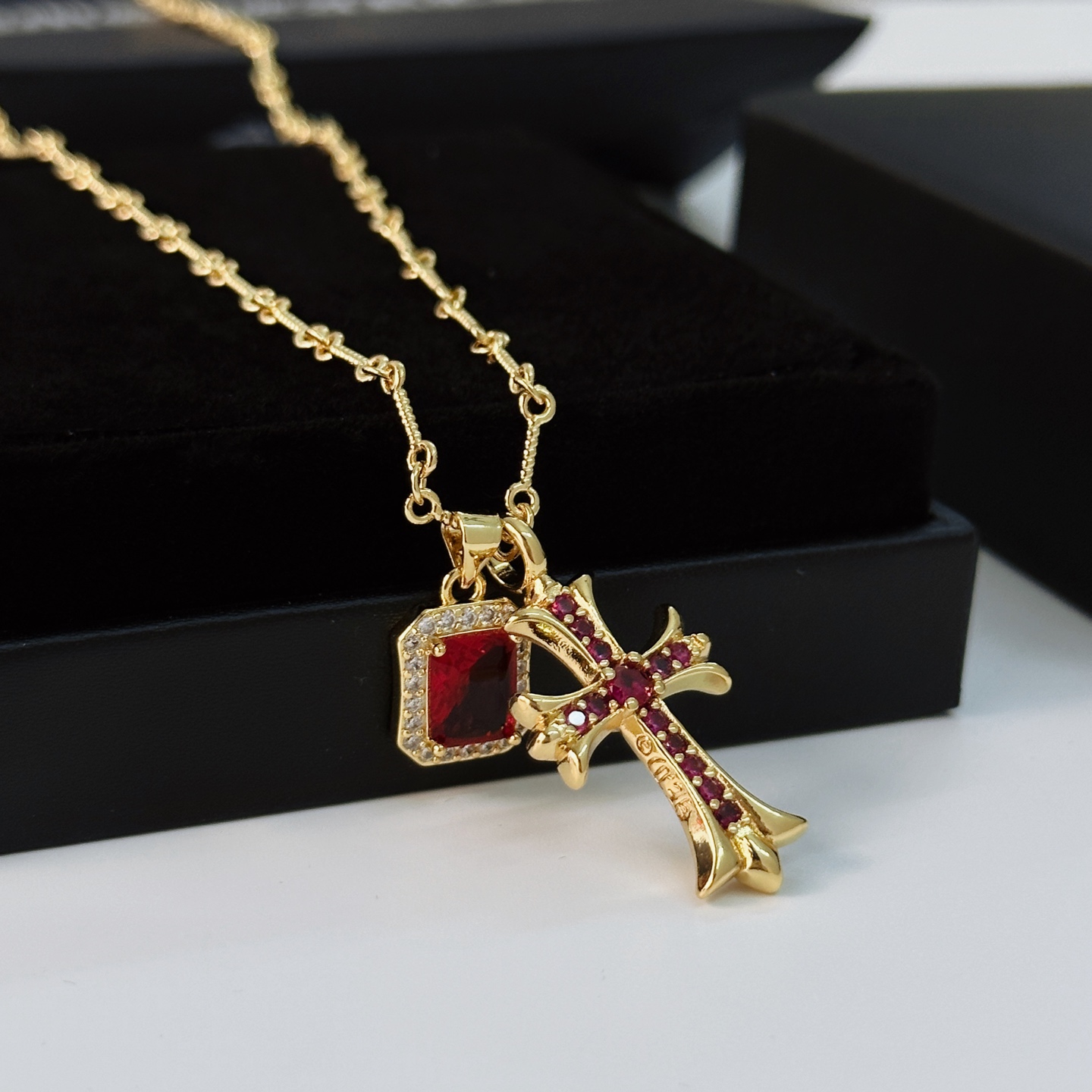 易梦玲同款克罗心 经典镶钻双十字架 金色项链