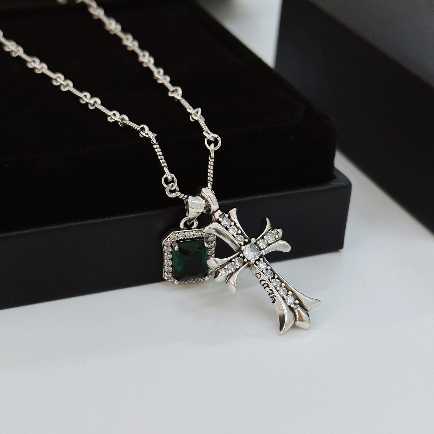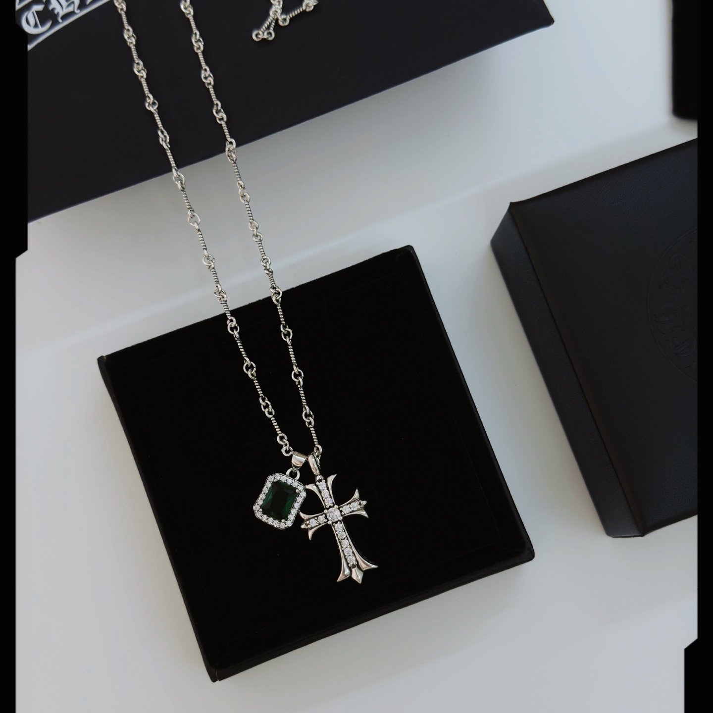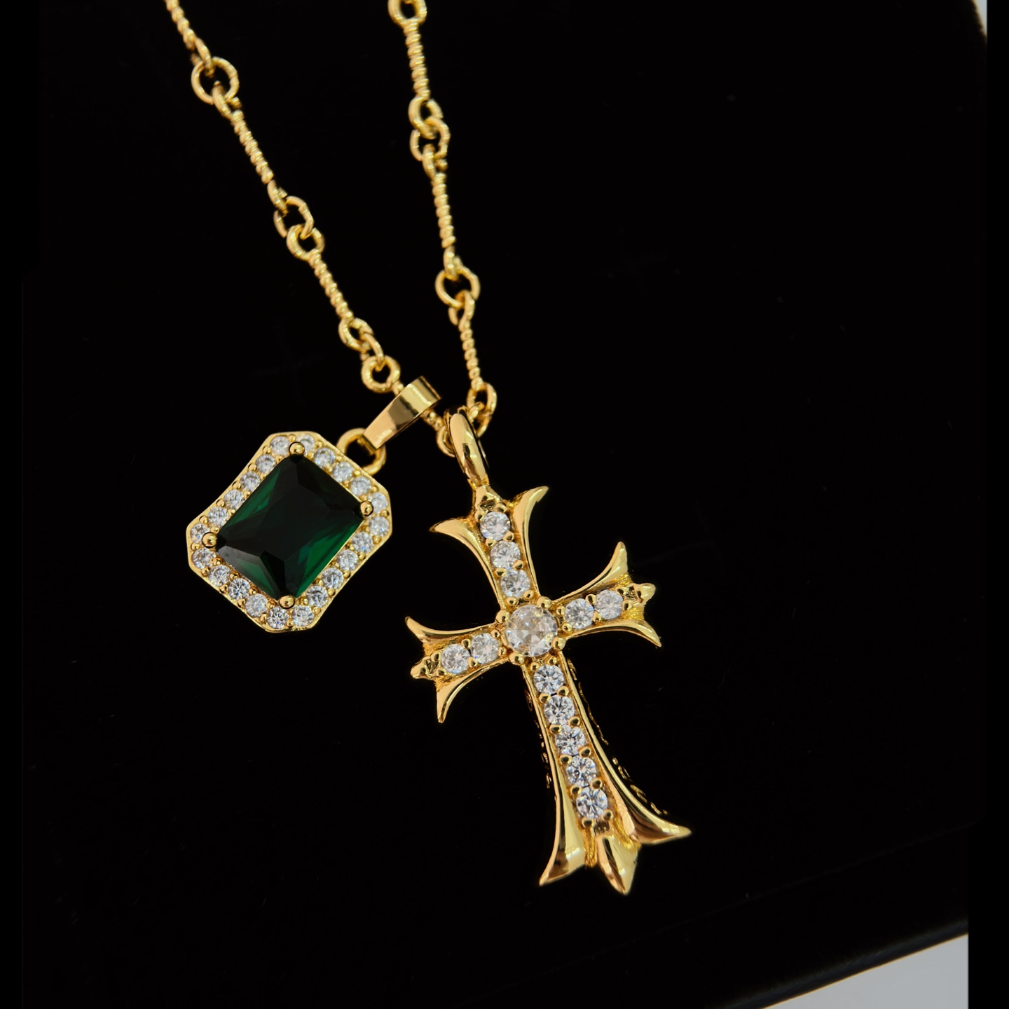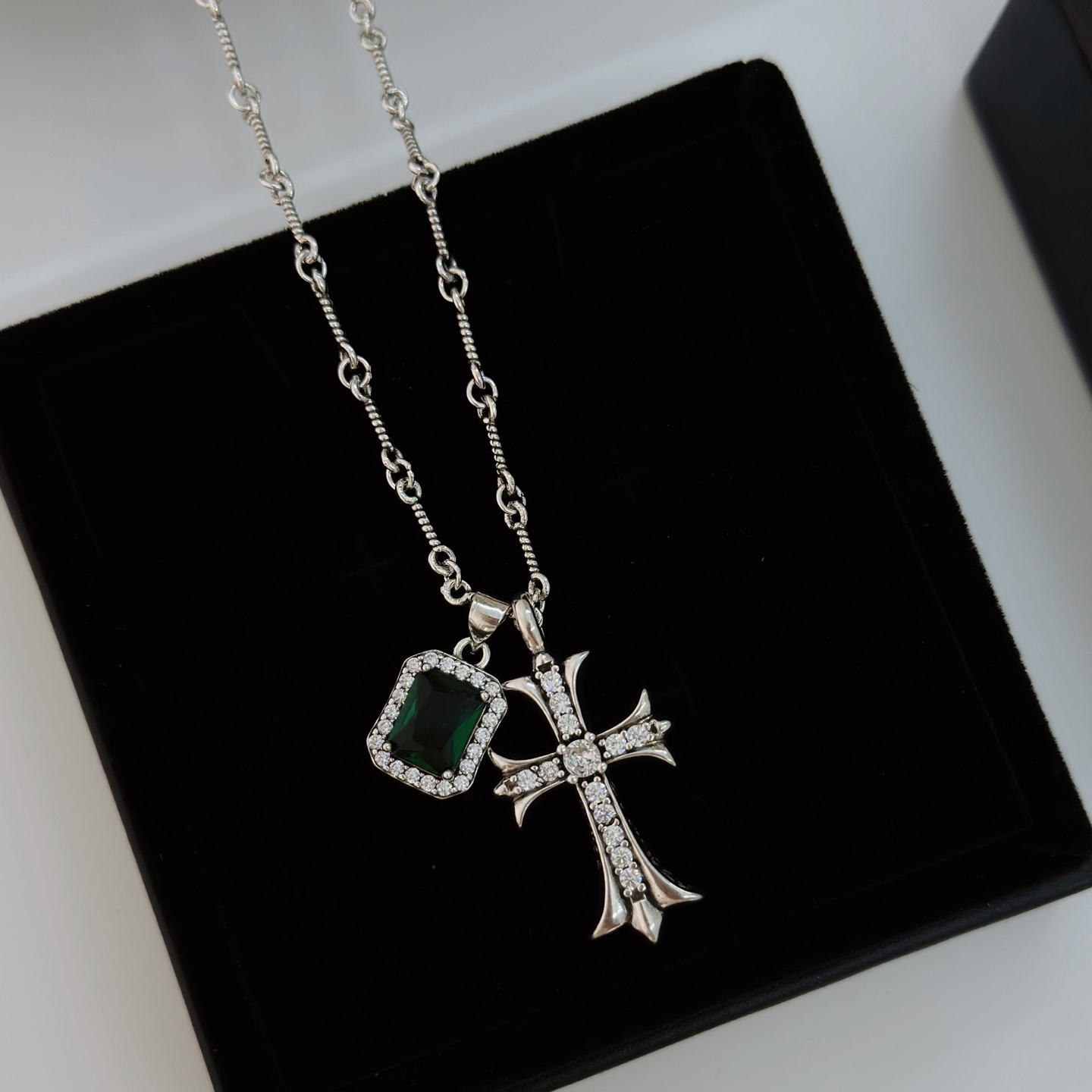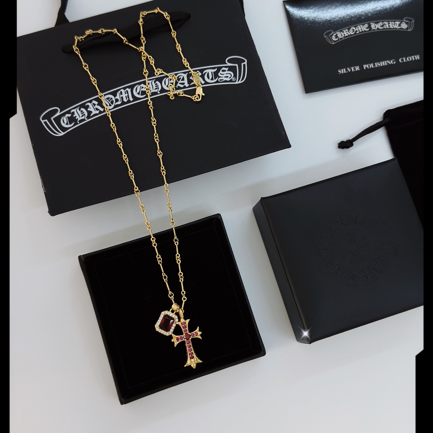 易梦玲同款克罗心 经典镶钻双十字架 金色项链