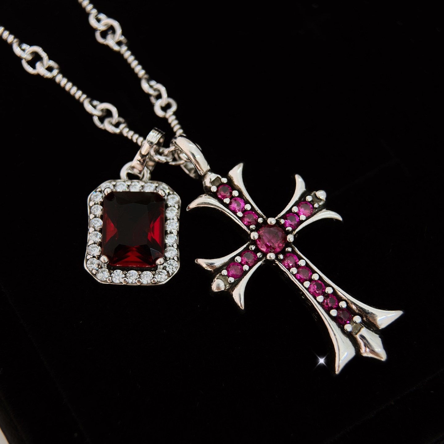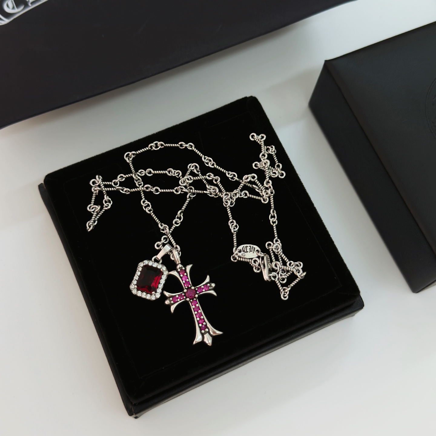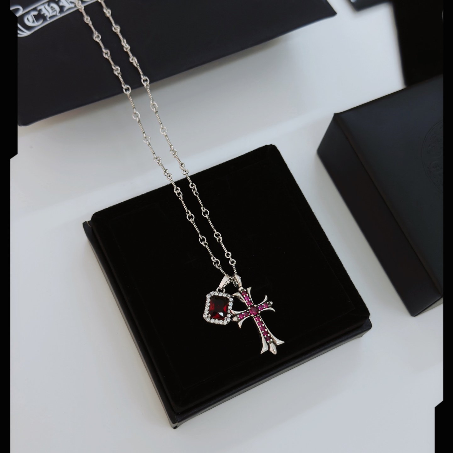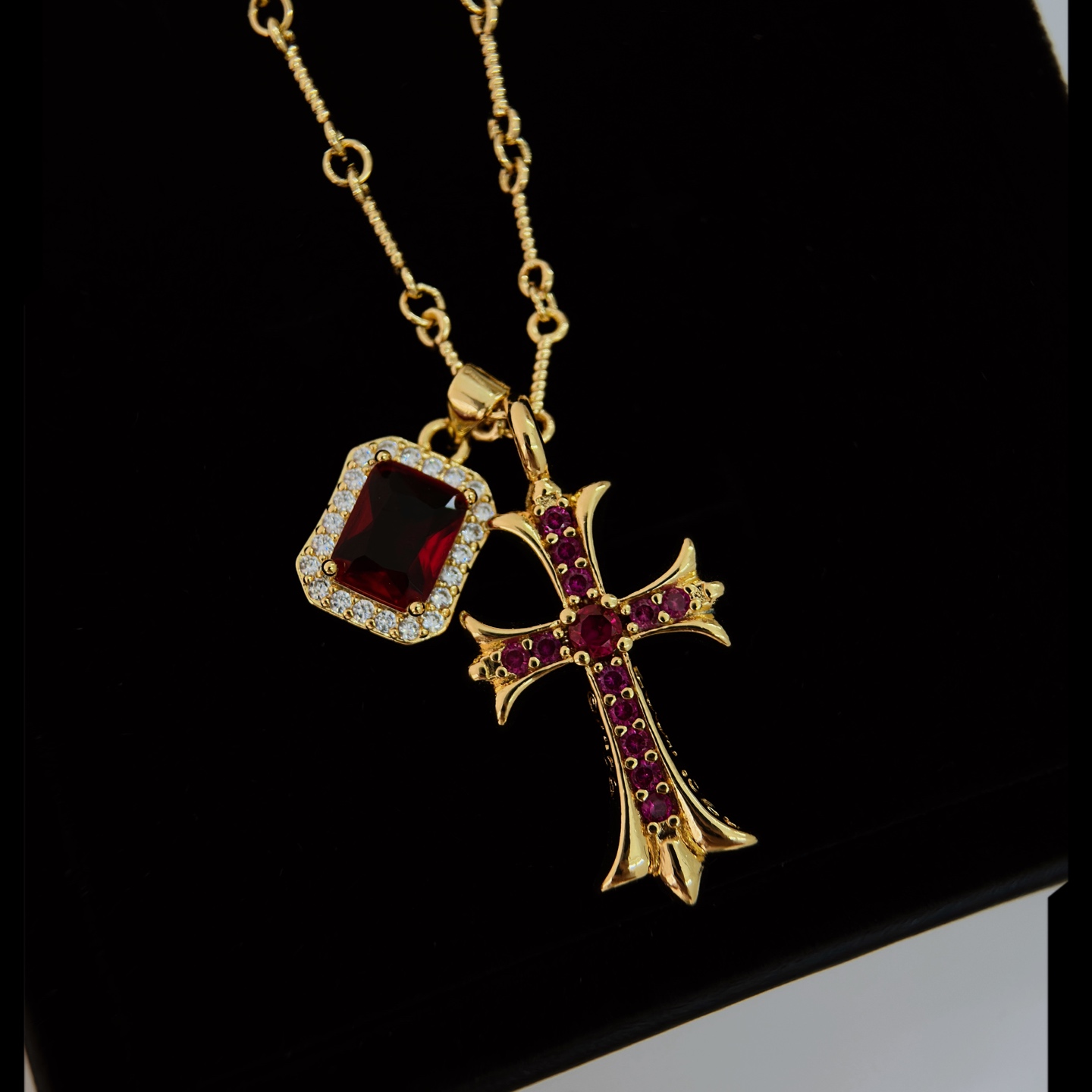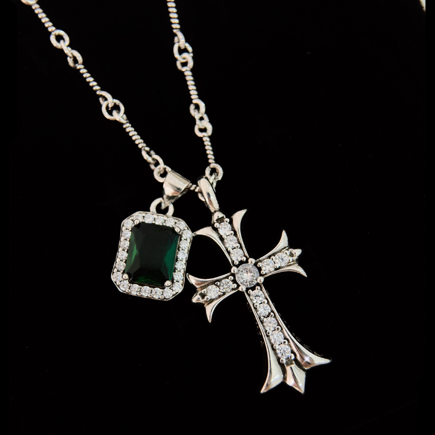 易梦玲同款克罗心 经典镶钻双十字架 金色项链
