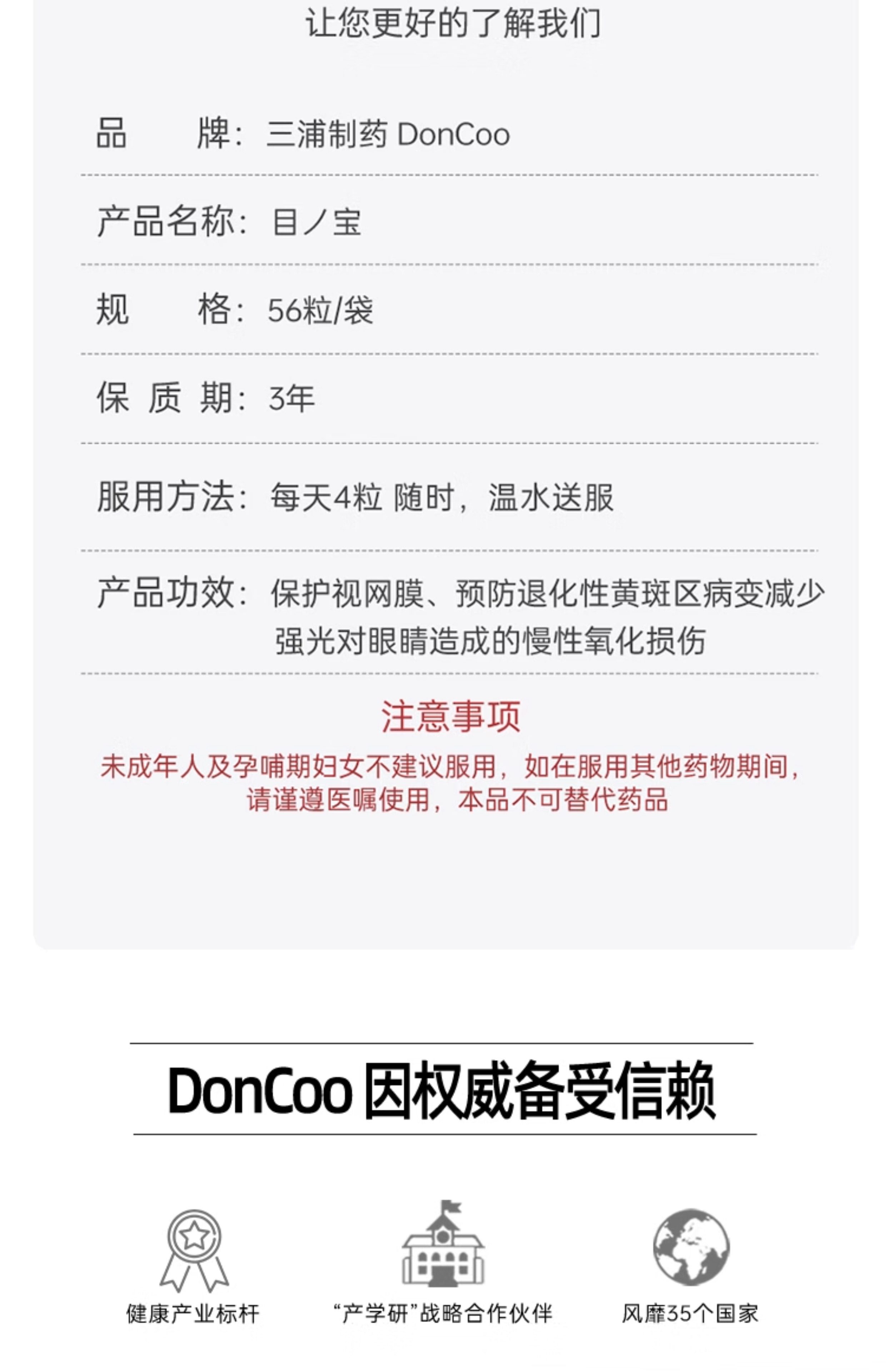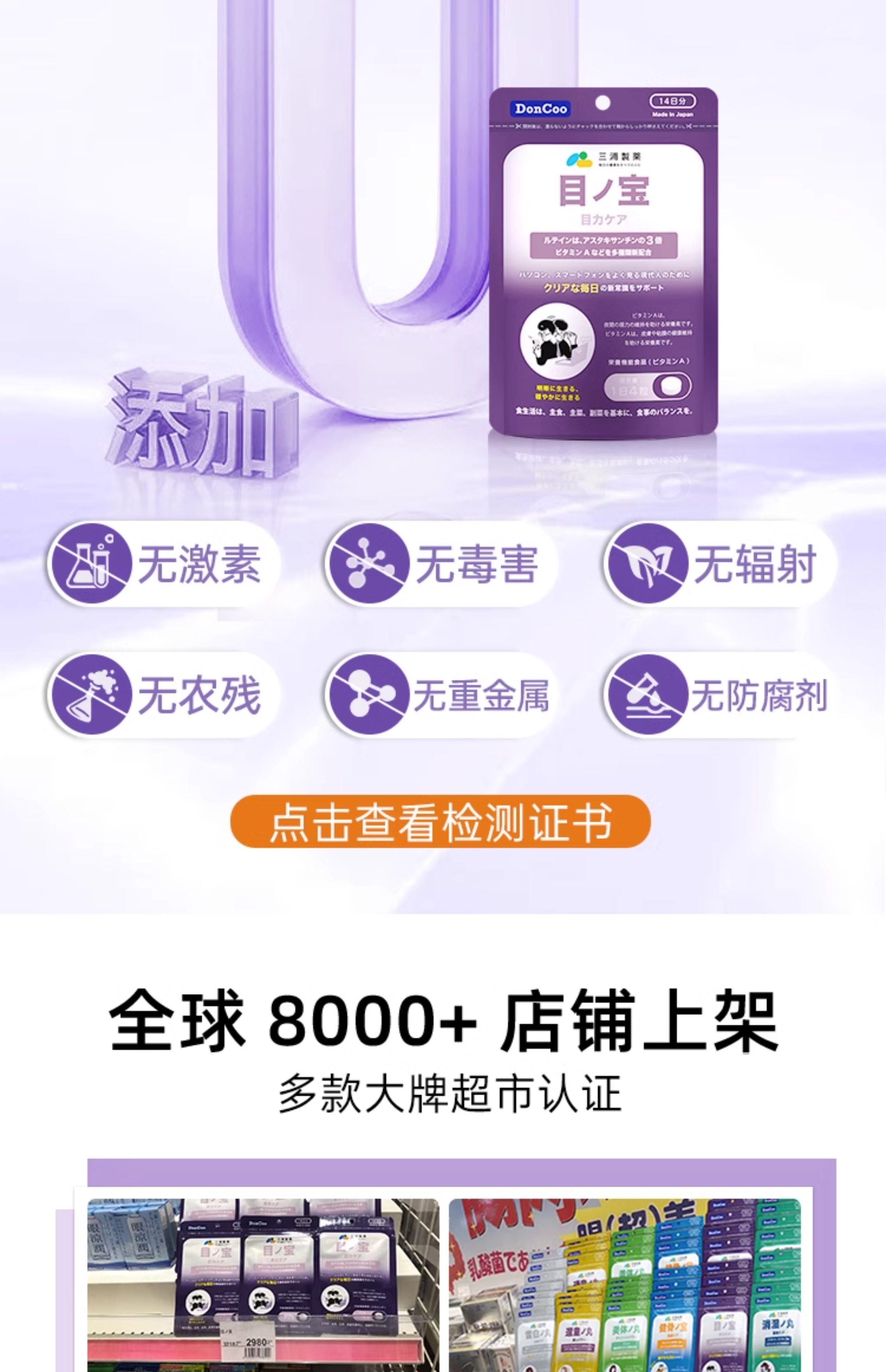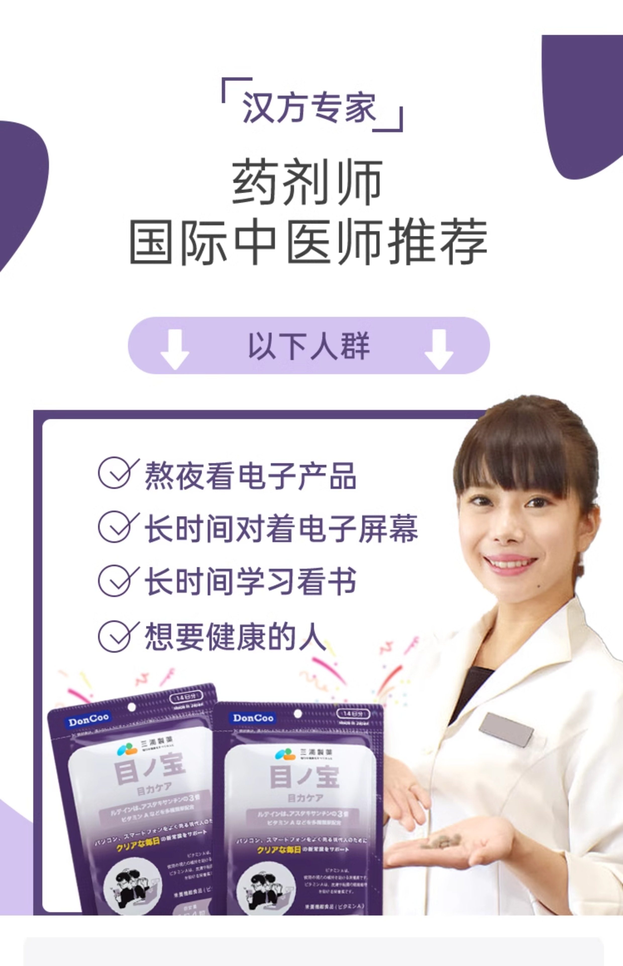 三浦制药DonCoo目之宝护眼片防蓝光呵护视力舒缓视疲劳叶黄素H