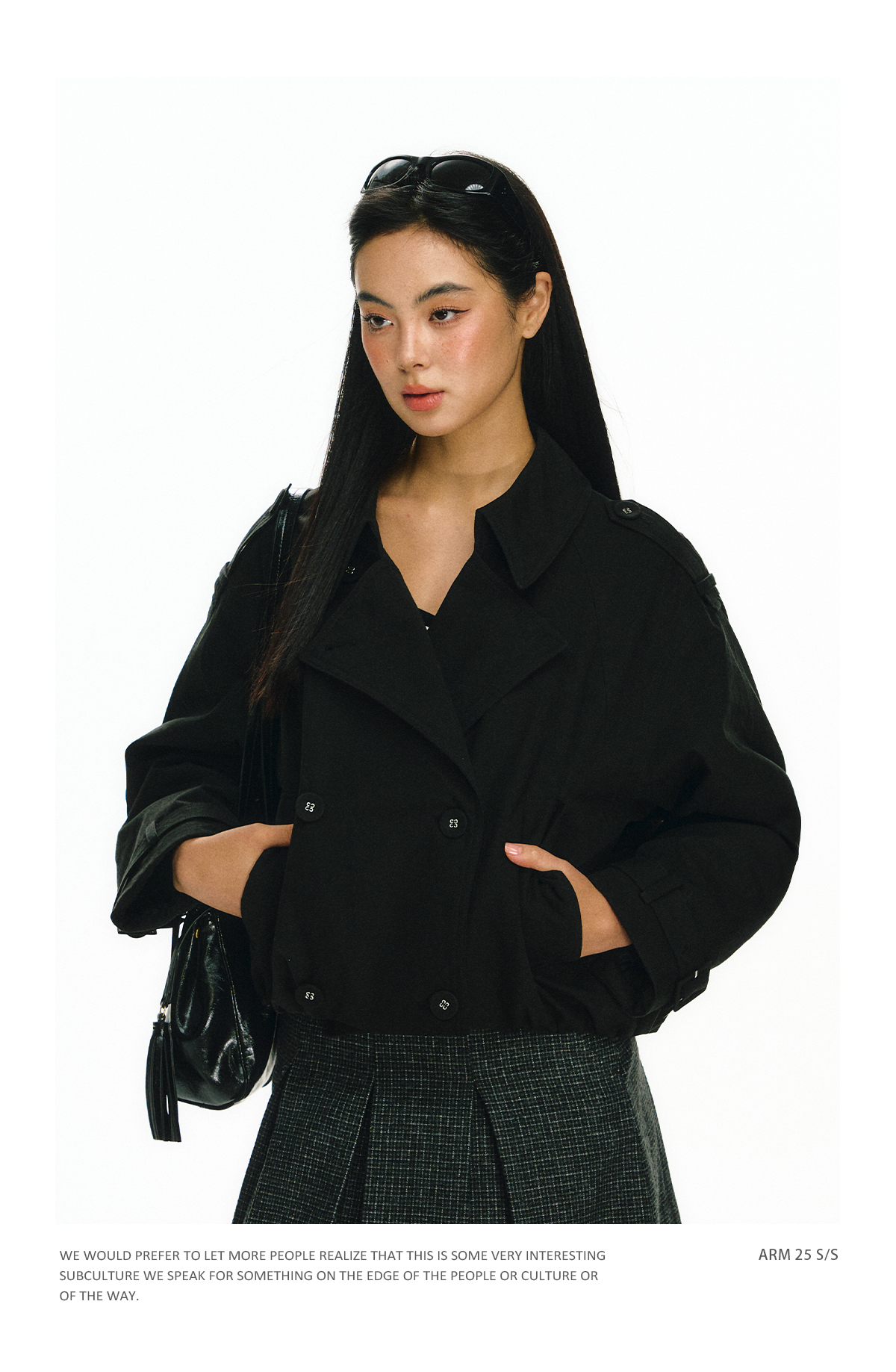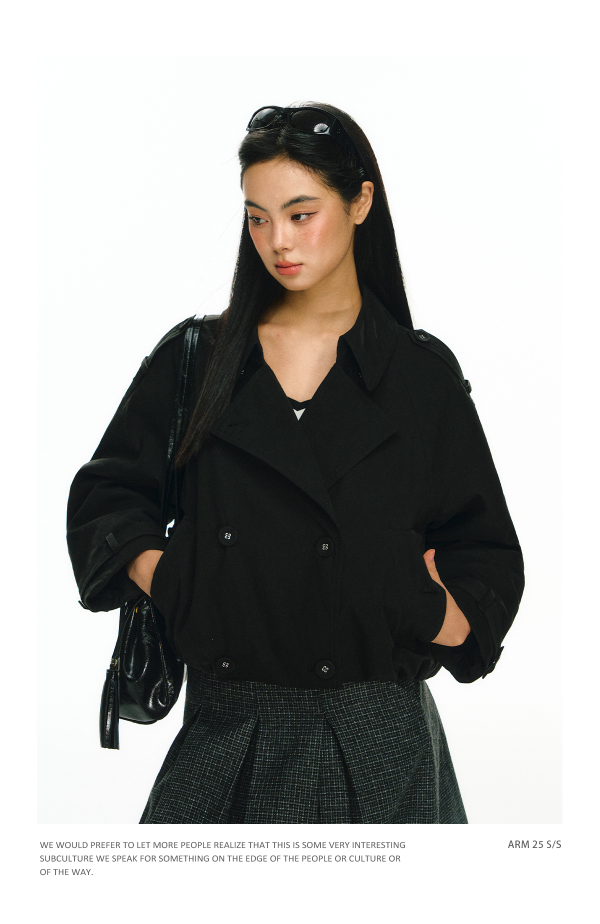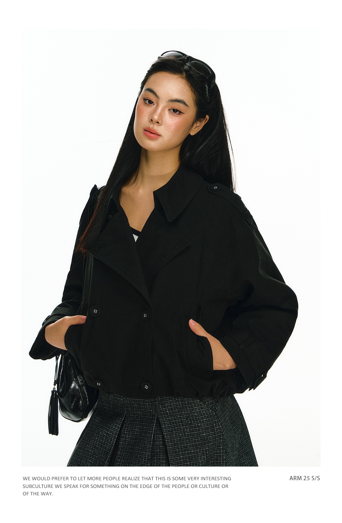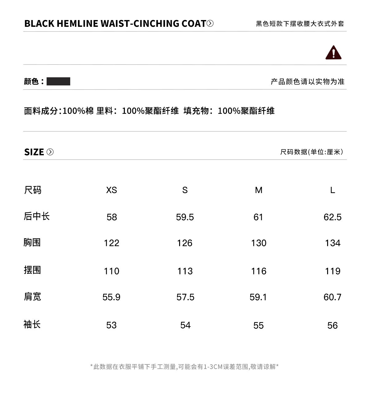 Ariseism 美式复古设计感黑色大衣式夹棉外套女秋冬新款修身上衣