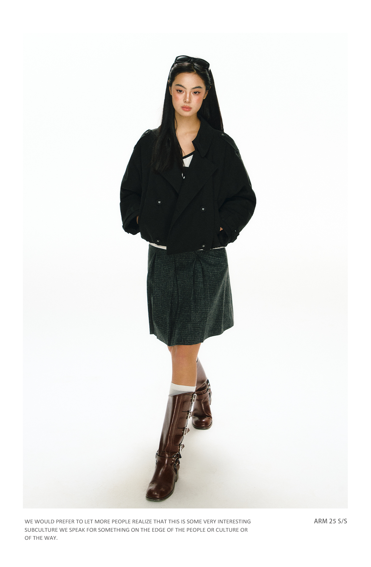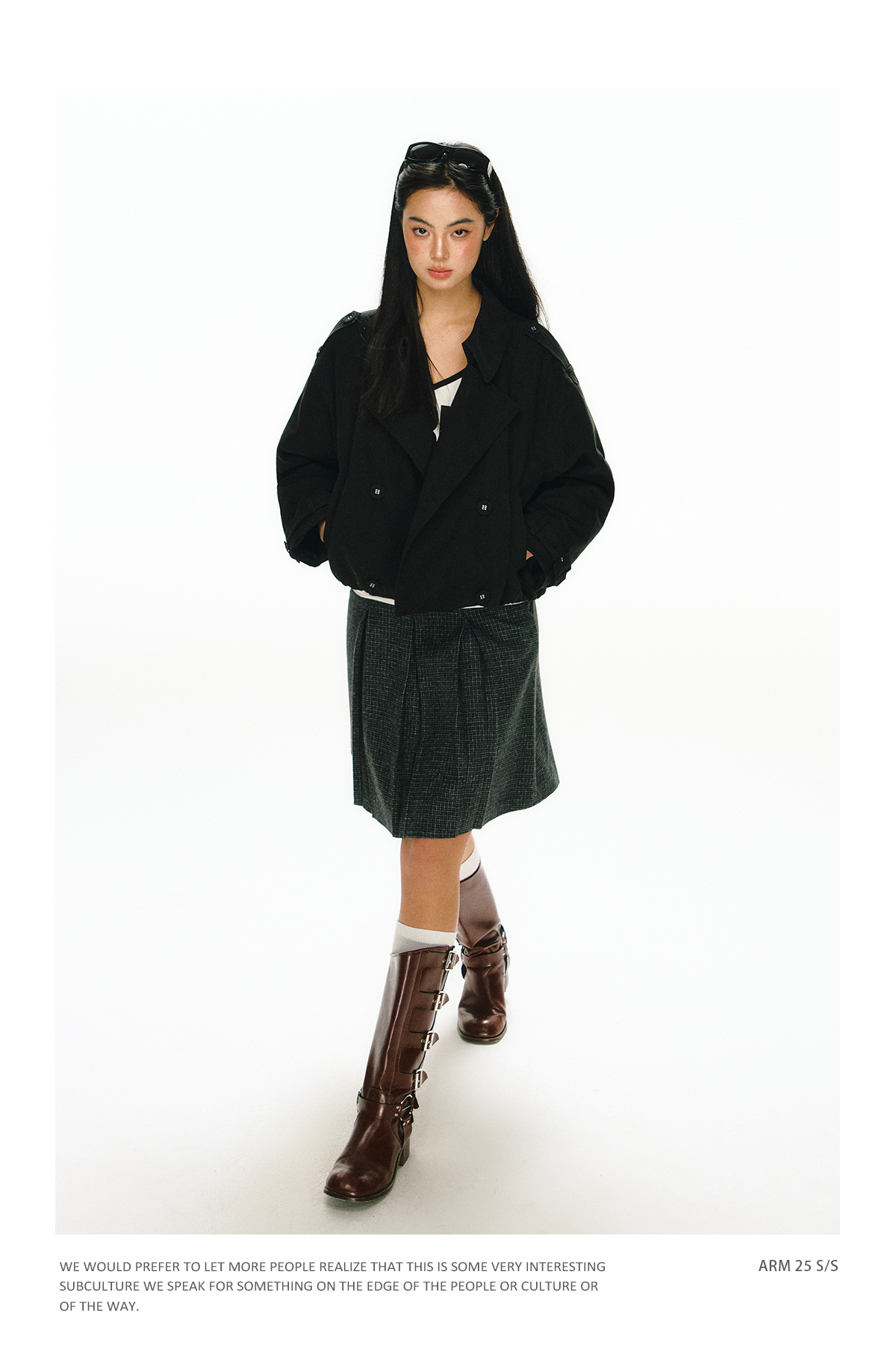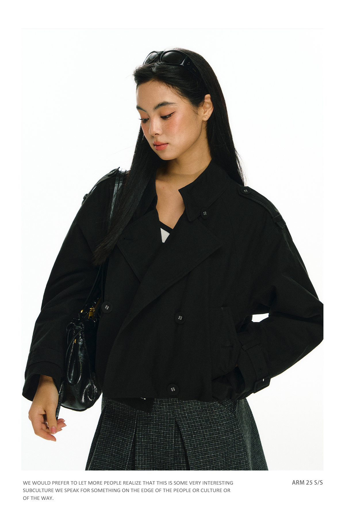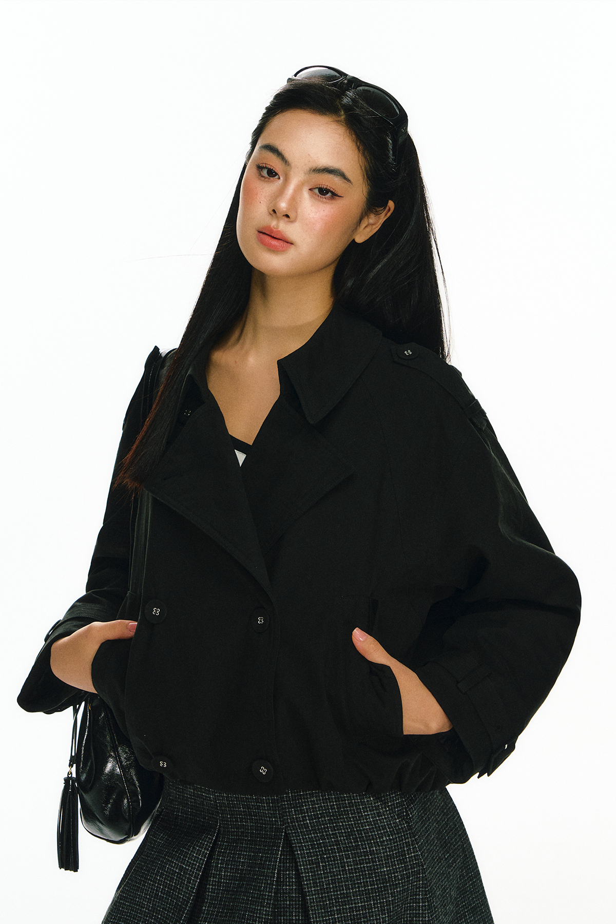 Ariseism 美式复古设计感黑色大衣式夹棉外套女秋冬新款修身上衣